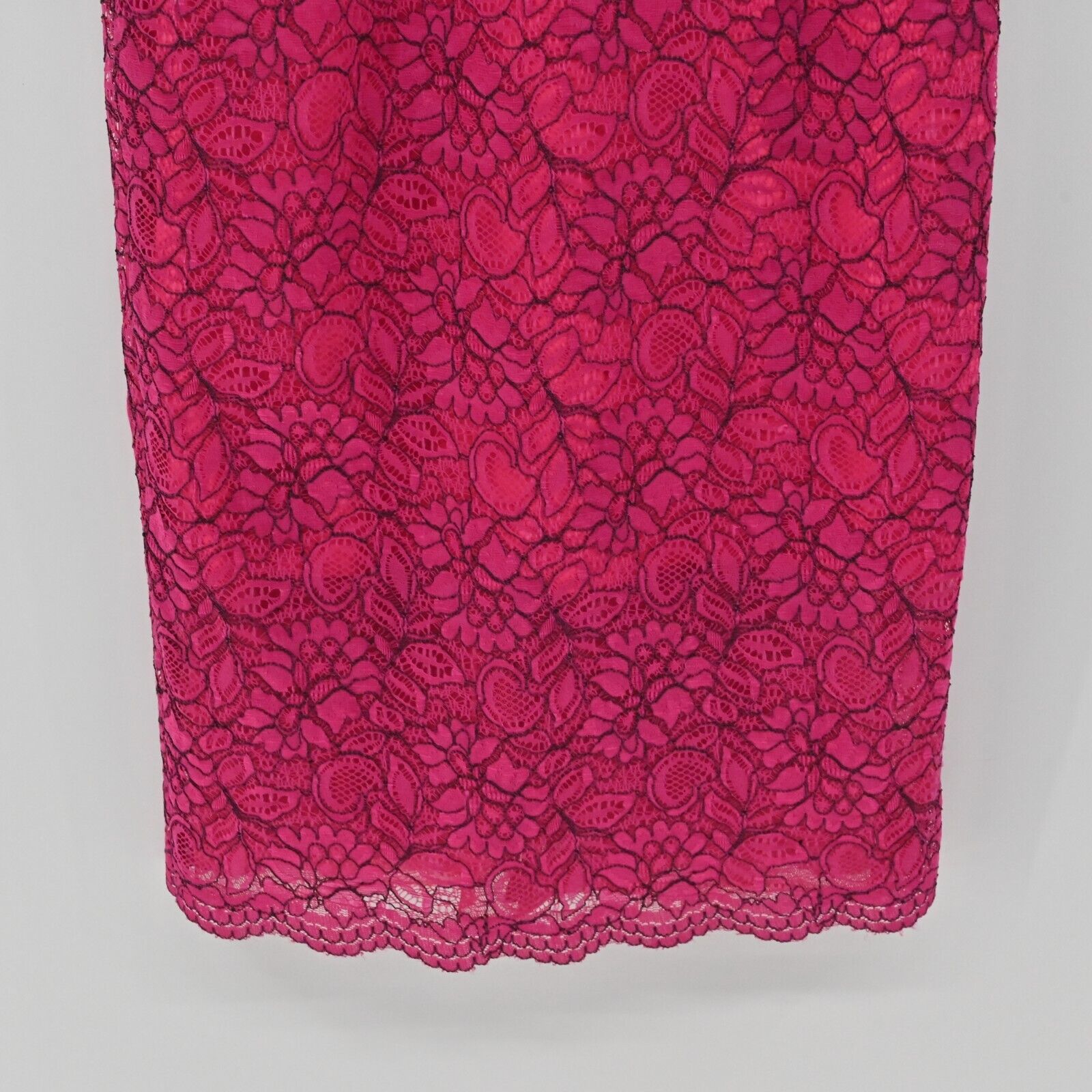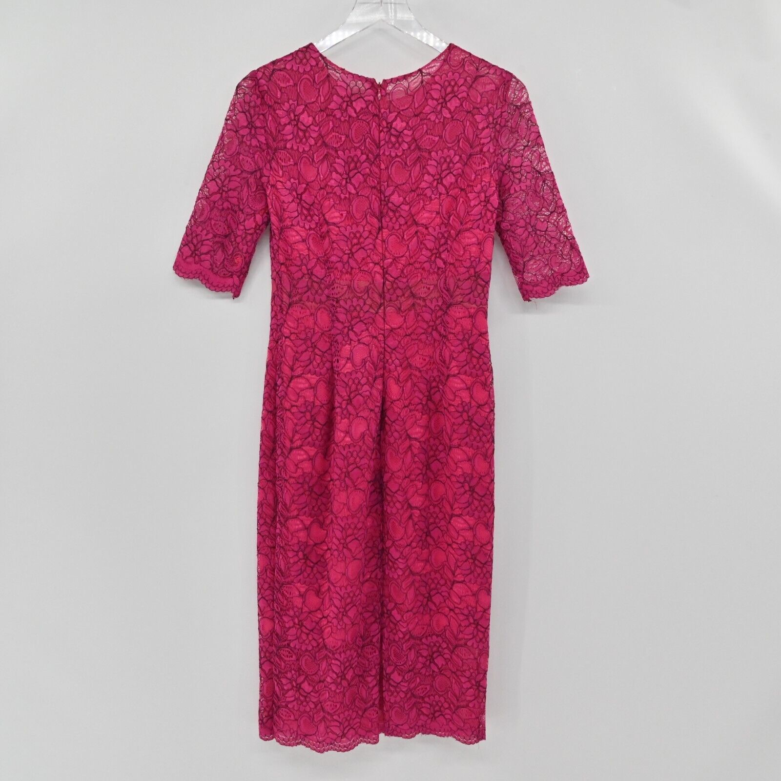 MONIQUE LHUILLIER Dress Sz 6 Pink Lace Sheath Floral Overlay Scalloped Cocktail