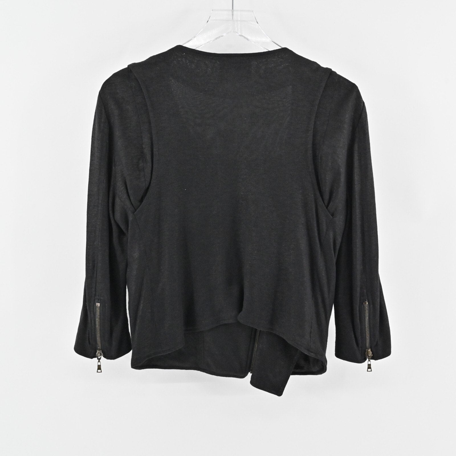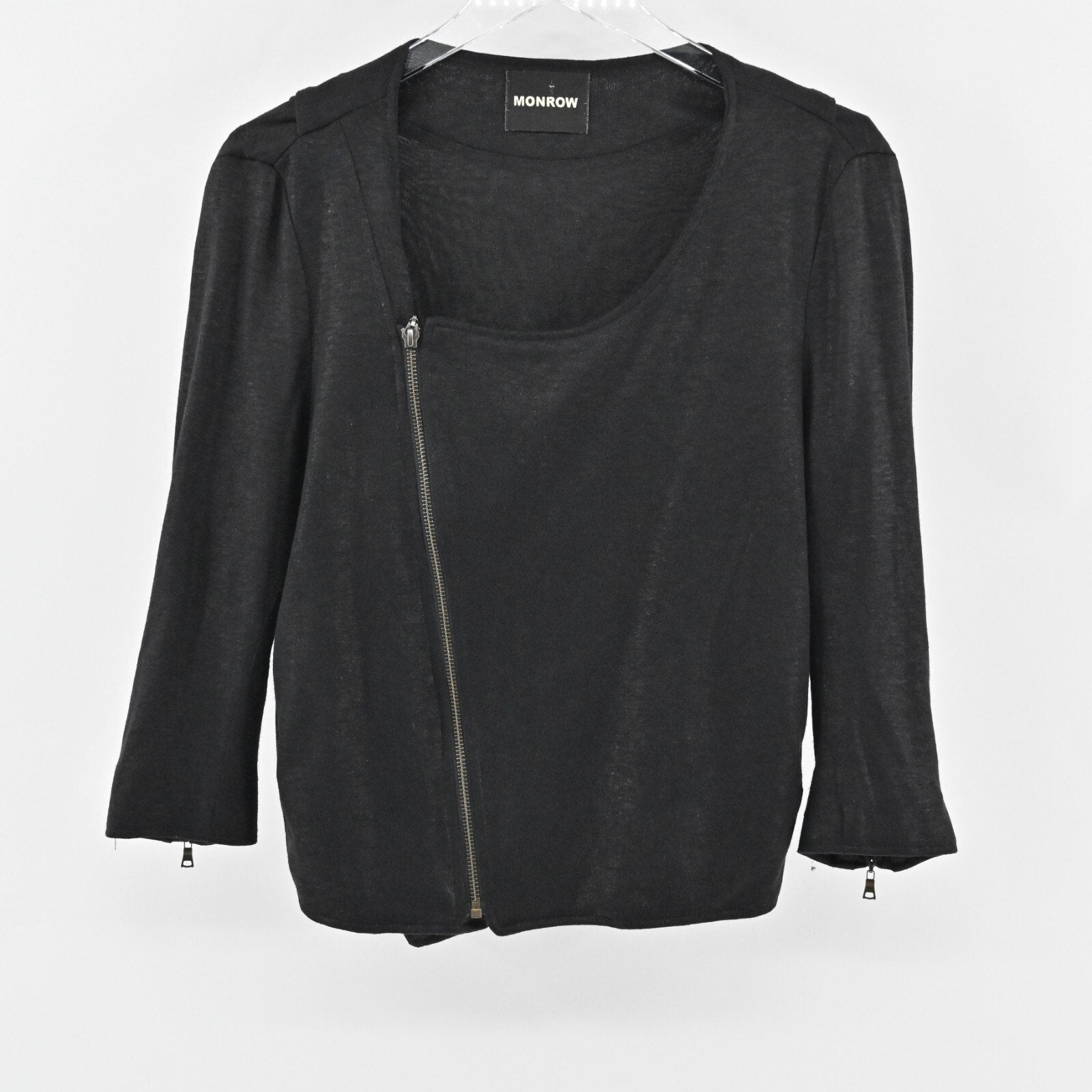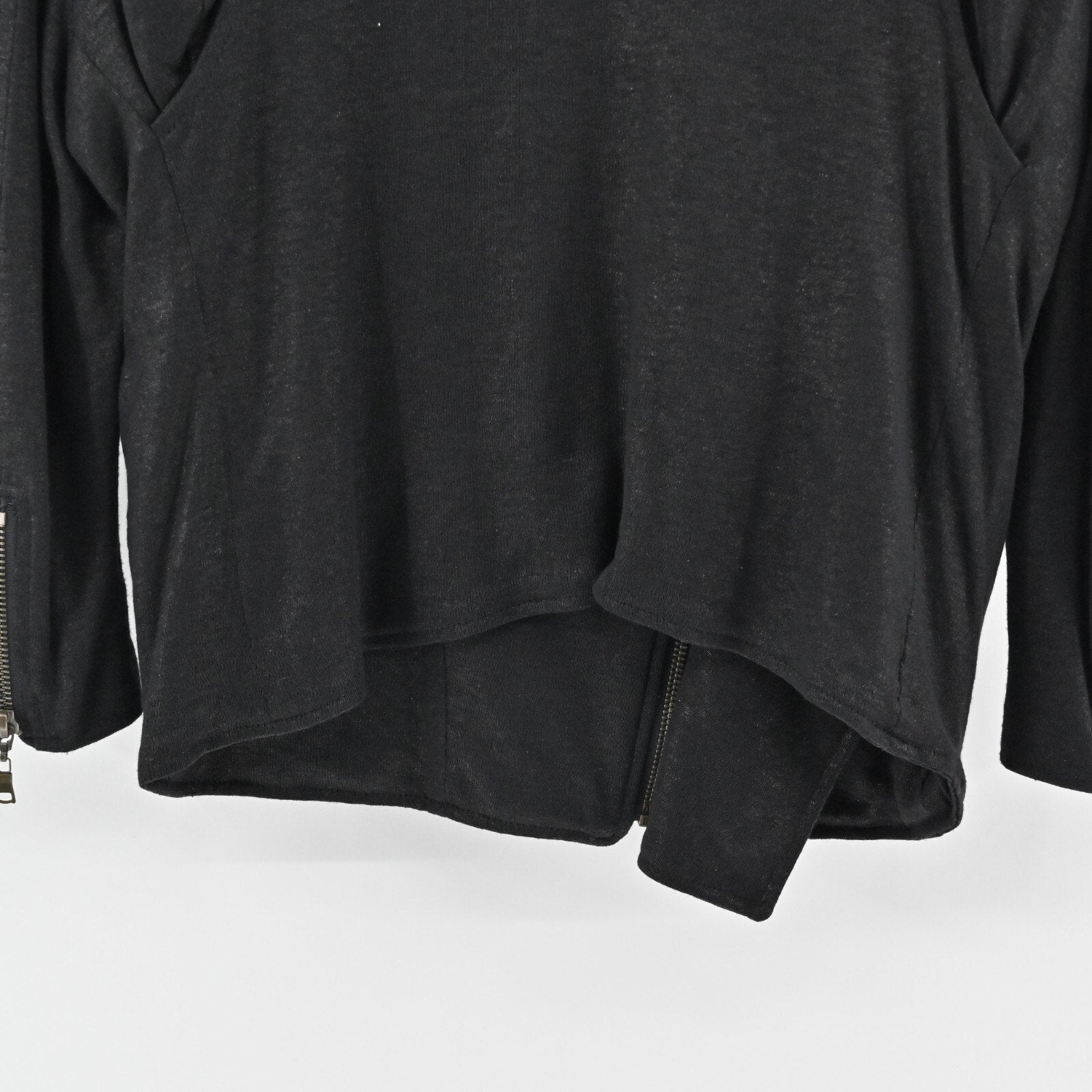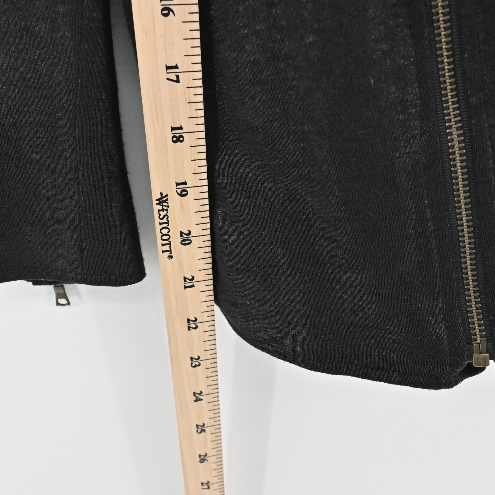 MONROW Jacket Womens Size M Black Linen Moto Asymmetrical Zip Front Rocker Chic