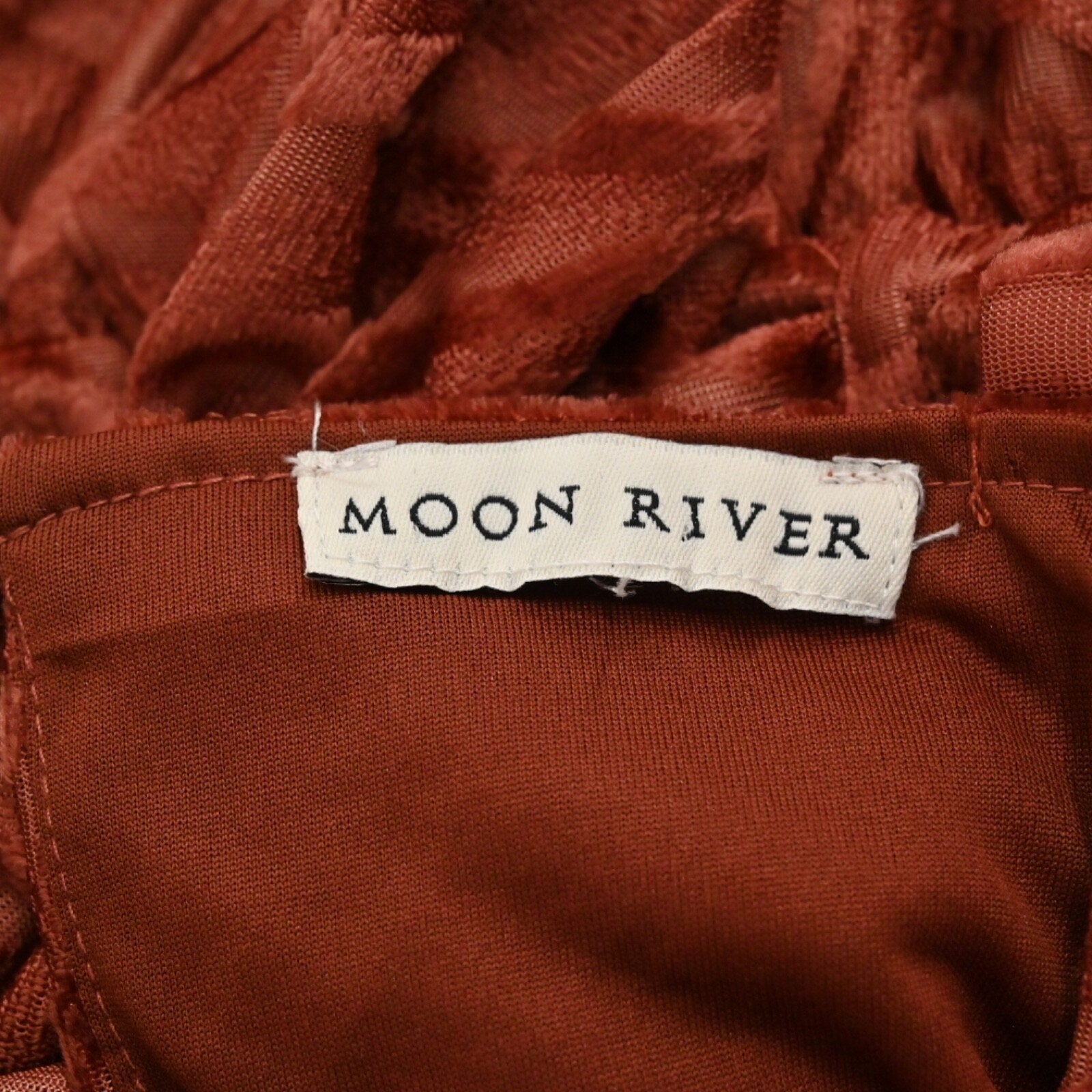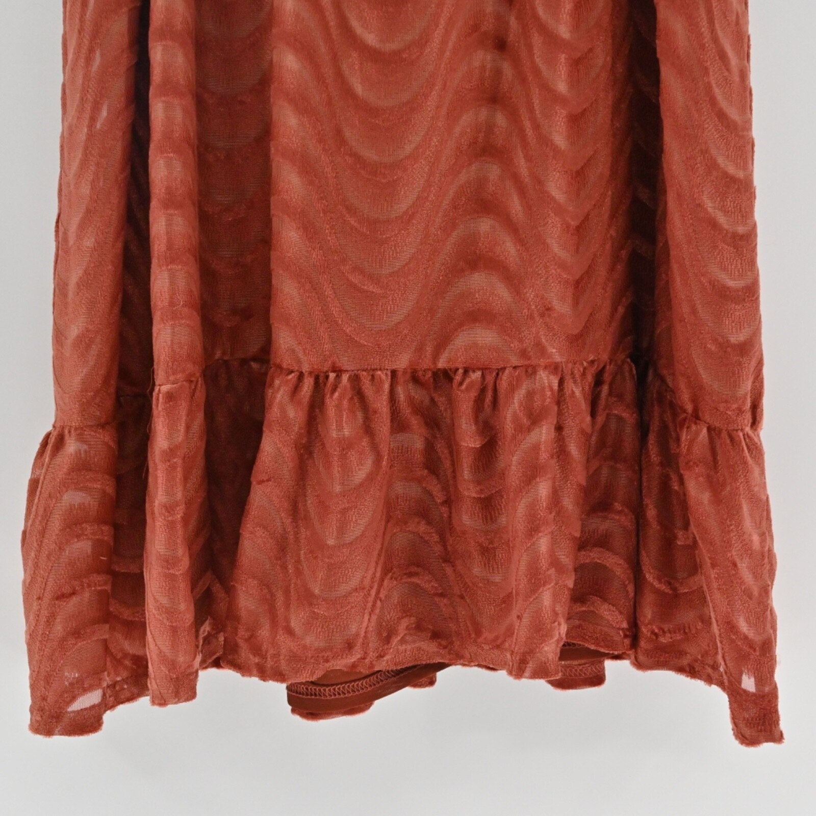 MOON RIVER Velvet Babydoll Dress Size M Peasant Boho Puff Sleeves Rust Retro 70s