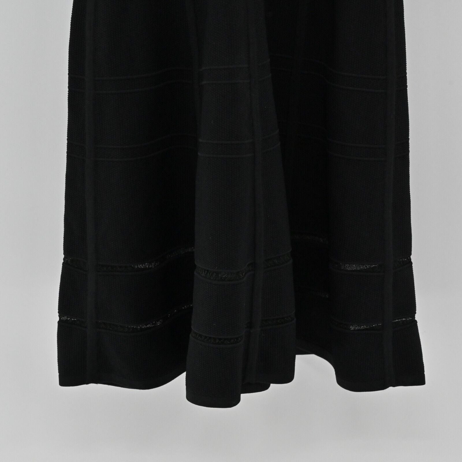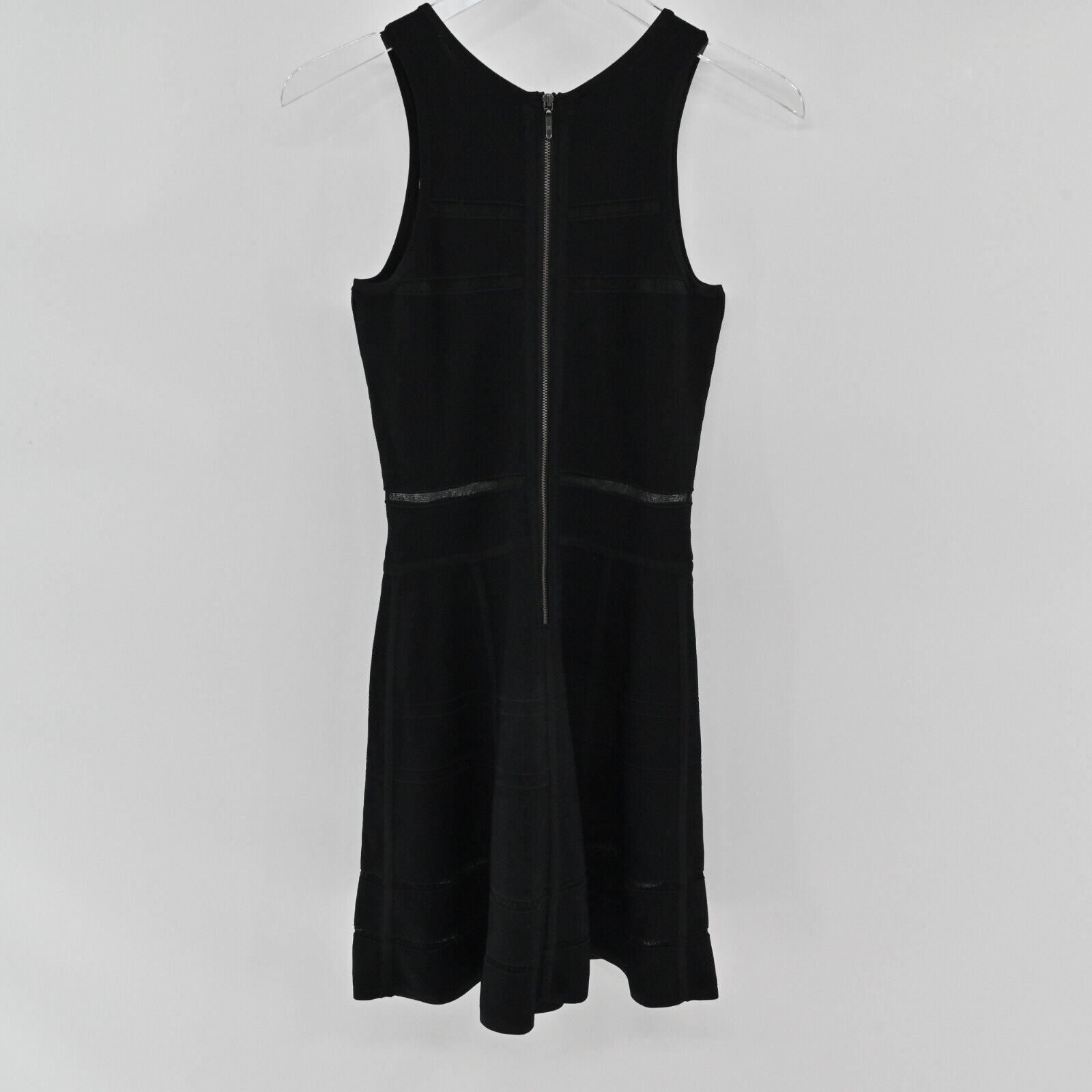 NICOLE MILLER Dress Women's Size Small Solid Black Ladder Lace Contrast Sleeveless Artelier Fit Flare Zip Back Stretch Chic Vacation Office Date Night Event Concert Cruise Classic Versatile LBD Little Black Dress Minimalist