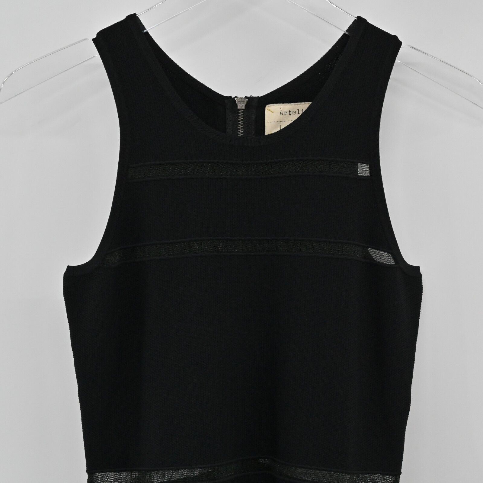 NICOLE MILLER Dress Womens Size S Black Ladder Lace Contrast Sleeveless Artelier