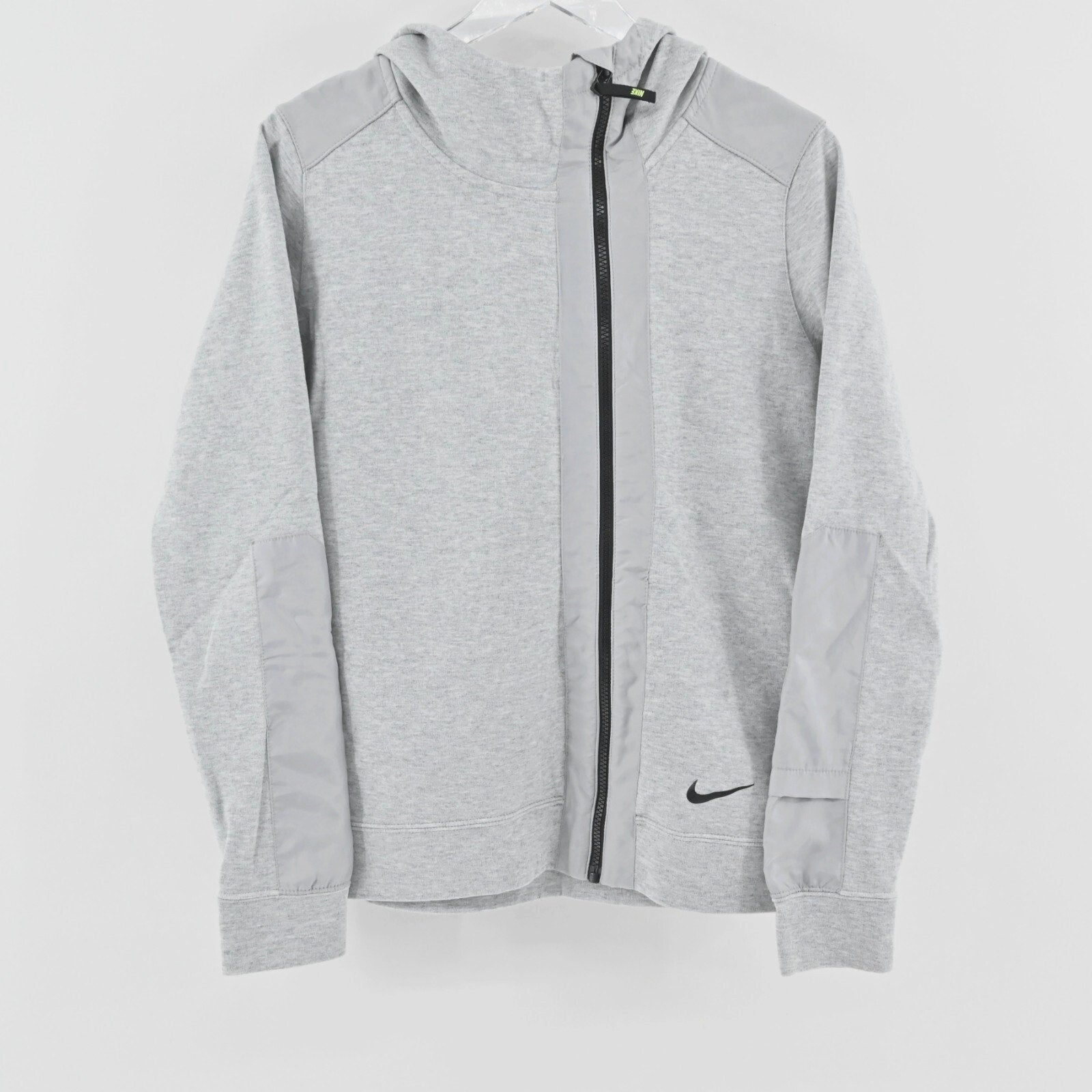 NIKE Womens Advance 15 FZ Hoodie Sz L Activewear Gray Asymmetric Full Zip Jacket