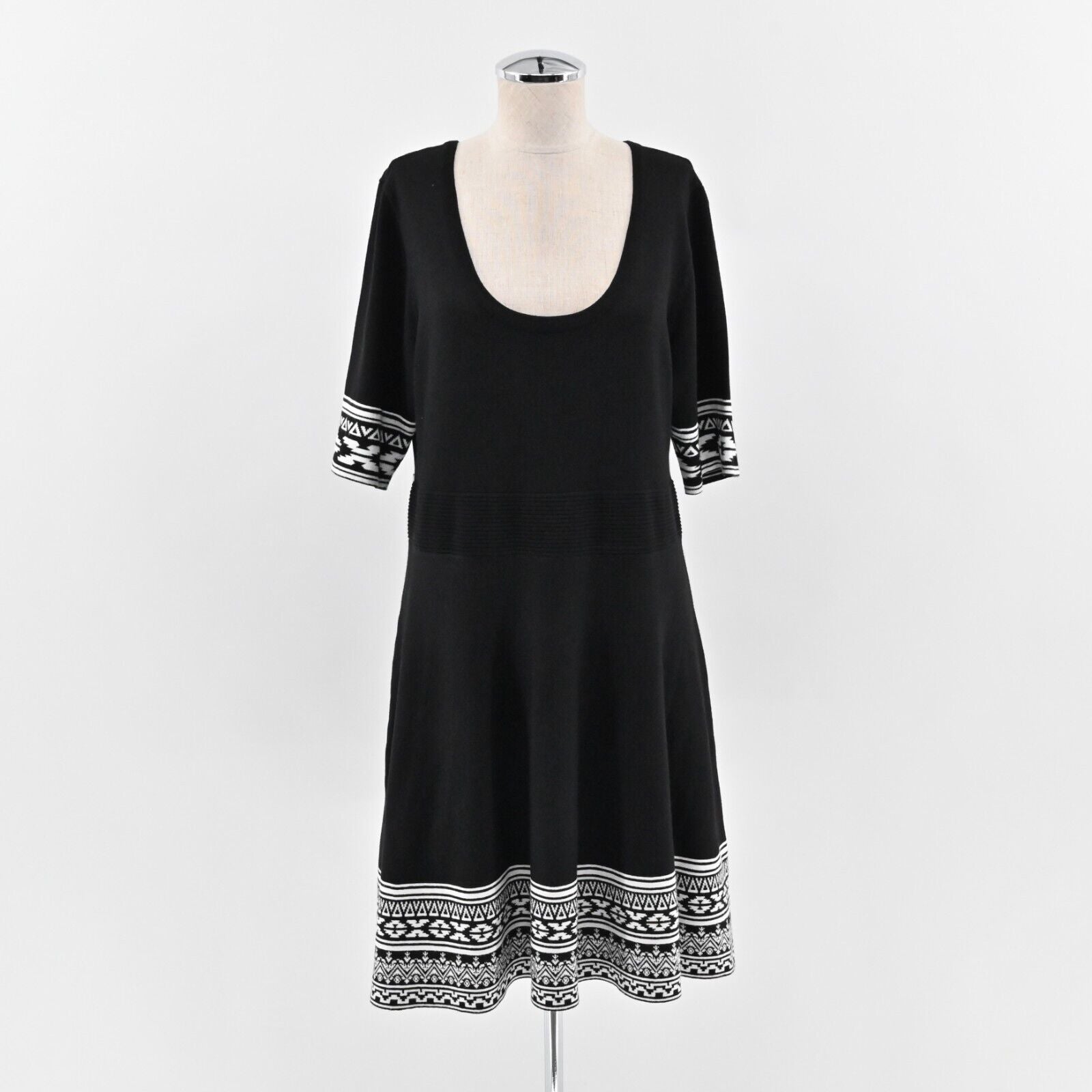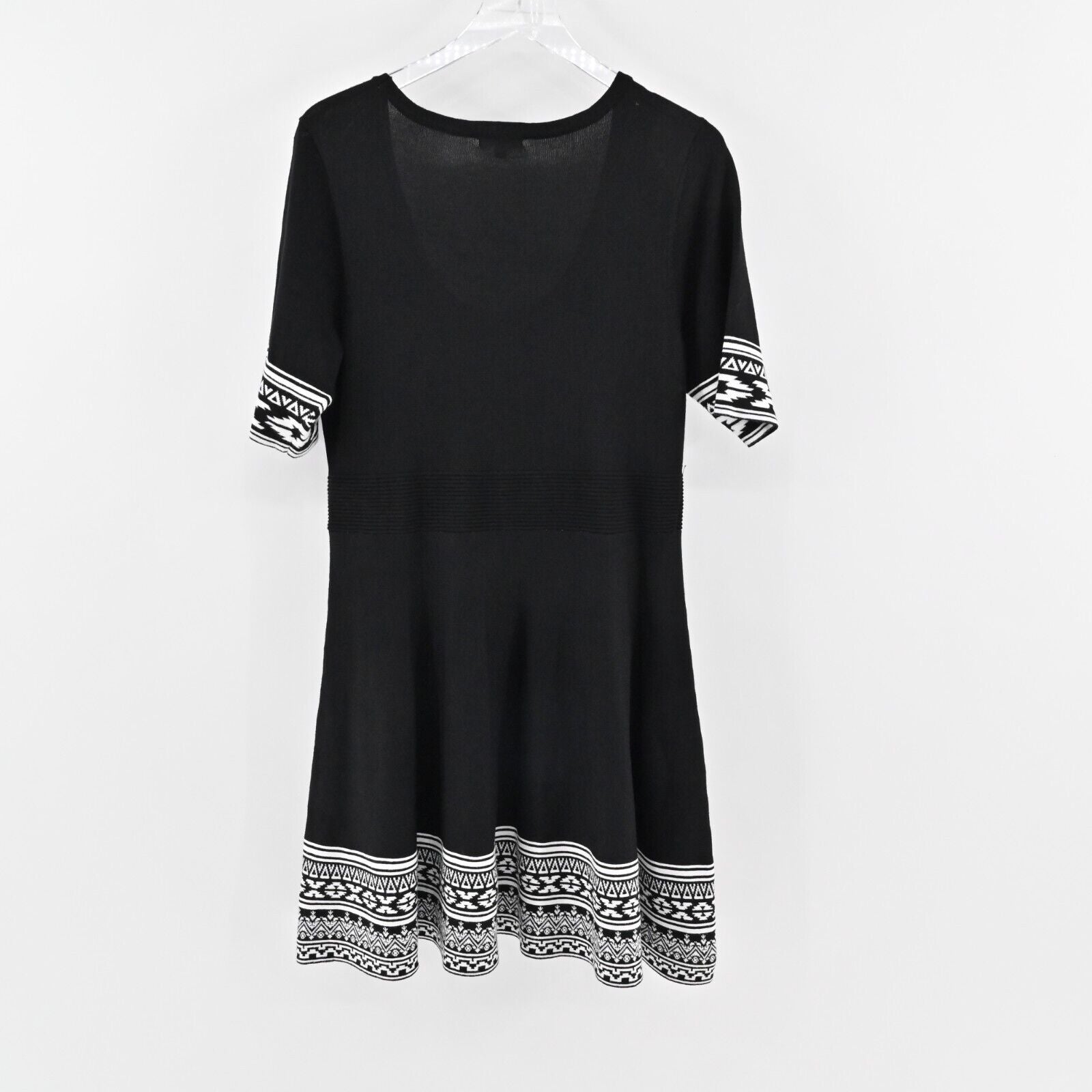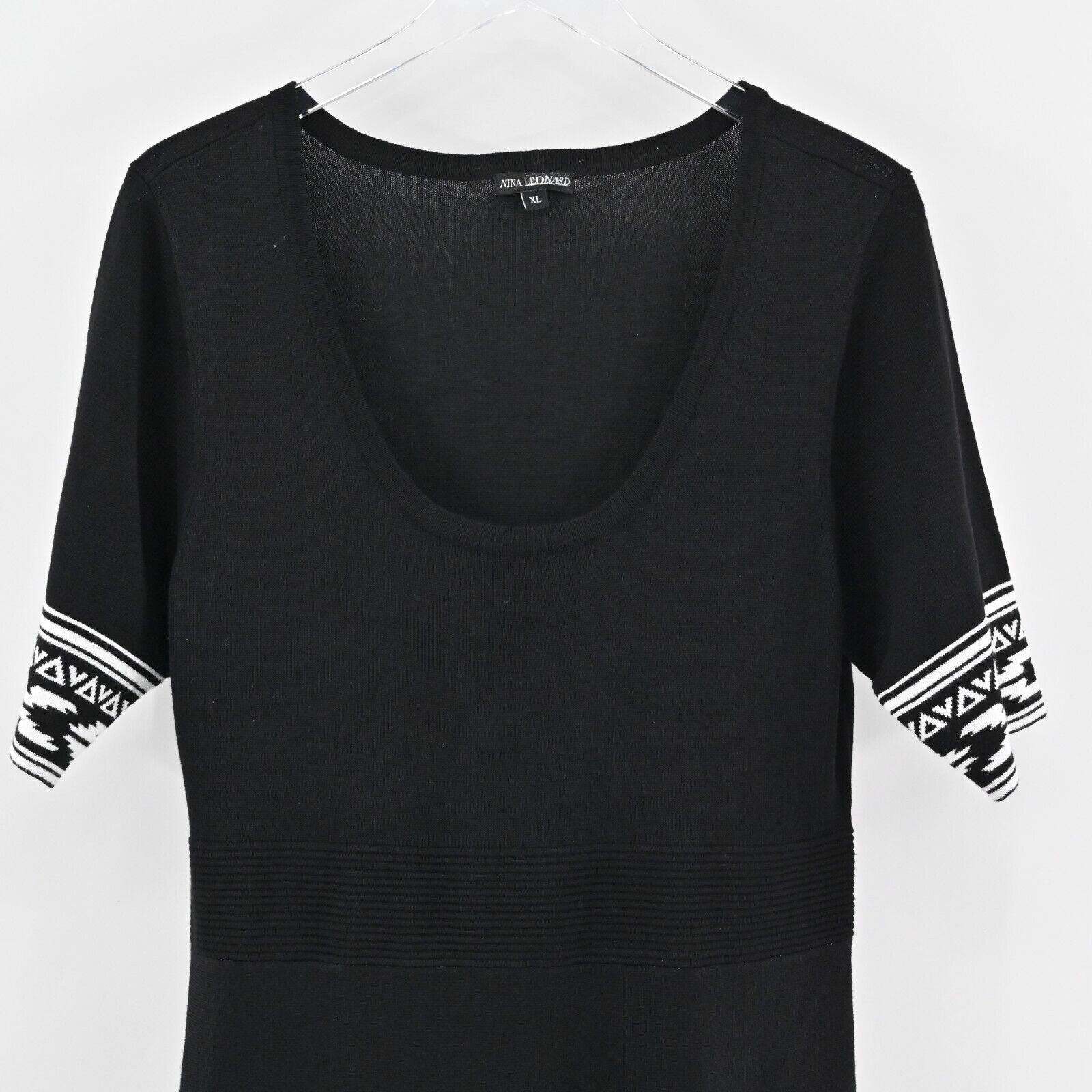 NINA LEONARD Dress Size XL Fit Flare Sweater Mini Black White Trim Scoop Neck
