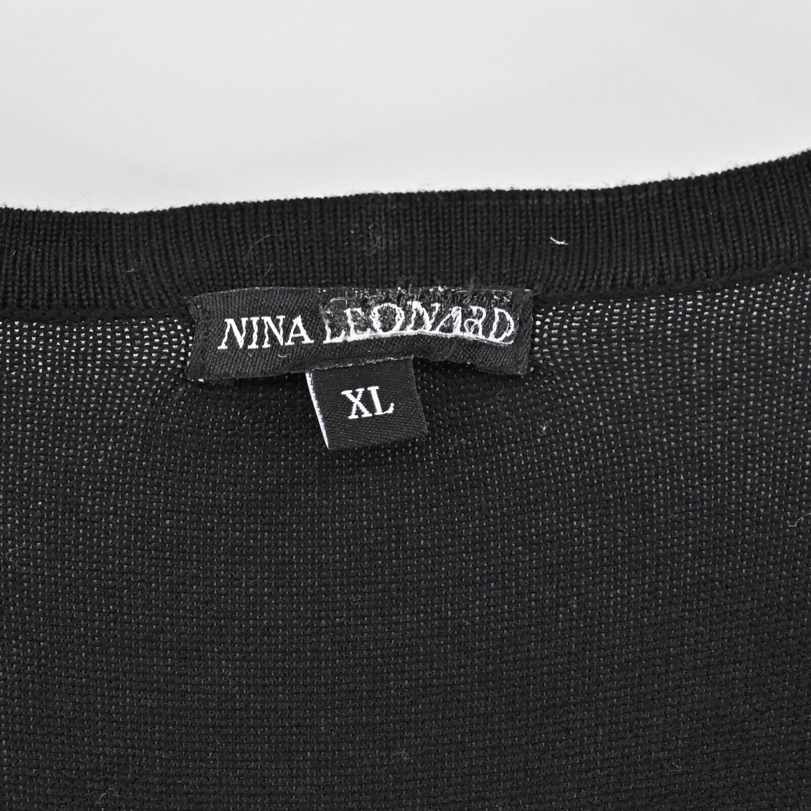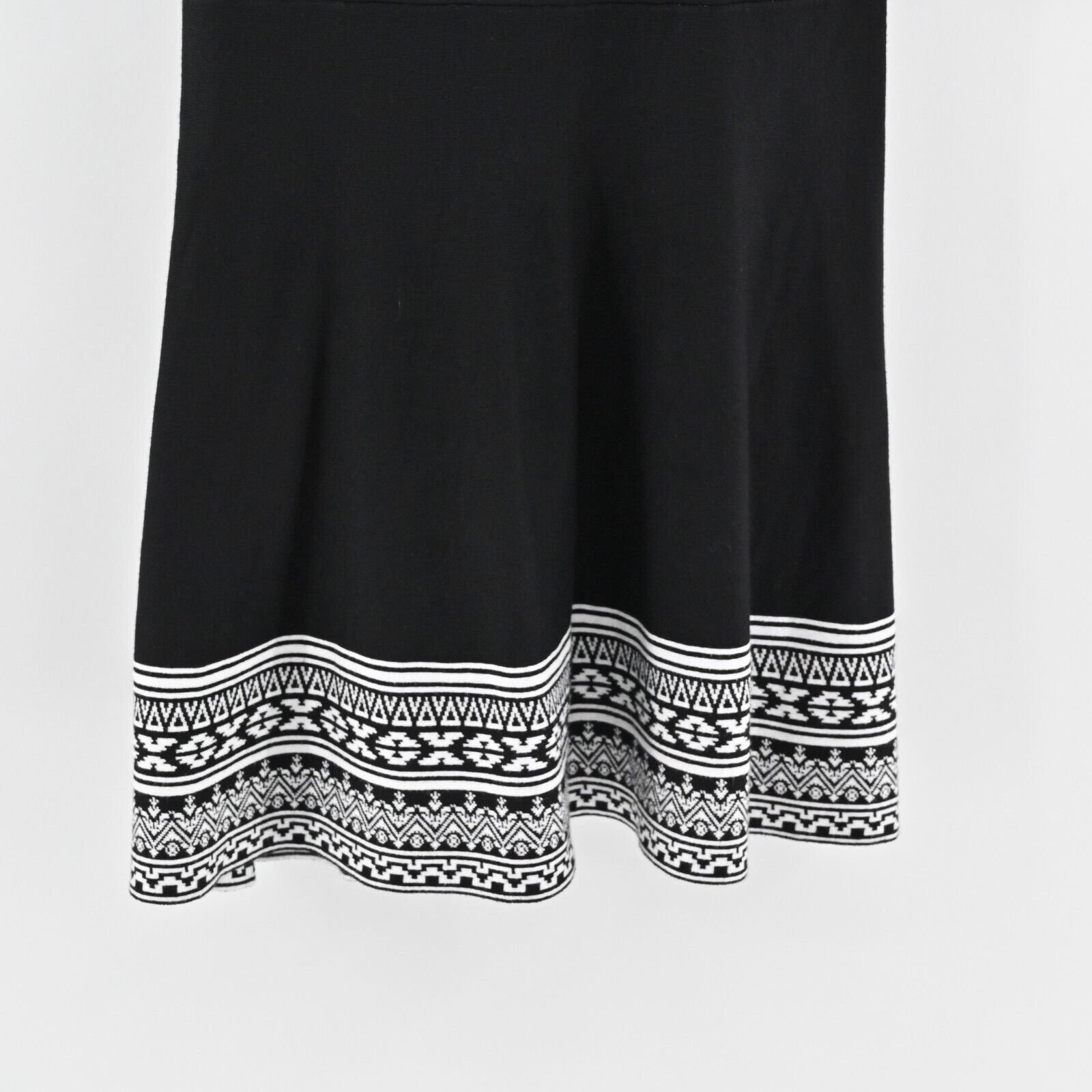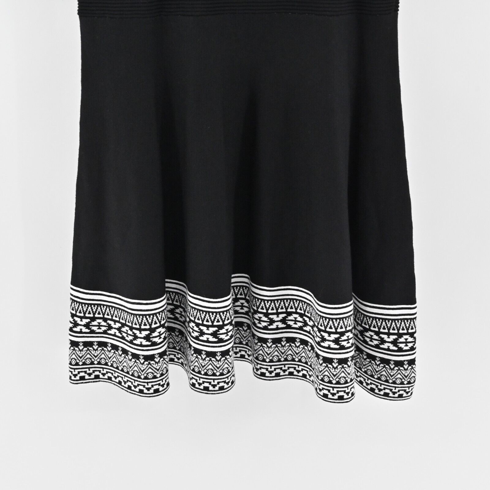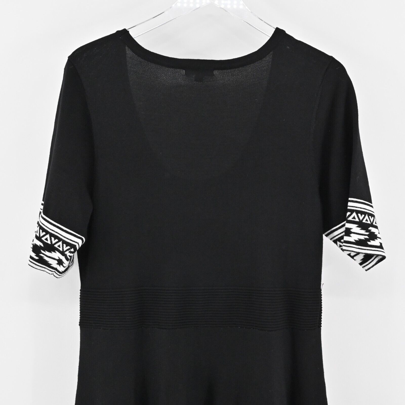 NINA LEONARD Dress Size XL Fit Flare Sweater Mini Black White Trim Scoop Neck