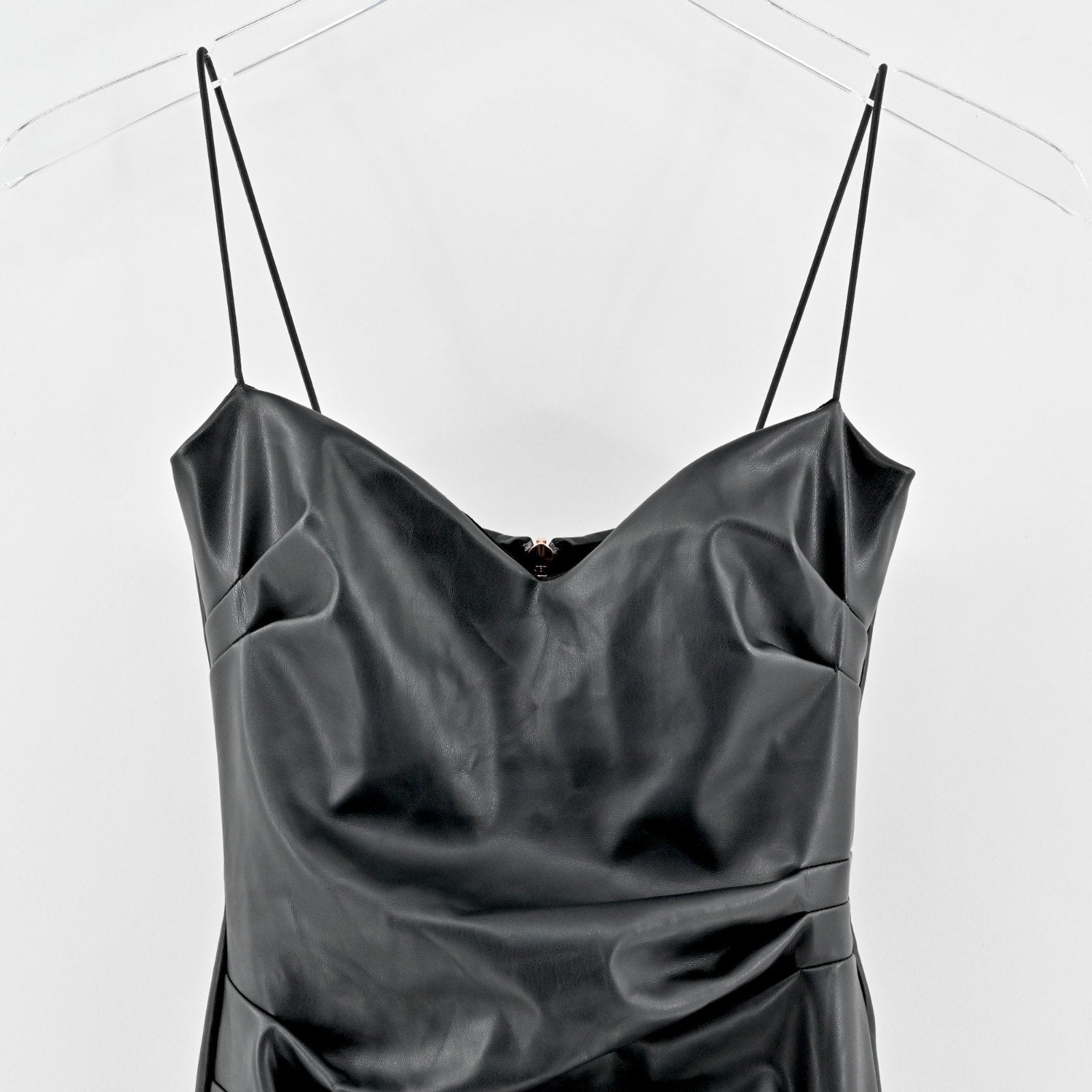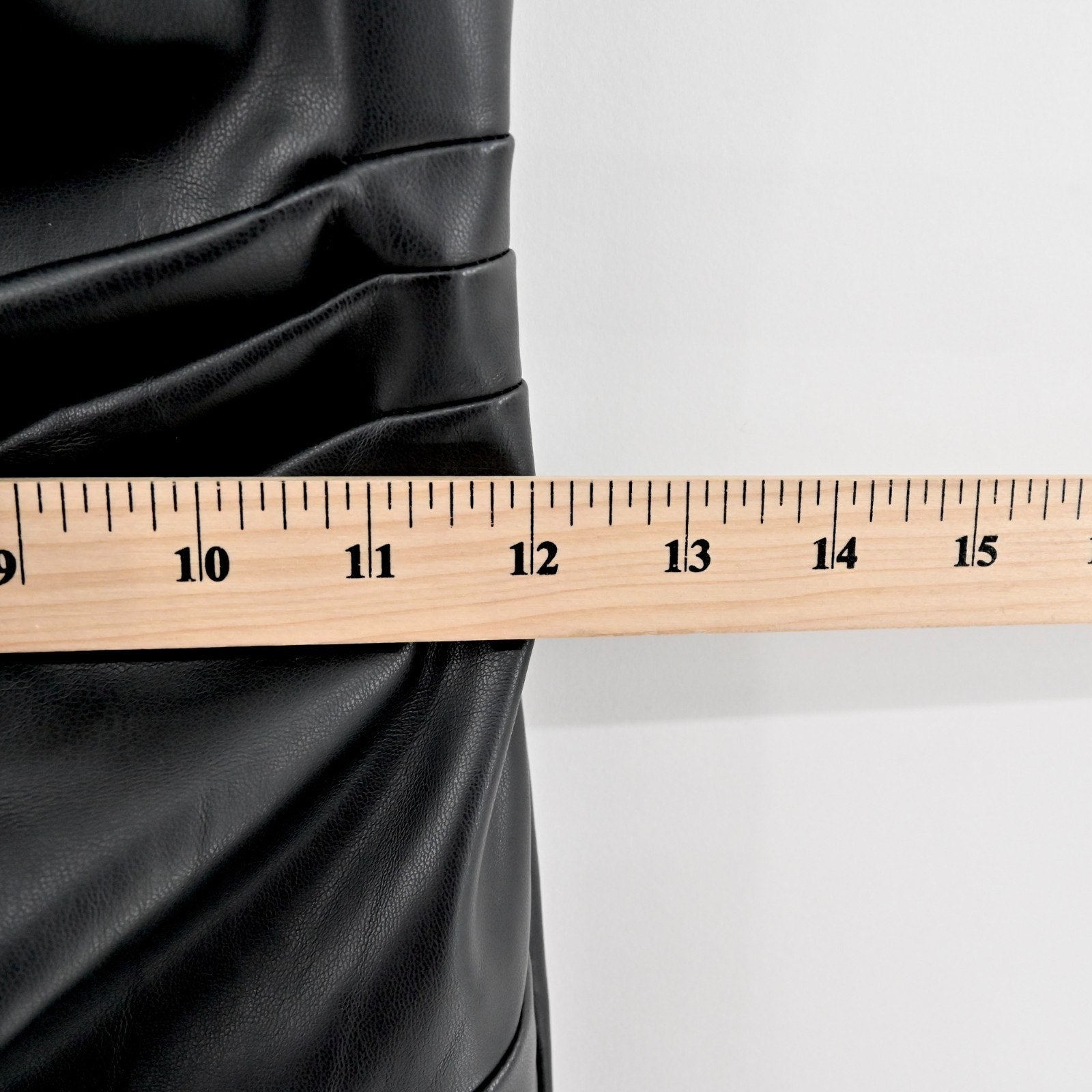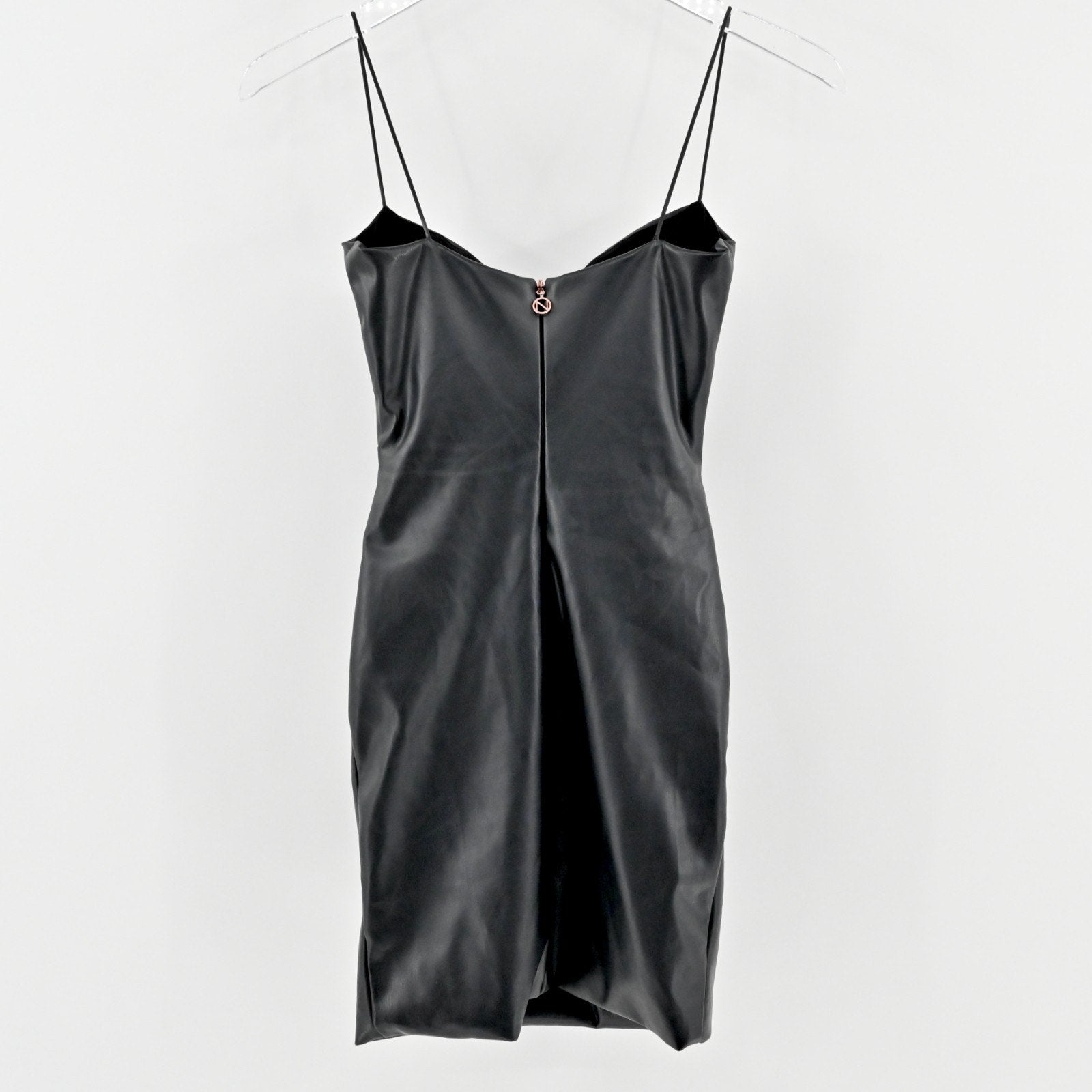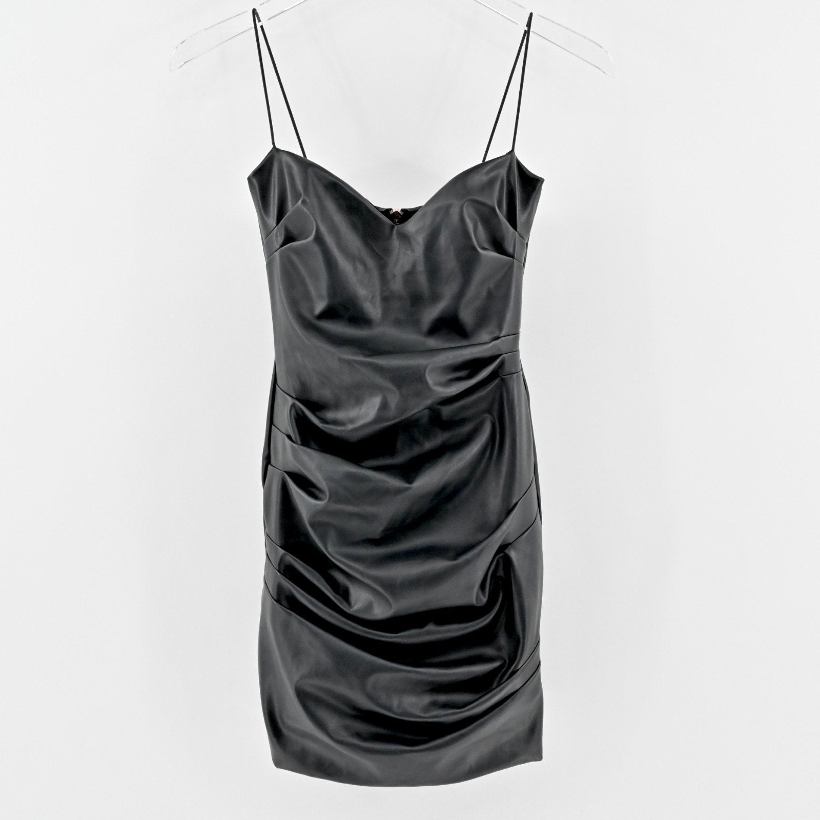 Nookie Rhea Black Faux Leather Mini Dress Size XS Sleeveless Ruched Bodycon