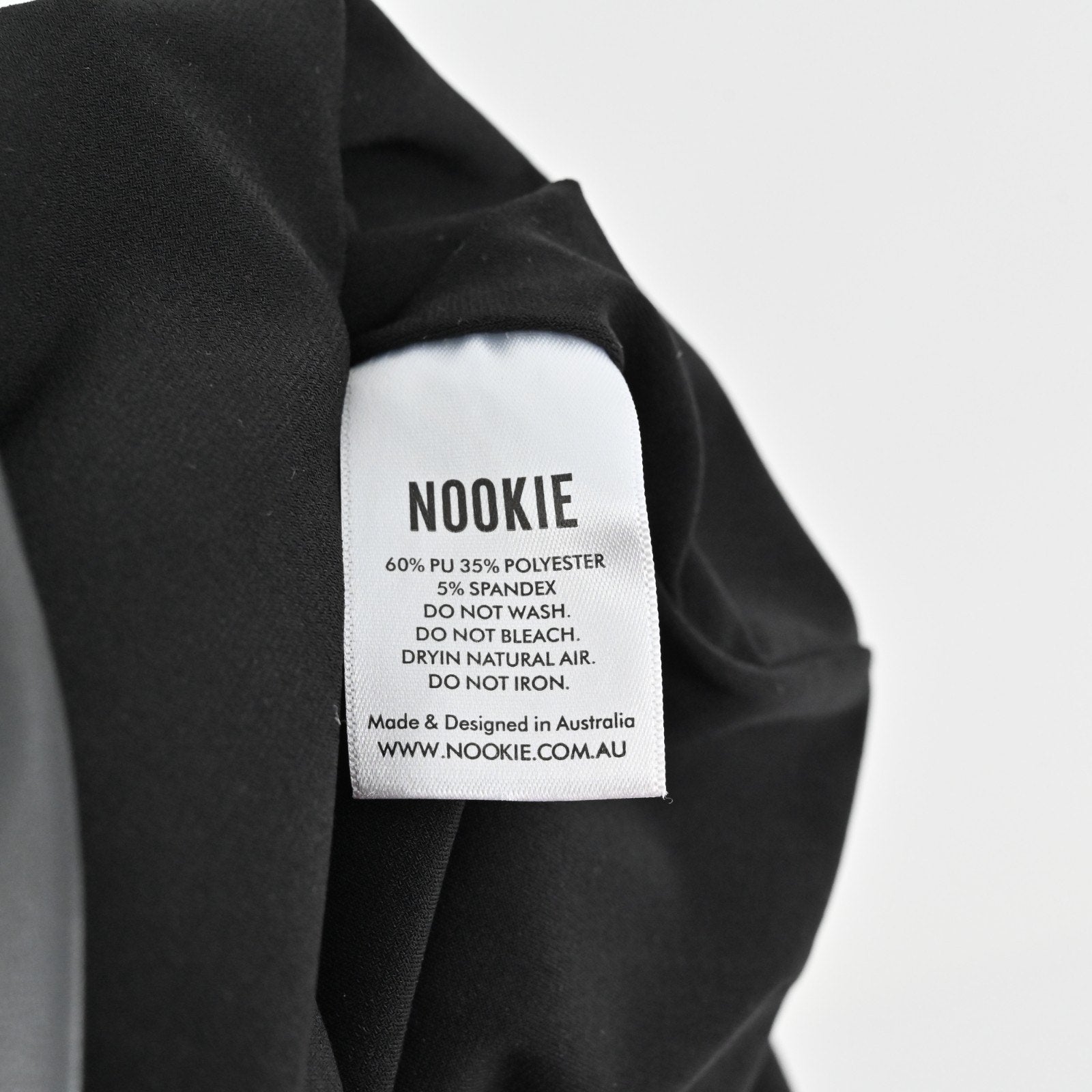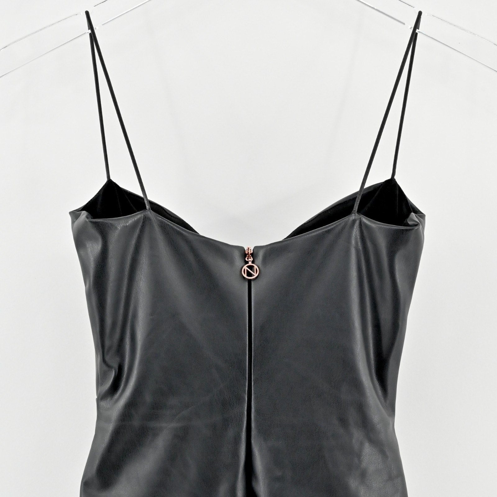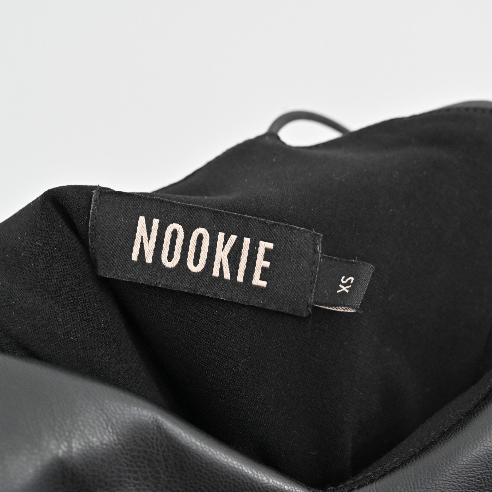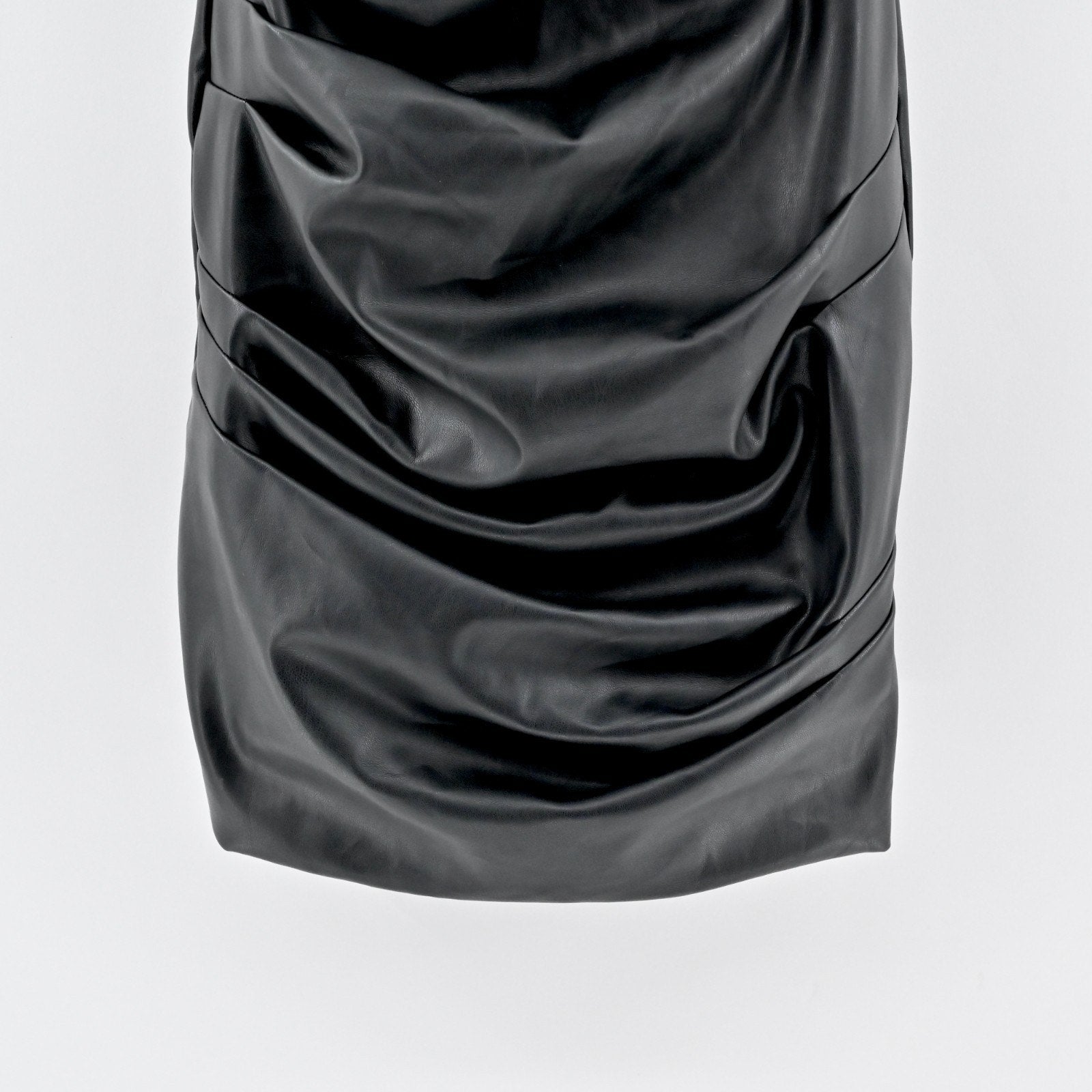 Nookie Rhea Black Faux Leather Mini Dress Size XS Sleeveless Ruched Bodycon