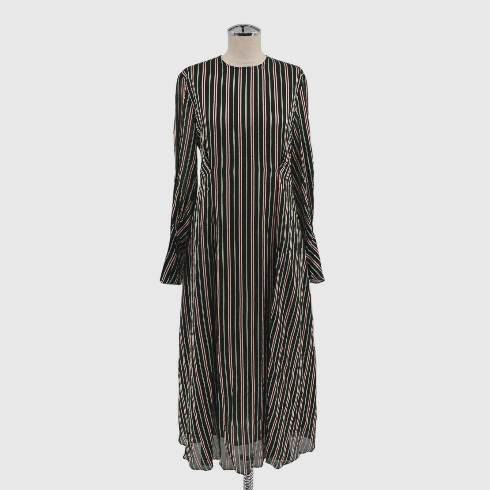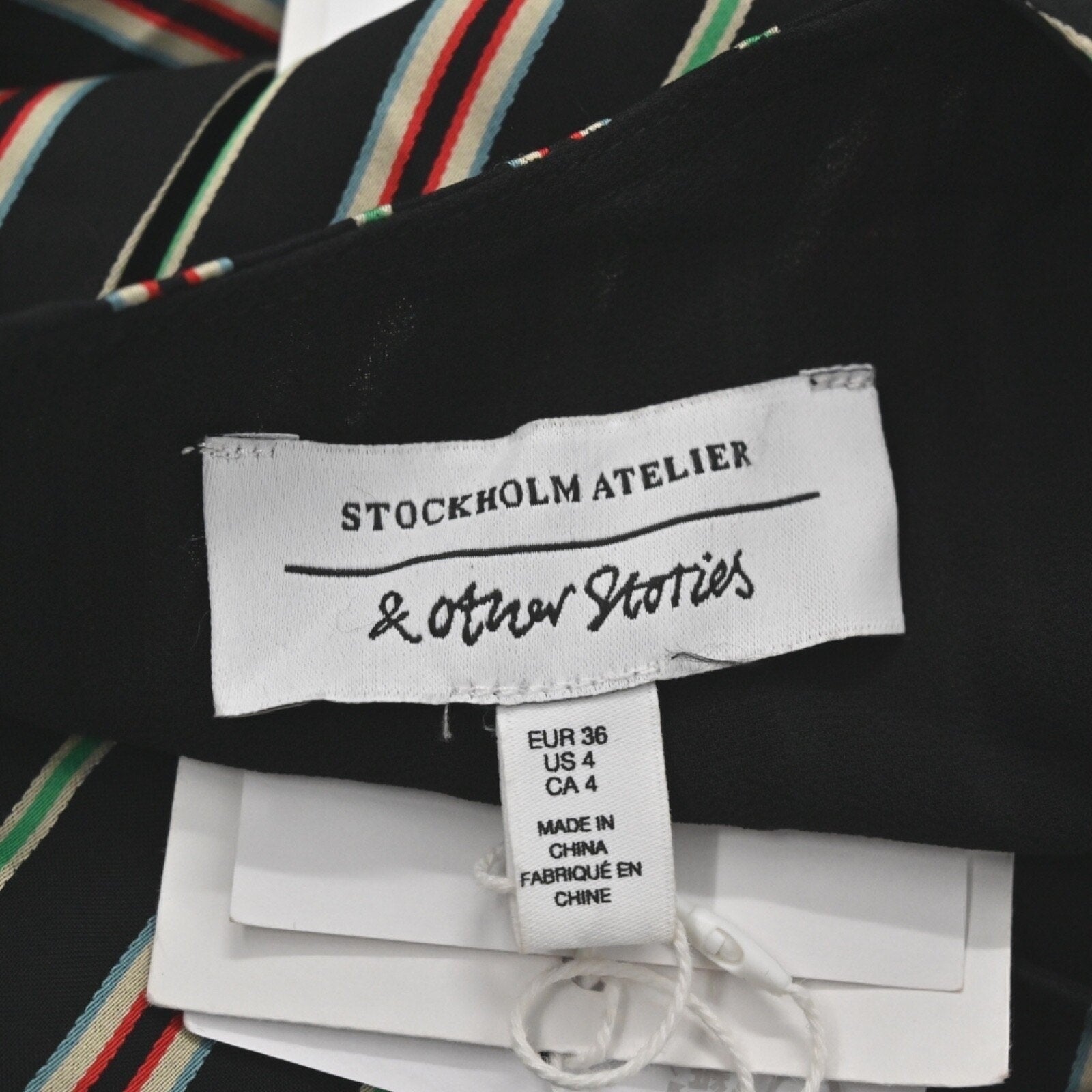 & OTHER STORIES Striped Midi Dress Size 4 Black Dark Romantic Retro Steampunk