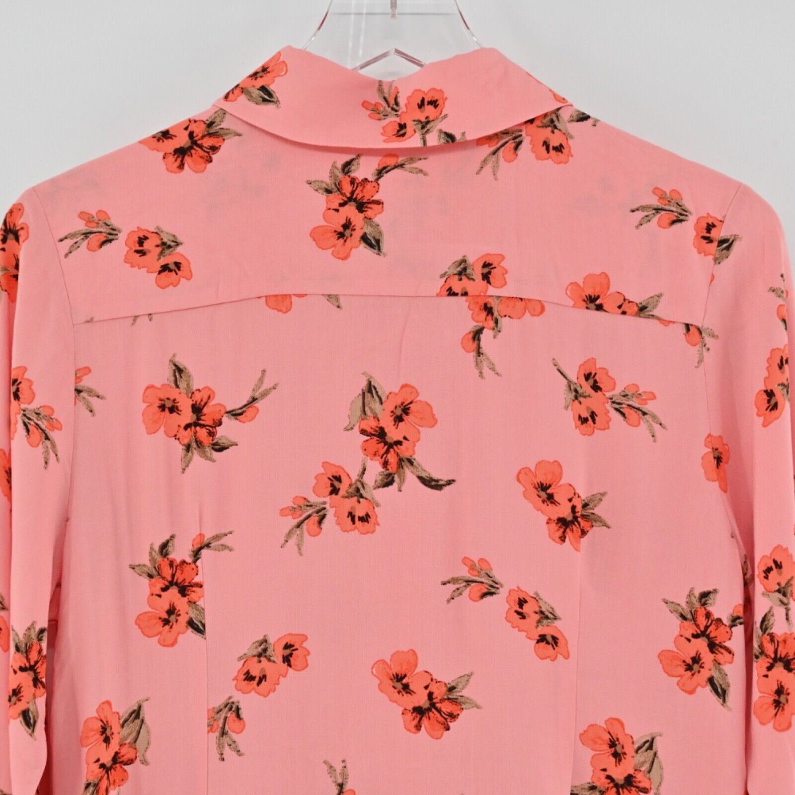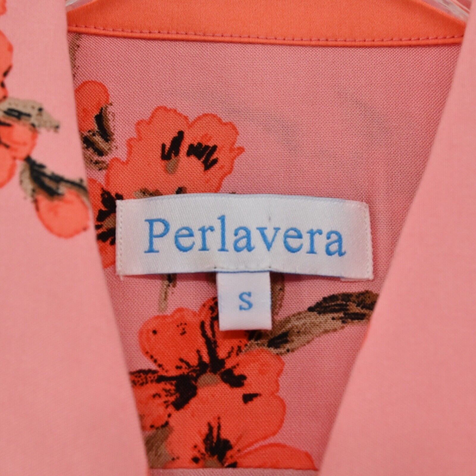 PERLAVERA Top Women's Size Small Pink Floral 3/4 Sleeve Button Cuffs Concealed Button Up Closure Preppy Boho Bohemian Office