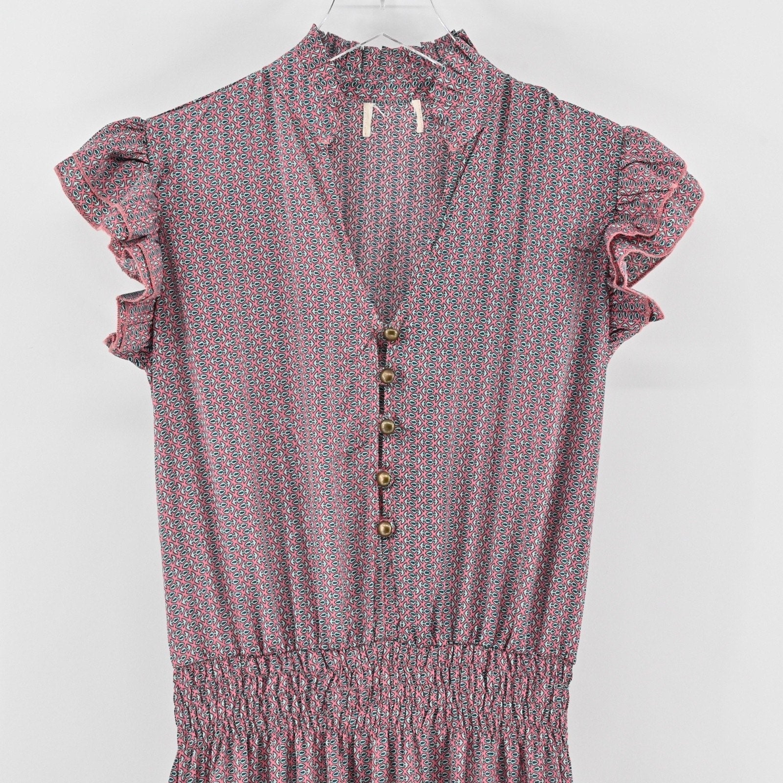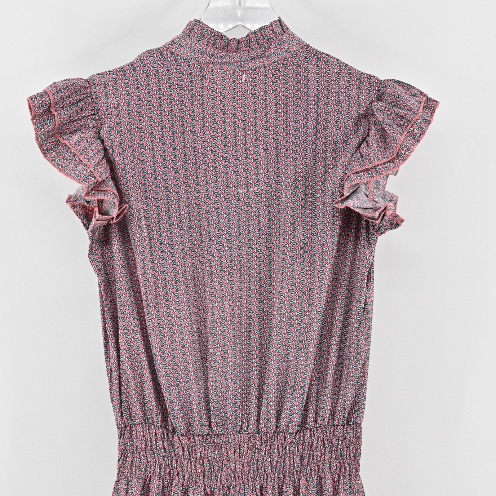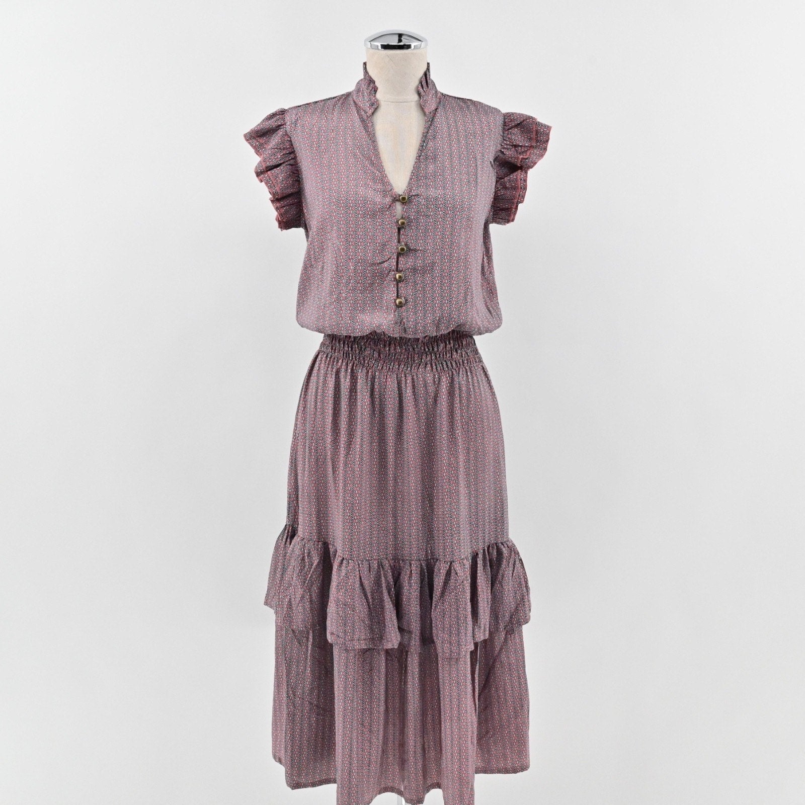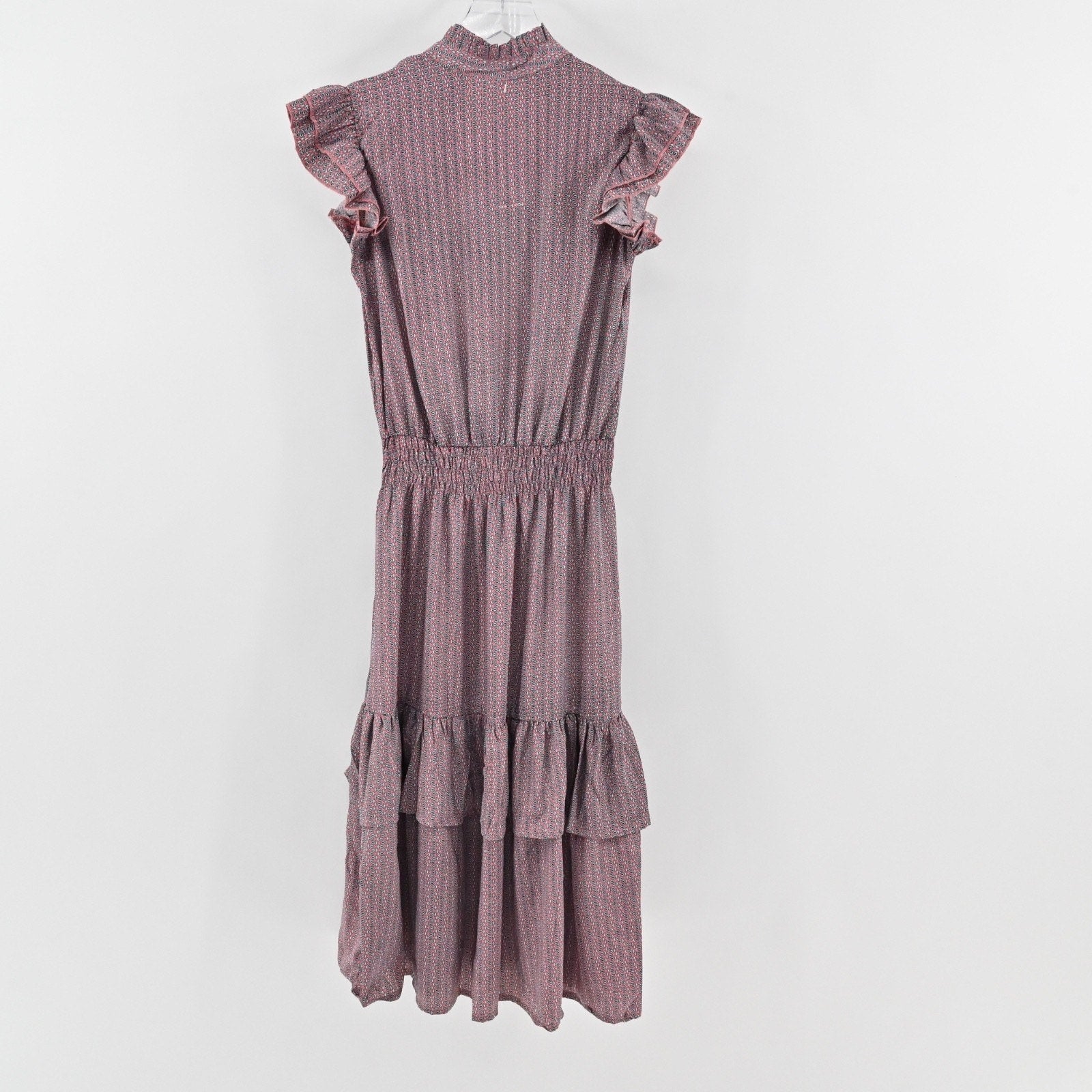 PERRY WALKER COLLECTIVE Cornelia Midi Dress Size M Pink Floral Silk Peasant Boho