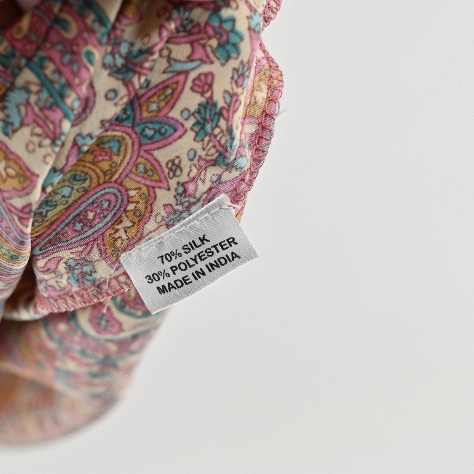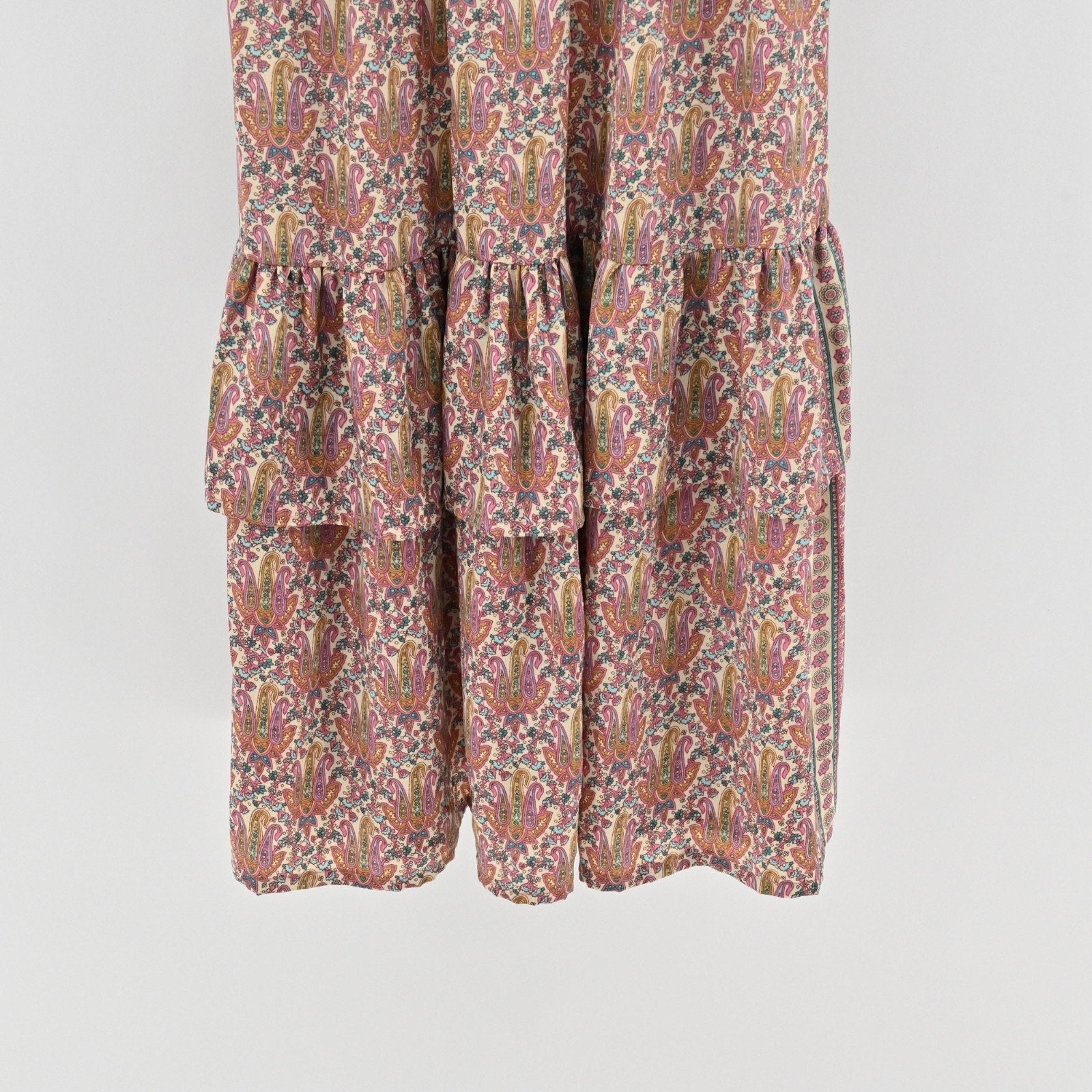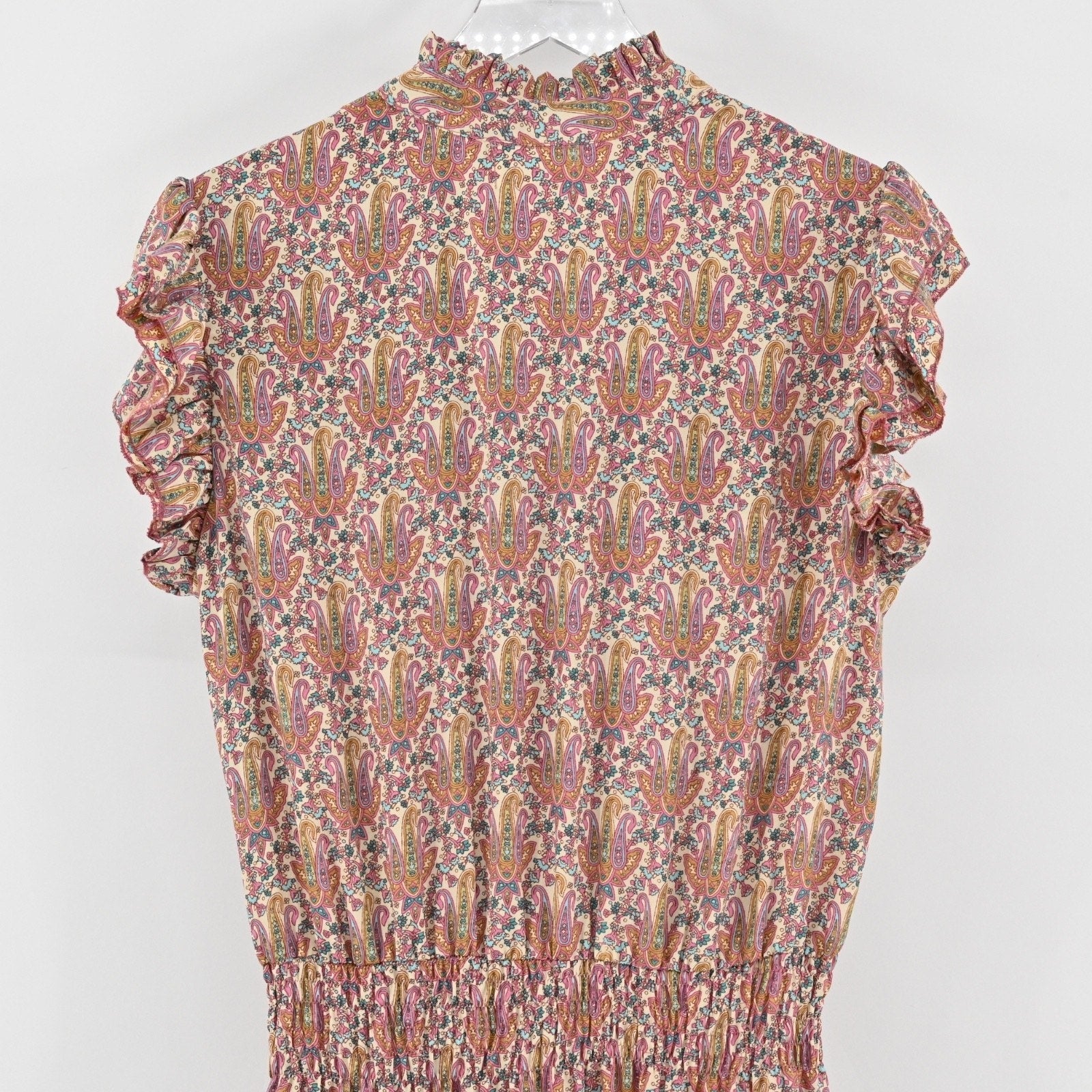 PERRY WALKER COLLECTIVE Cornelia Midi Dress Sz L Beige Paisley Silk Peasant Boho