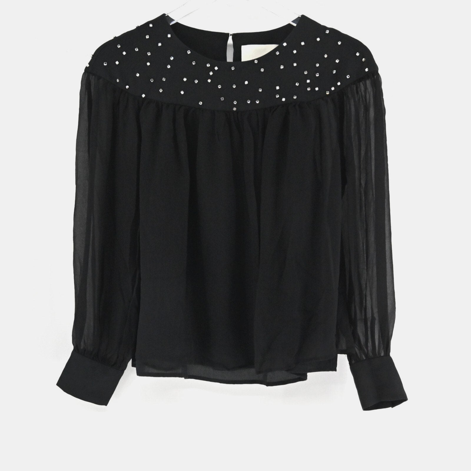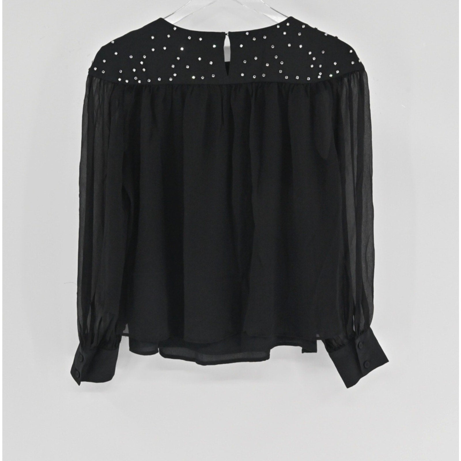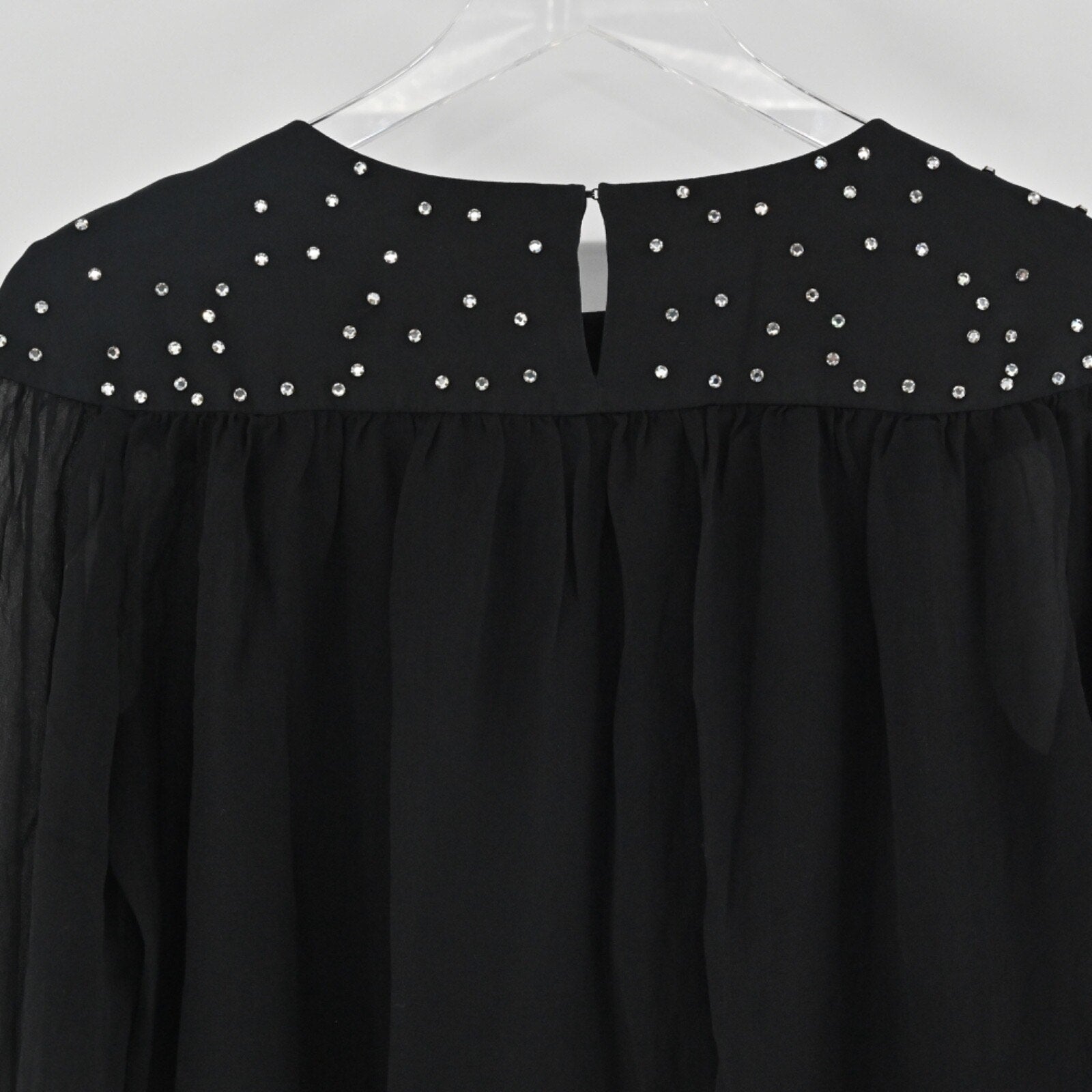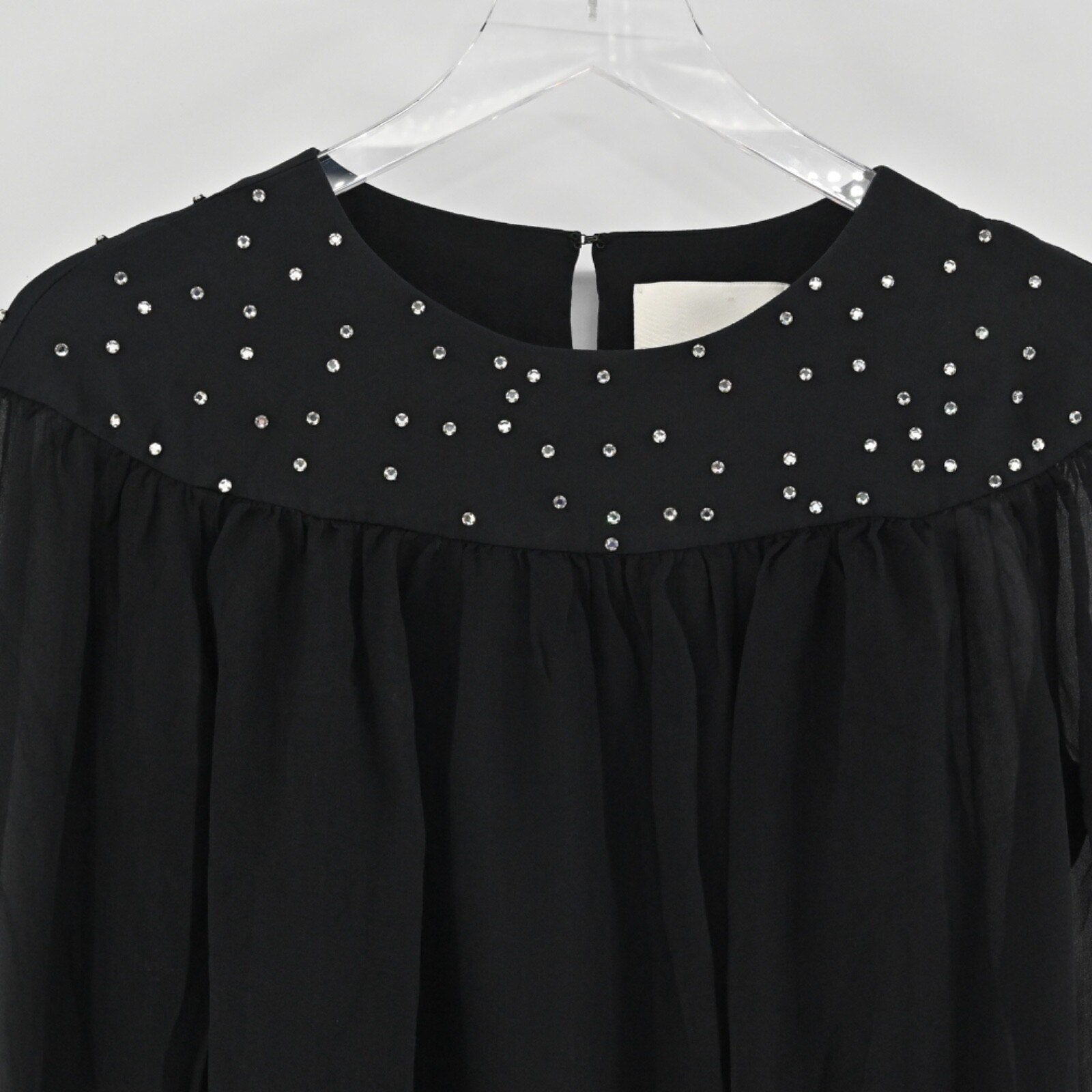 PHILLIP LIM Womens Silk Top Size 6 Black Rhinestone Balloon Sleeve Glam Holiday