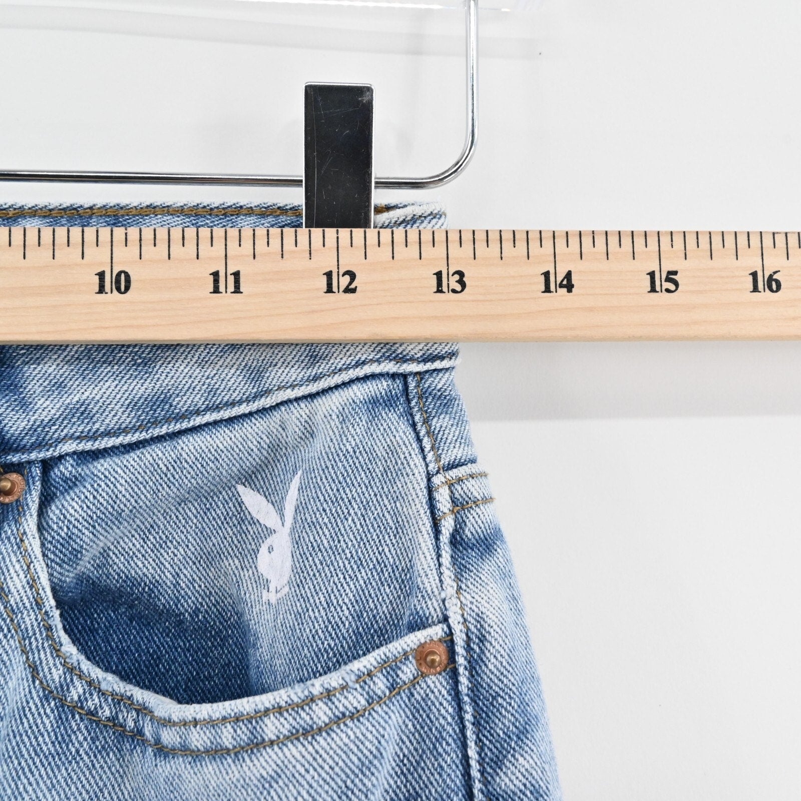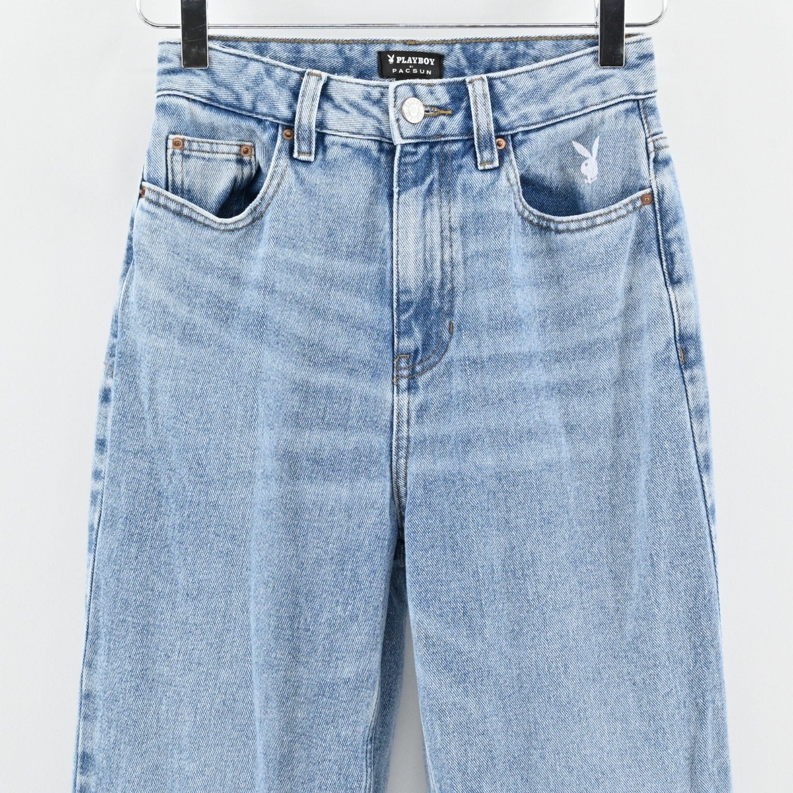 Style Profile: Playboy Pacsun Destroyed Distressed Rainbow Embroidered High Rise Straight Leg Cotton Ripped Relaxed Fit Mom Wash Lightweight Denim Graphic Blue Patch Casual Urban Streetwear Retro 90s Rainbowcore Rainbow Rainbowflag LGBTQIA LGBTQ Gaypride Queer Pridemonth