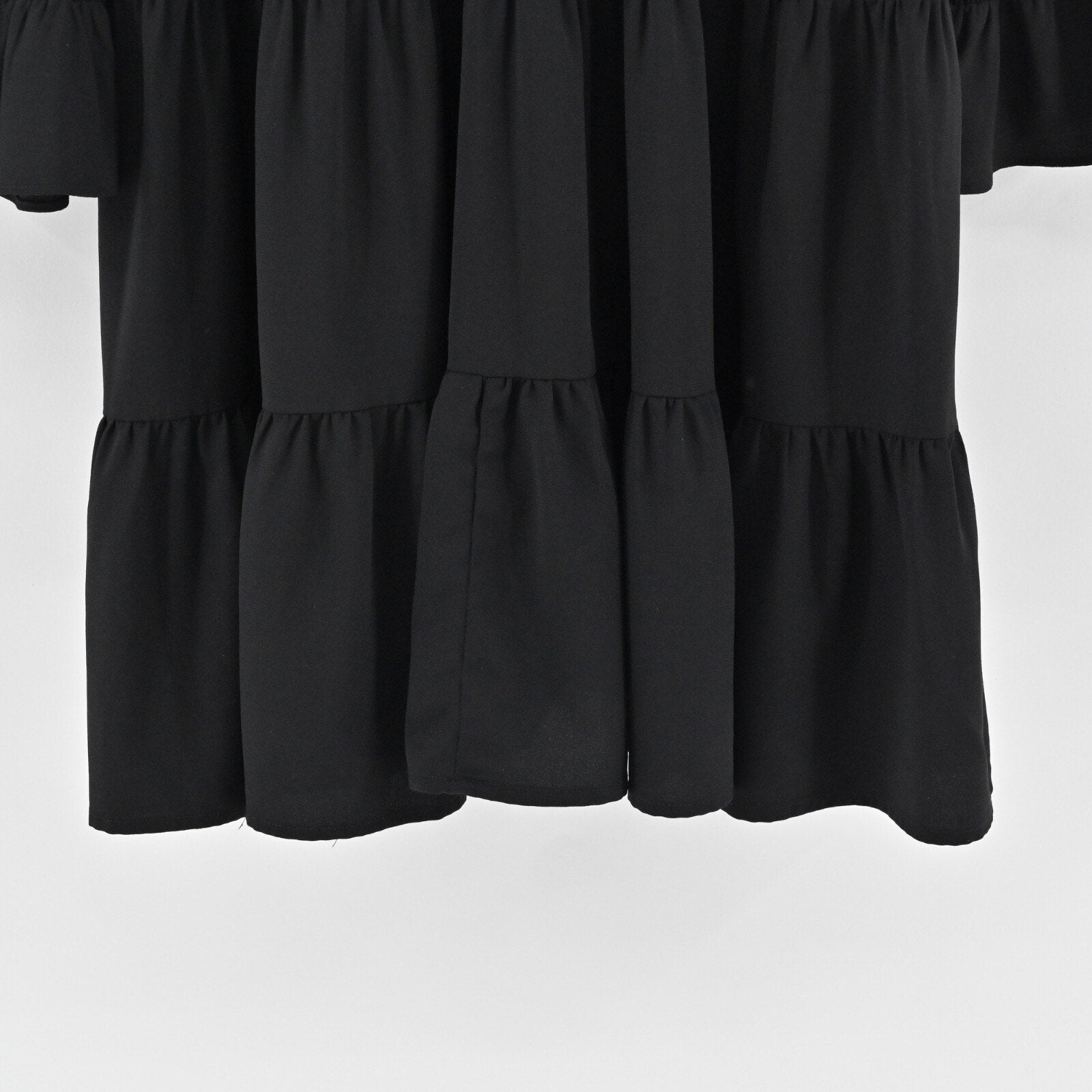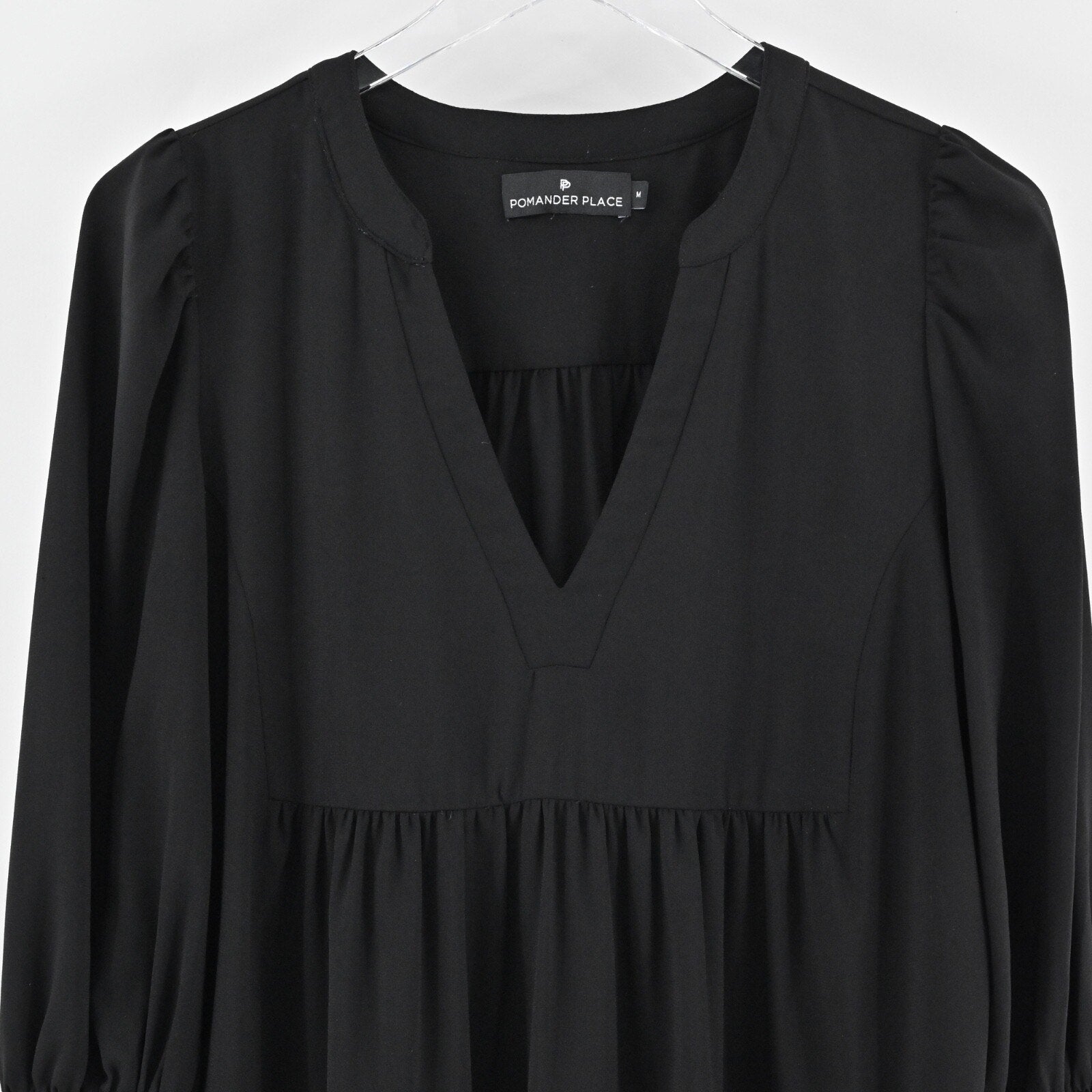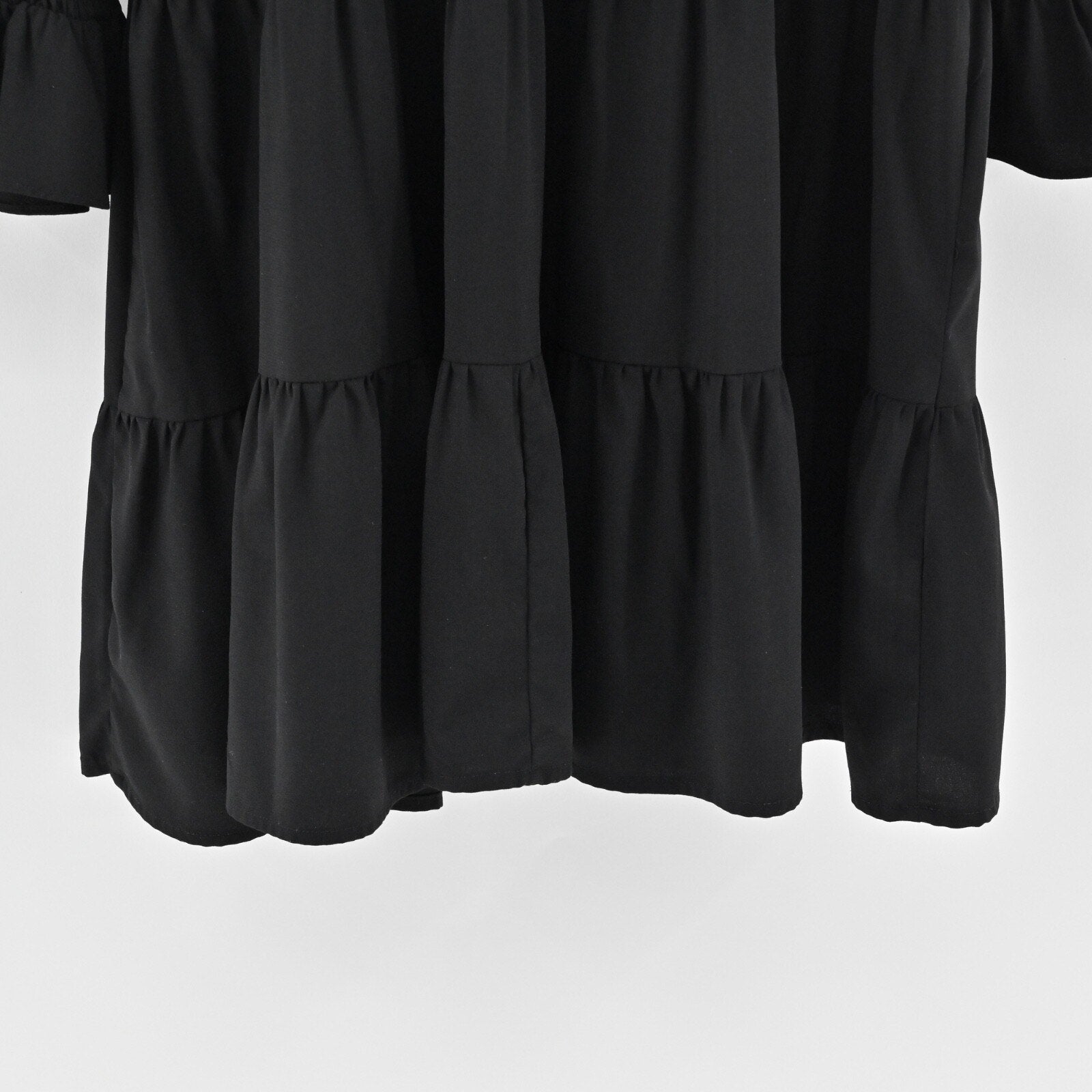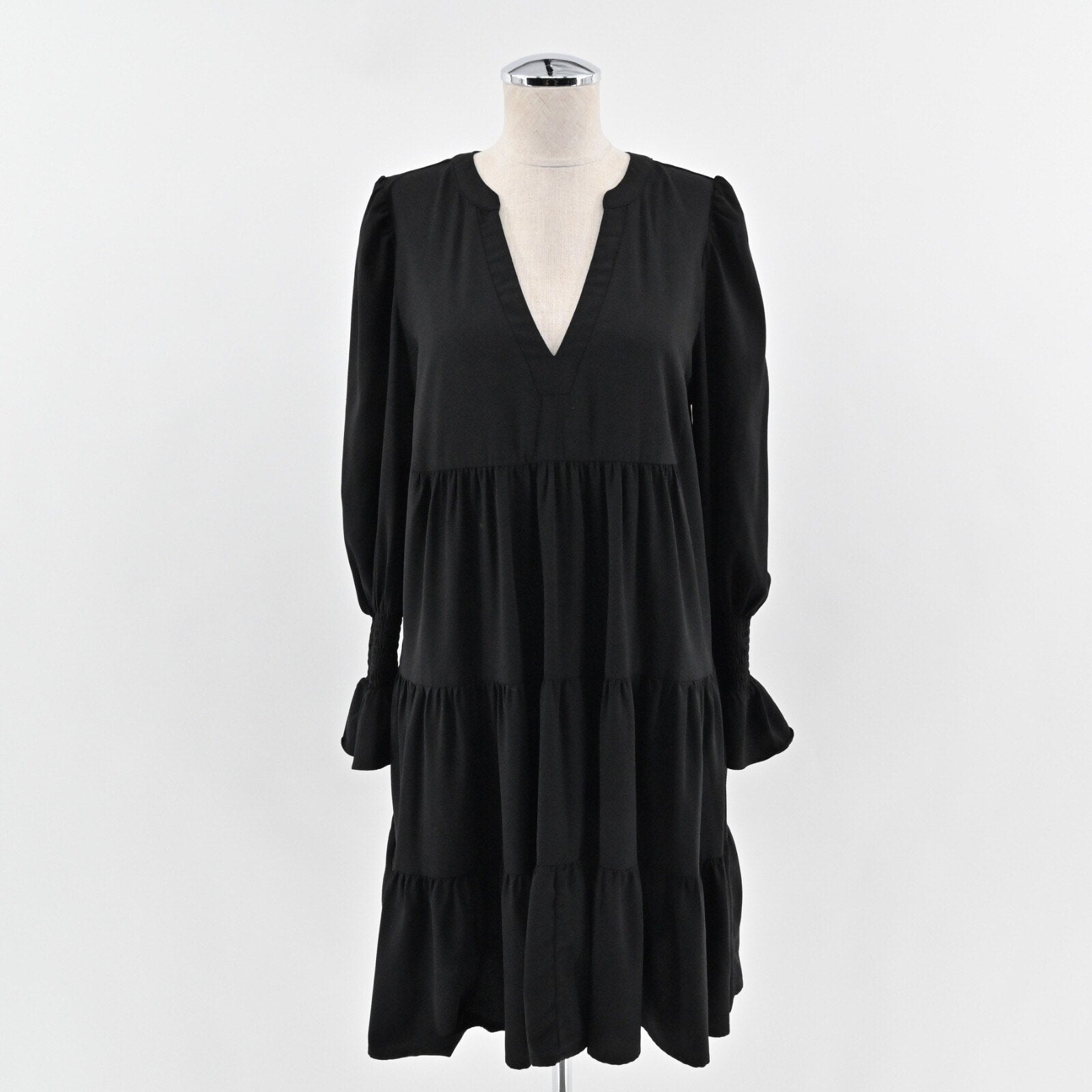 POMANDER PLACE Kenzo Mini Dress Sz M Black Tiered Ruffle Bell Sleeve Tuckernuck