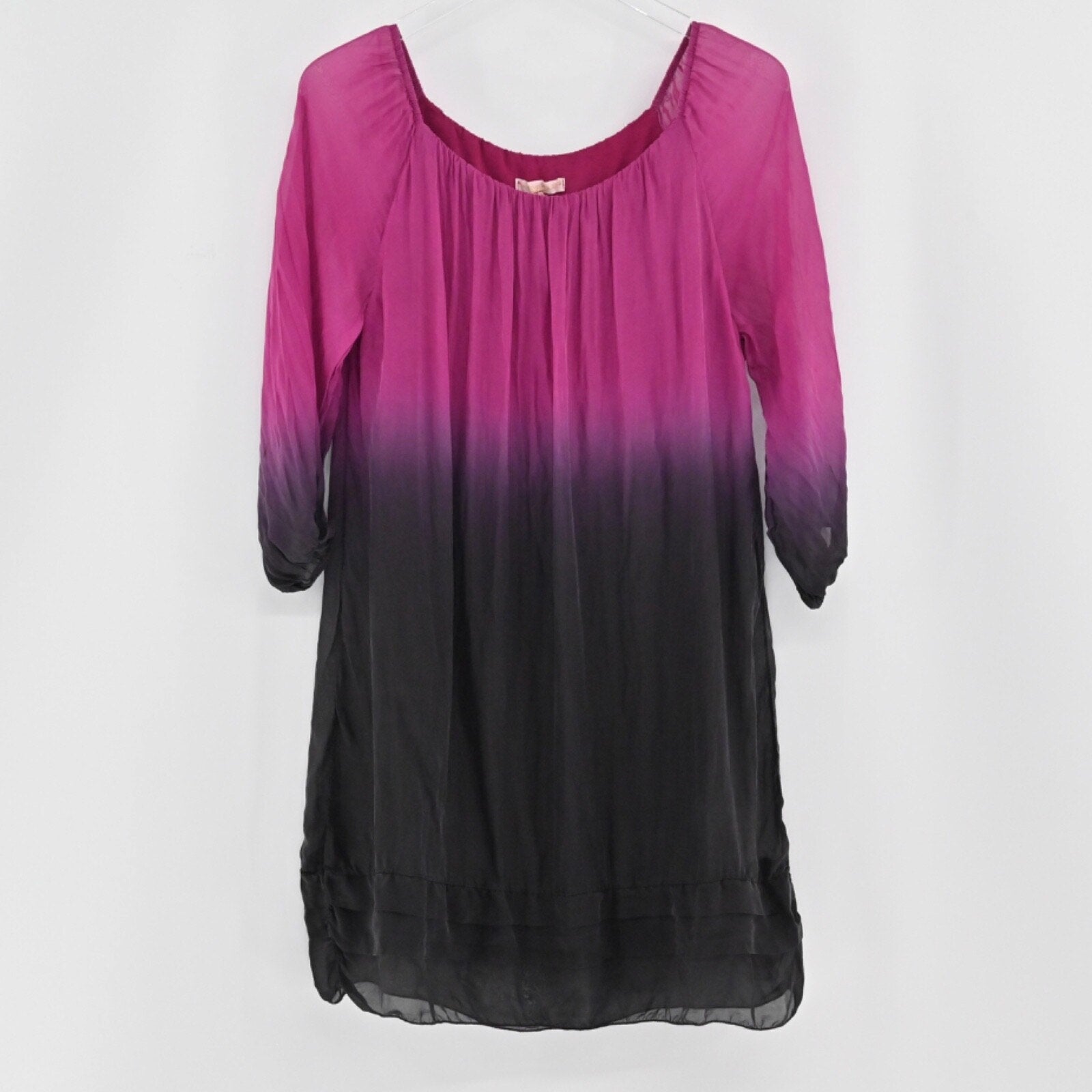 PRONTOMODA GIUSY Womens Silk Ombre Dress Size M Pleated Shift Pink Dip Tie Dye