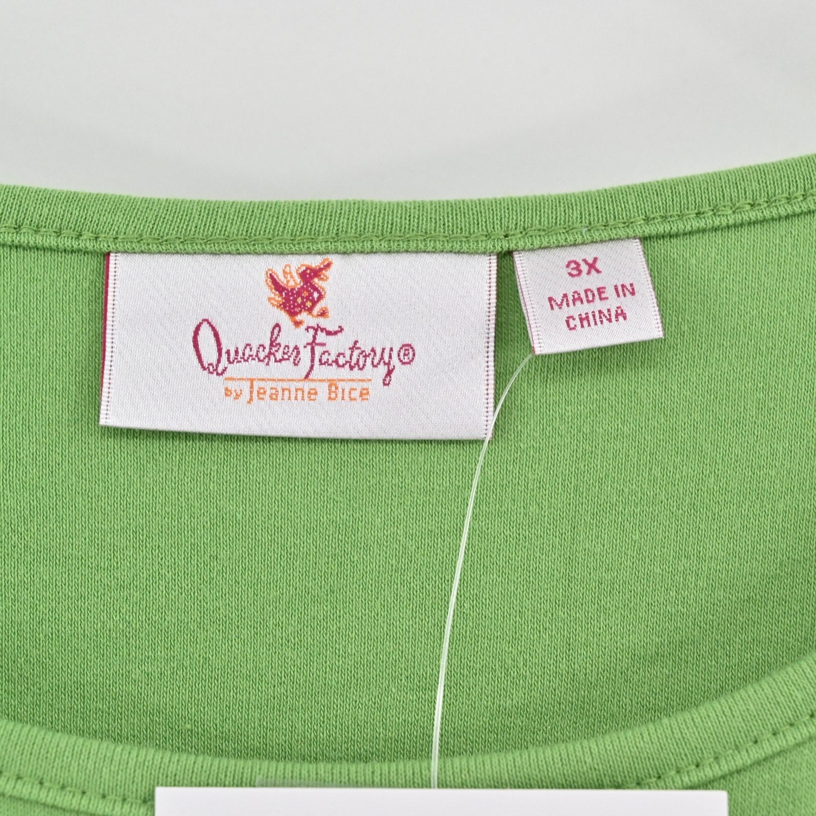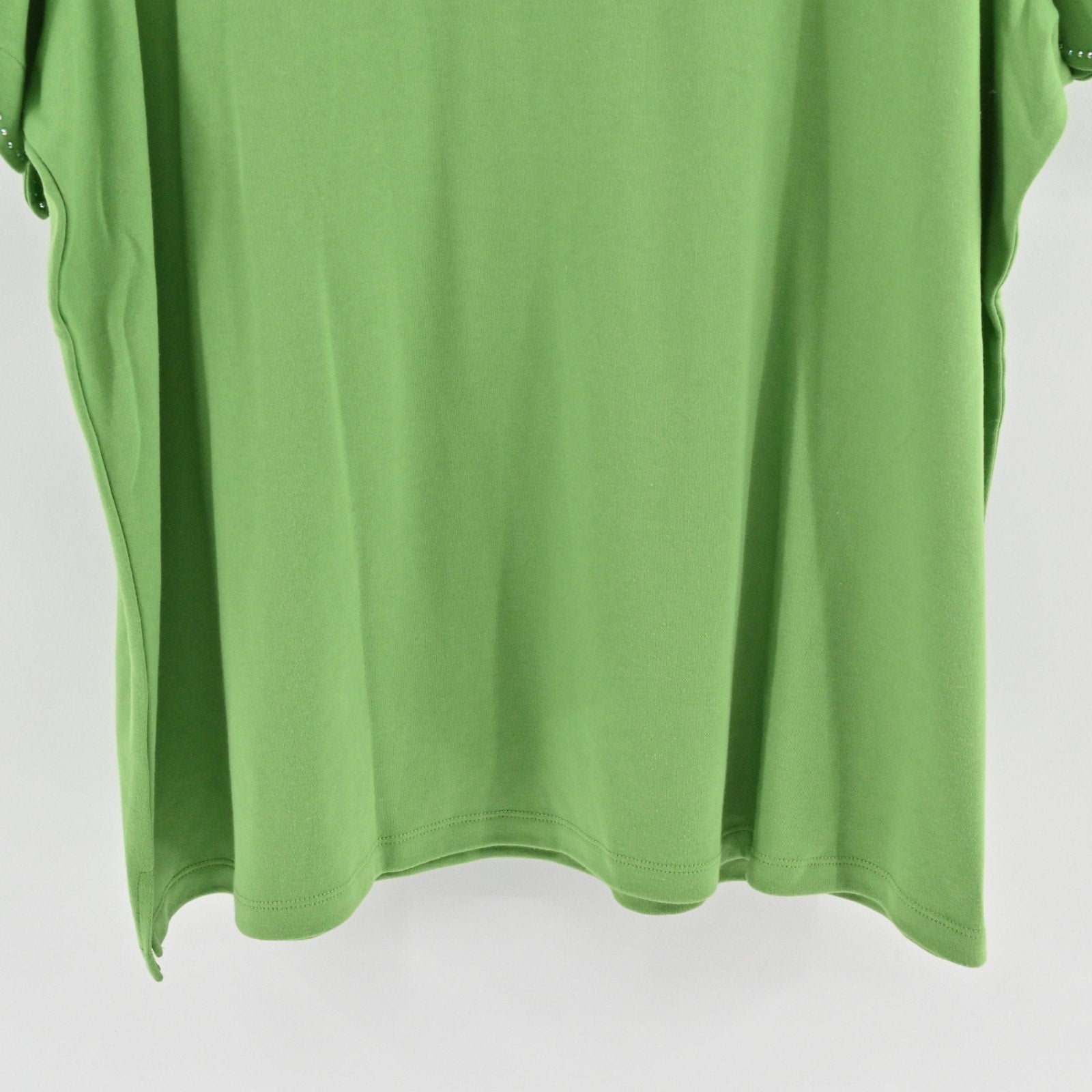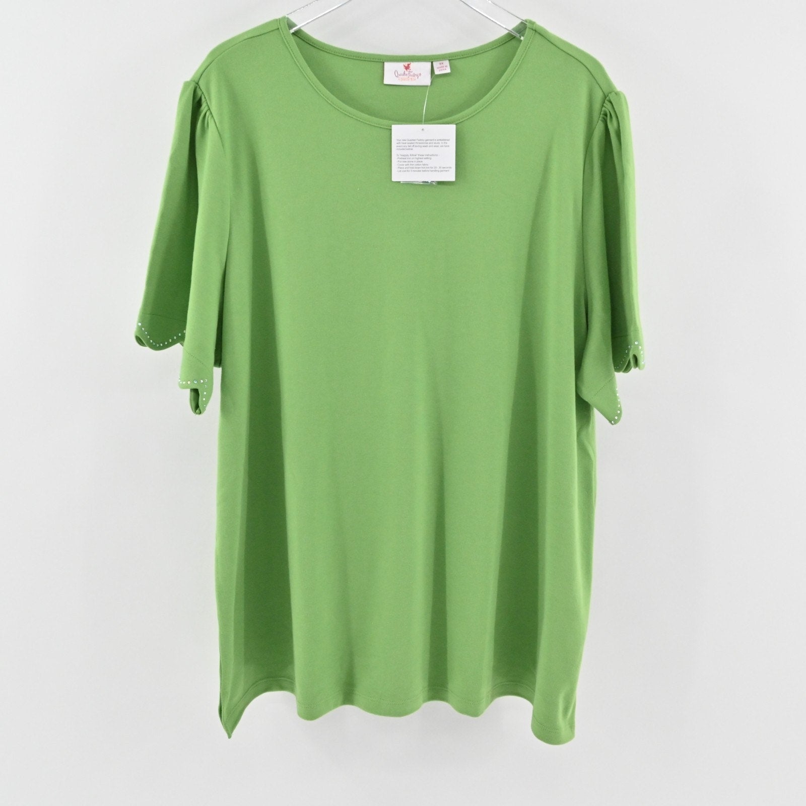 Quacker Factory Womens Scalloped Rhinestone Top Size 3X Green Short Puff Sleeve