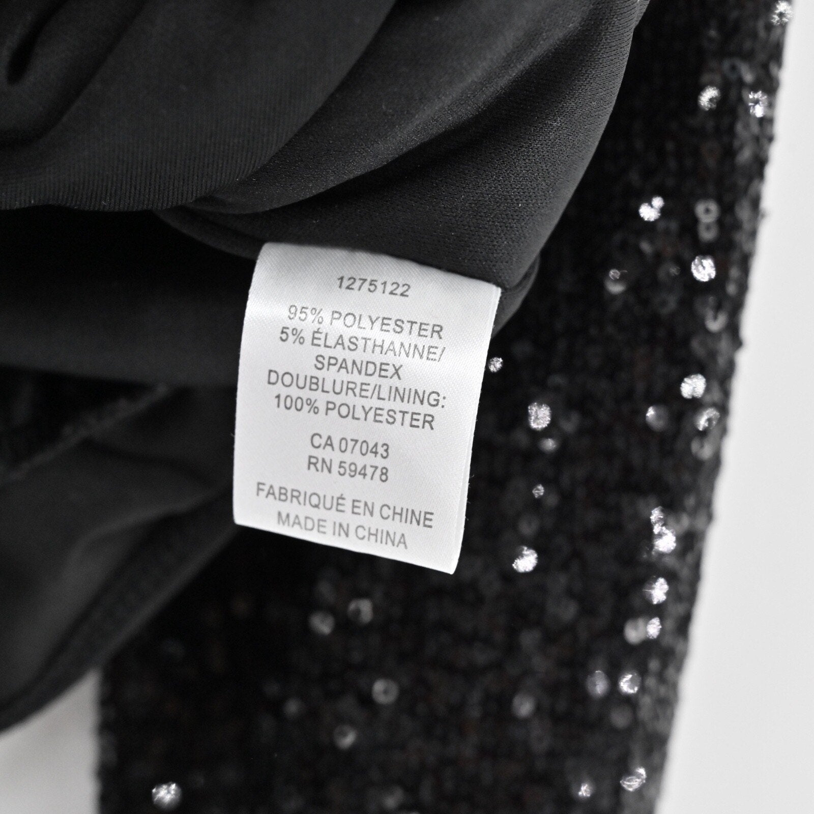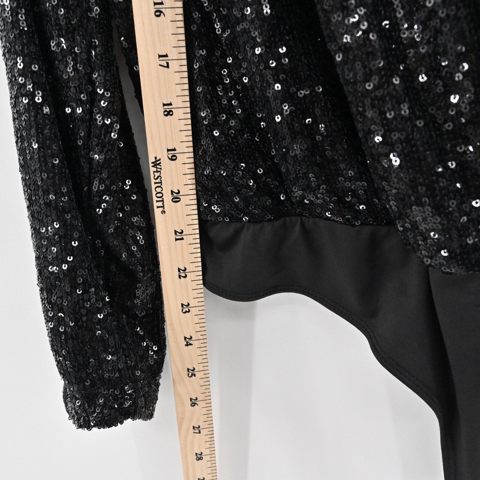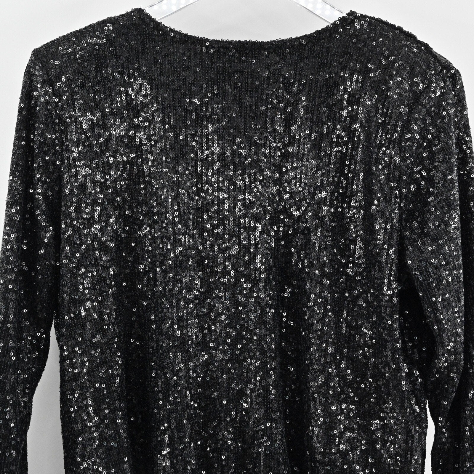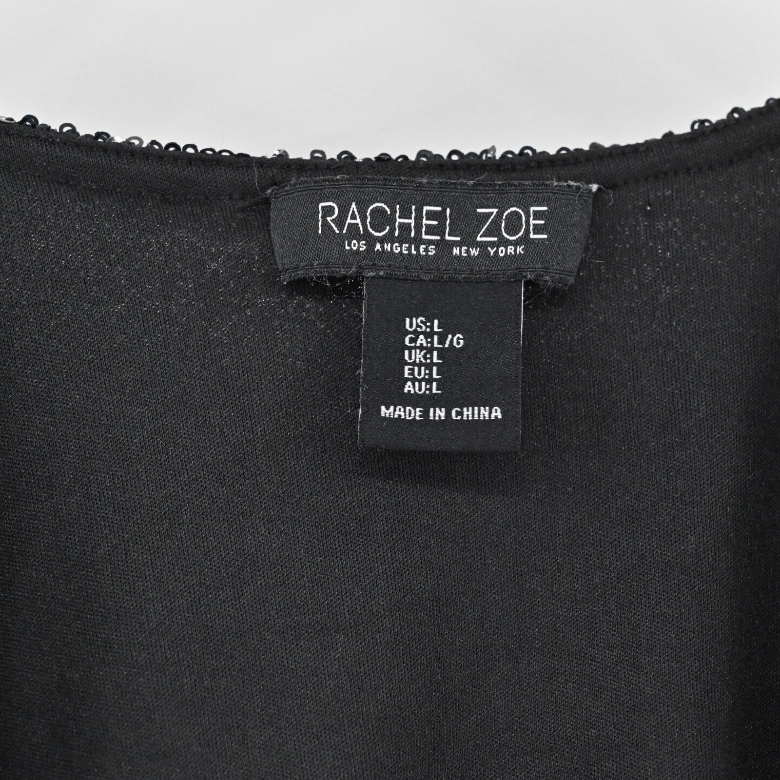 RACHEL ZOE Womens Sequin Bodysuit Size L Black V Neck Long Sleeve Glam Wrap Top