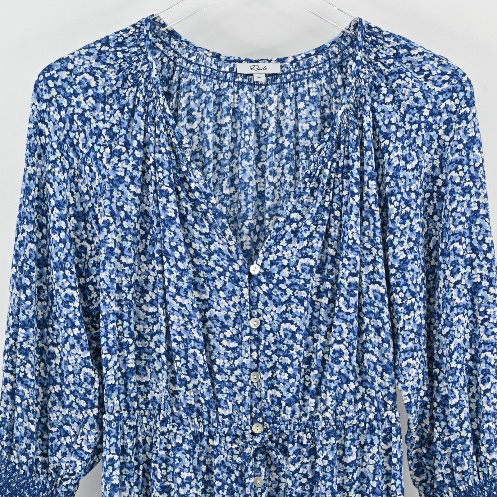 Rails Eliza Drawstring Waist Dress Size M Floral Blue Smocked Boho Chic Romantic