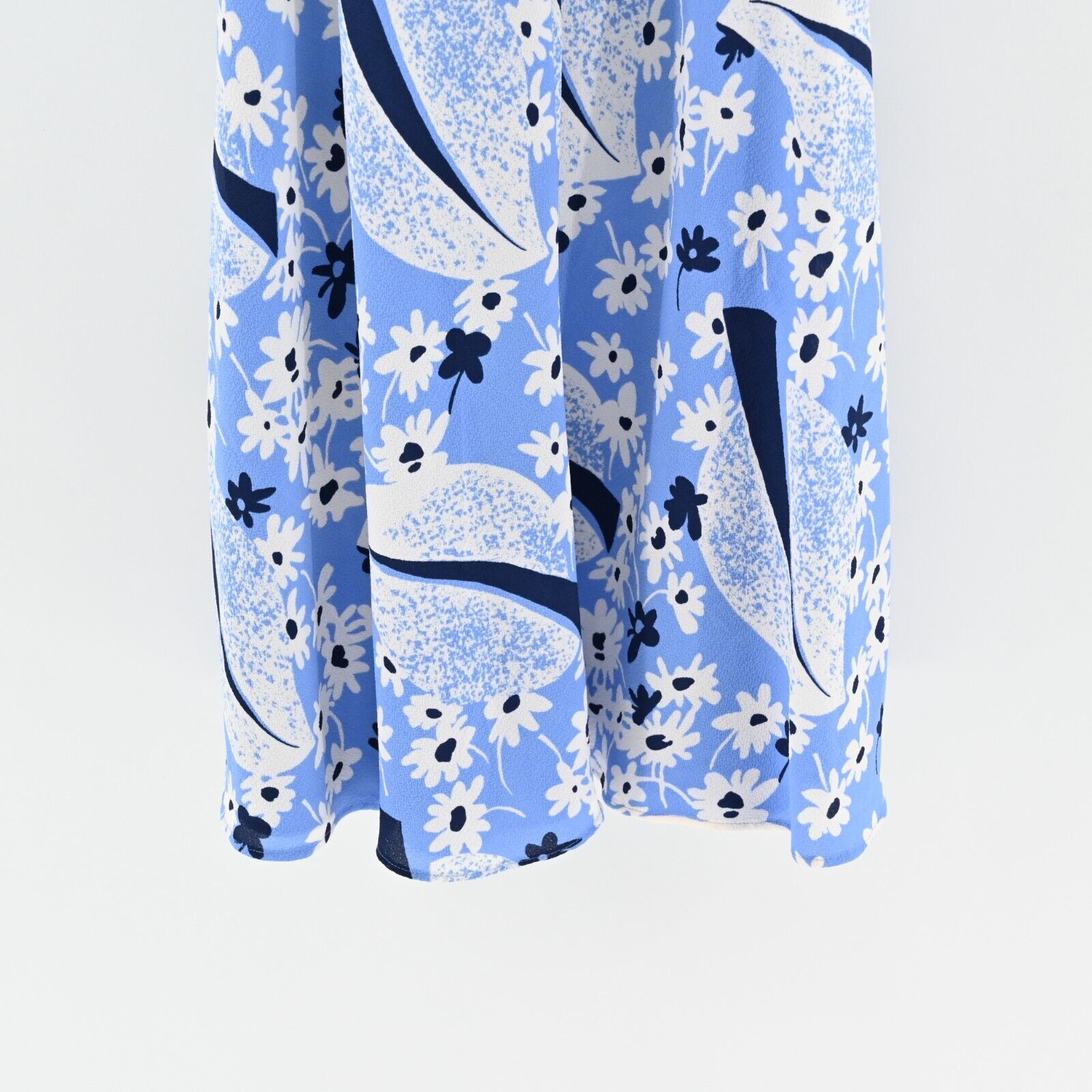 RALPH LAUREN Dress Size 8 Blue Floral Crepe Sleeveless Daisy Belted Summer LRL