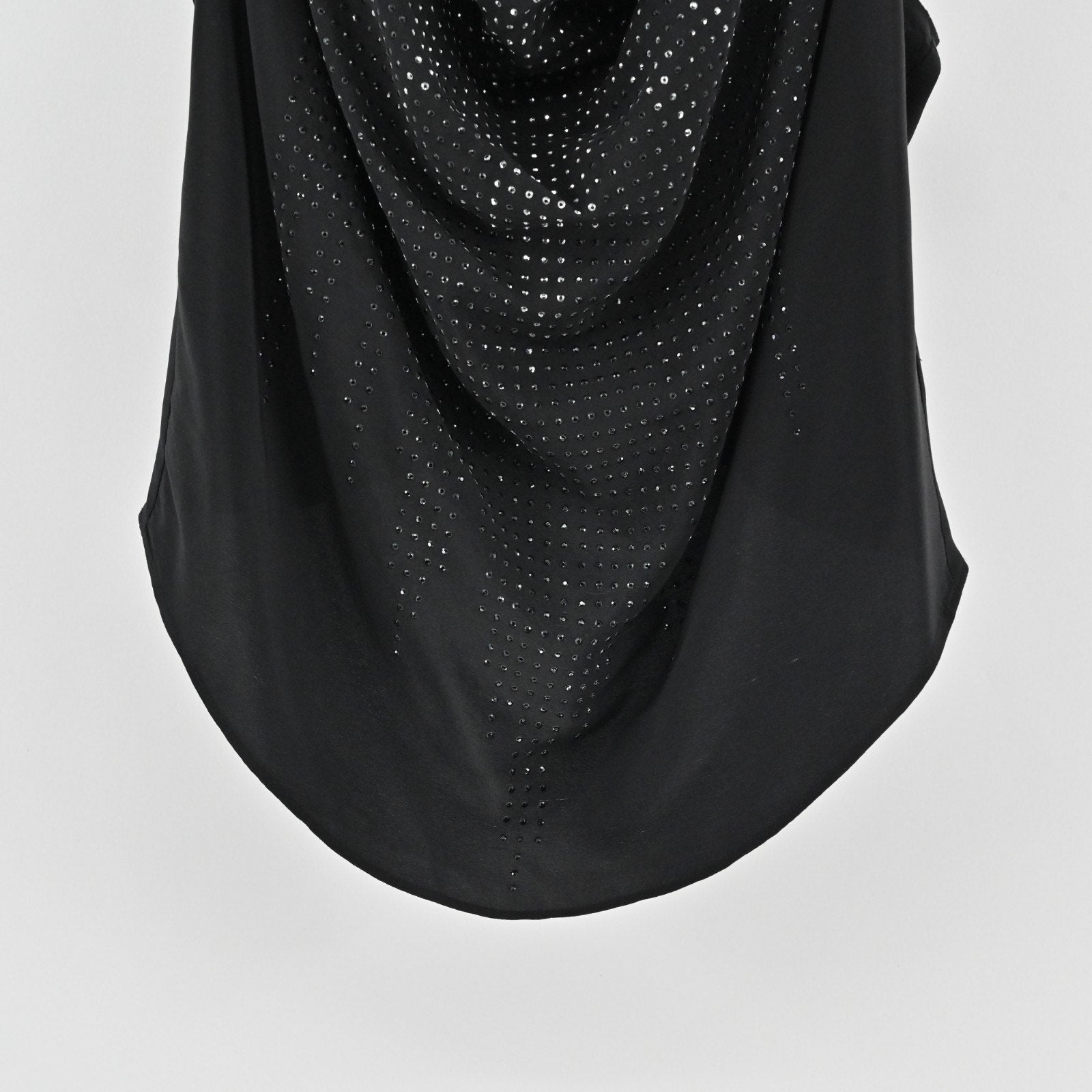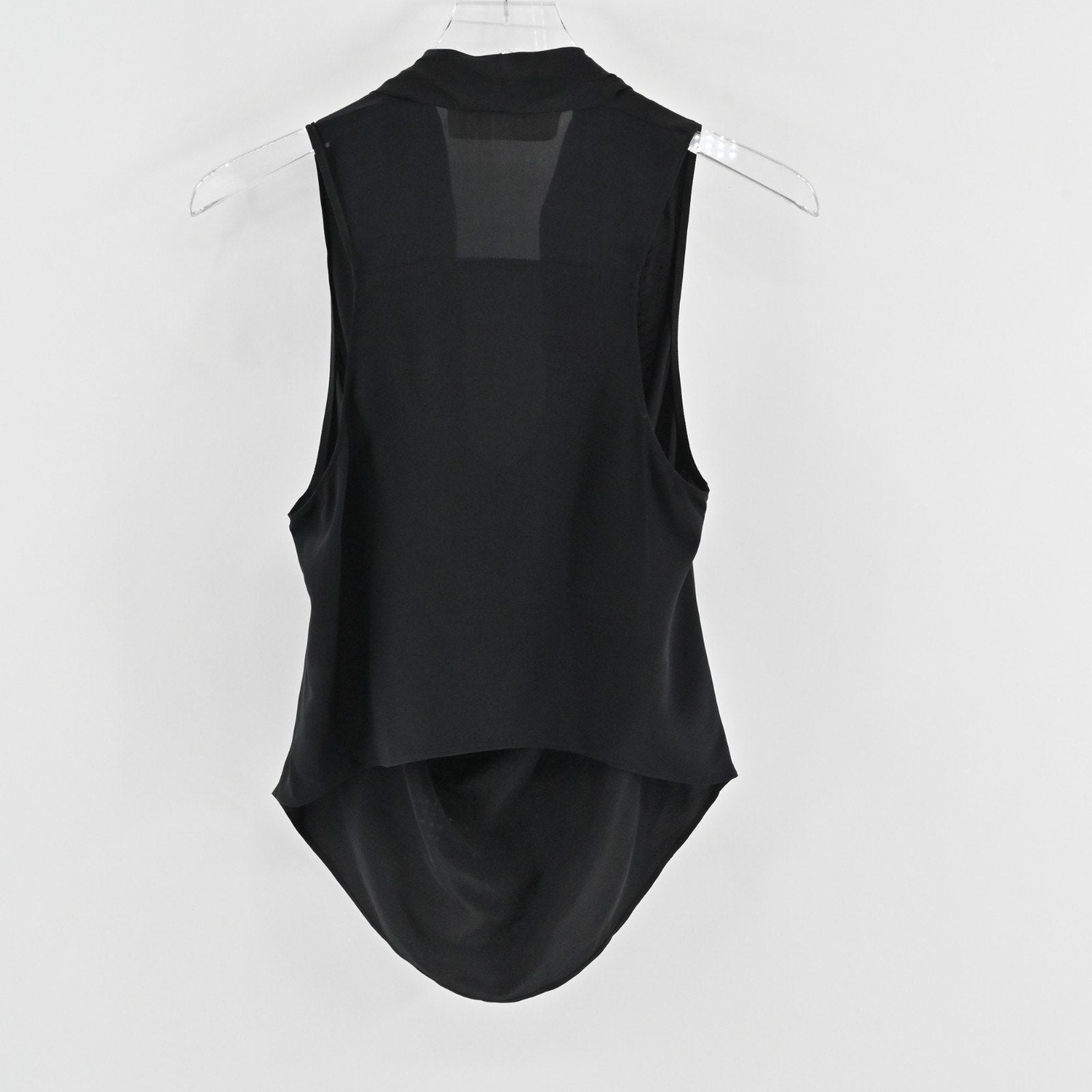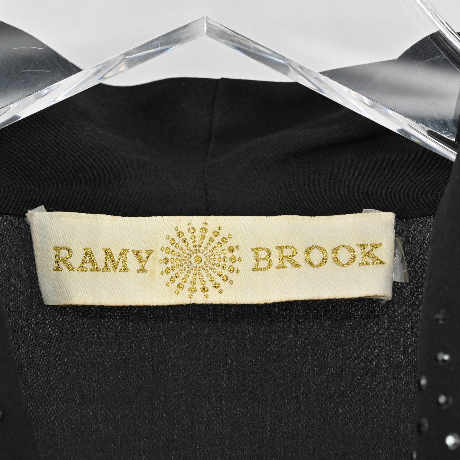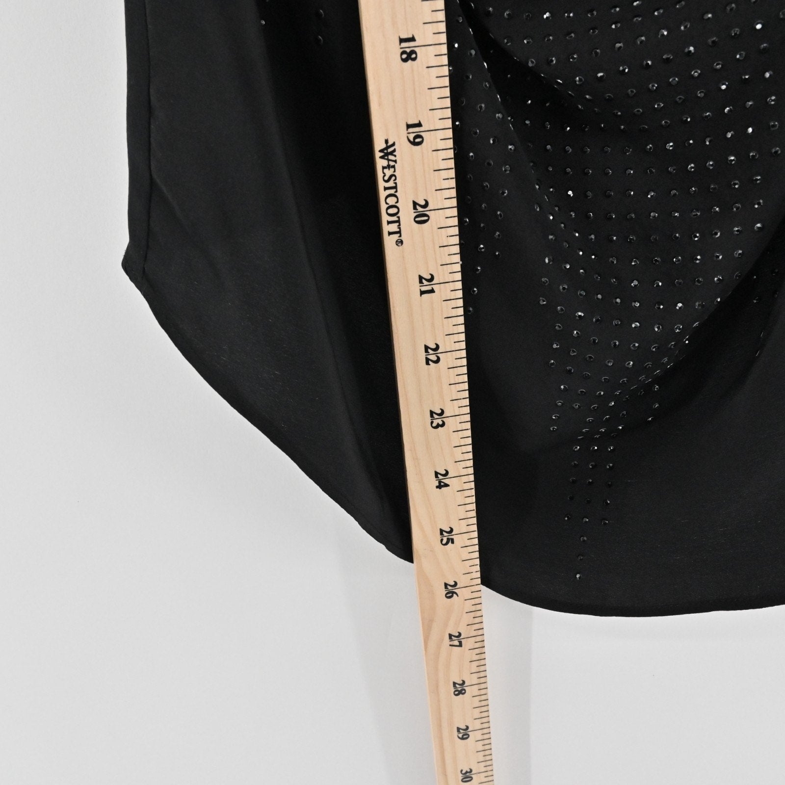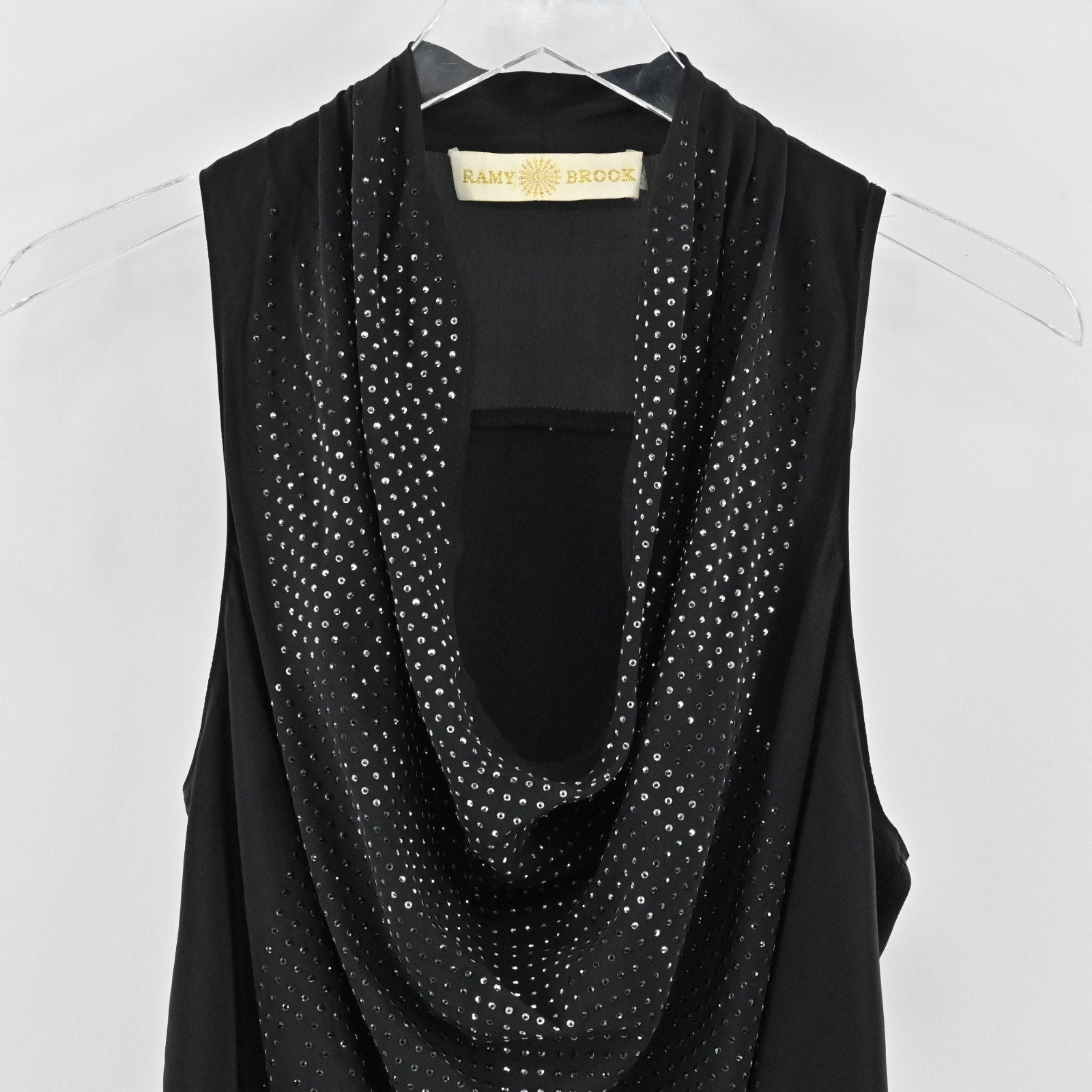 Ramy Brook Womens Debi Silk Tank Top Size L Draped Neck Rhinestone Black Blouse