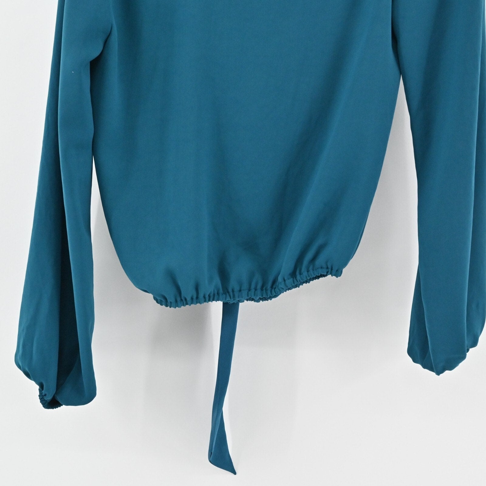 RAMY BROOK Womens Seneca Top Size XS Teal Draped Off Shoulder Neck Tie Blouse
