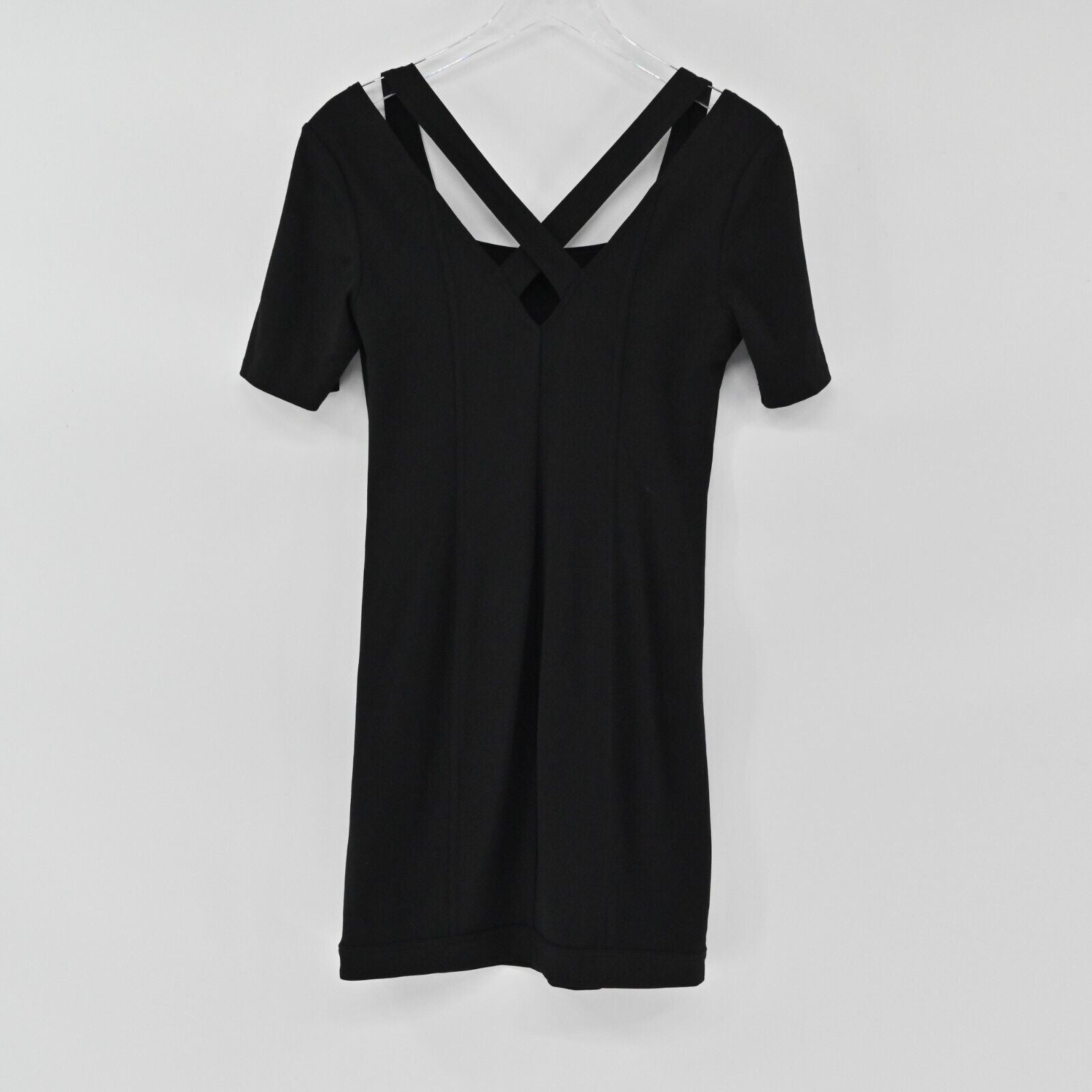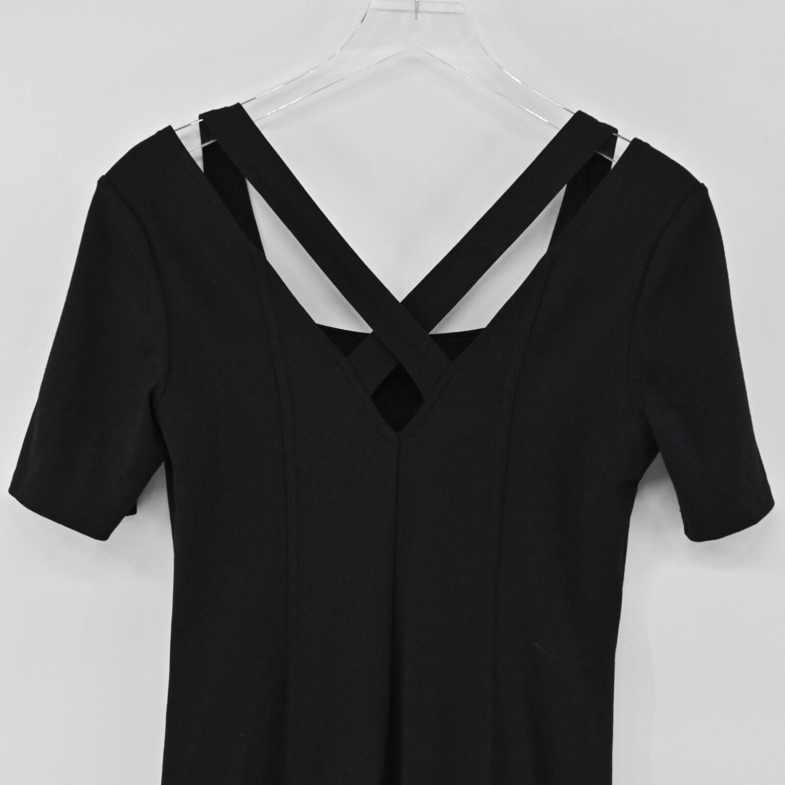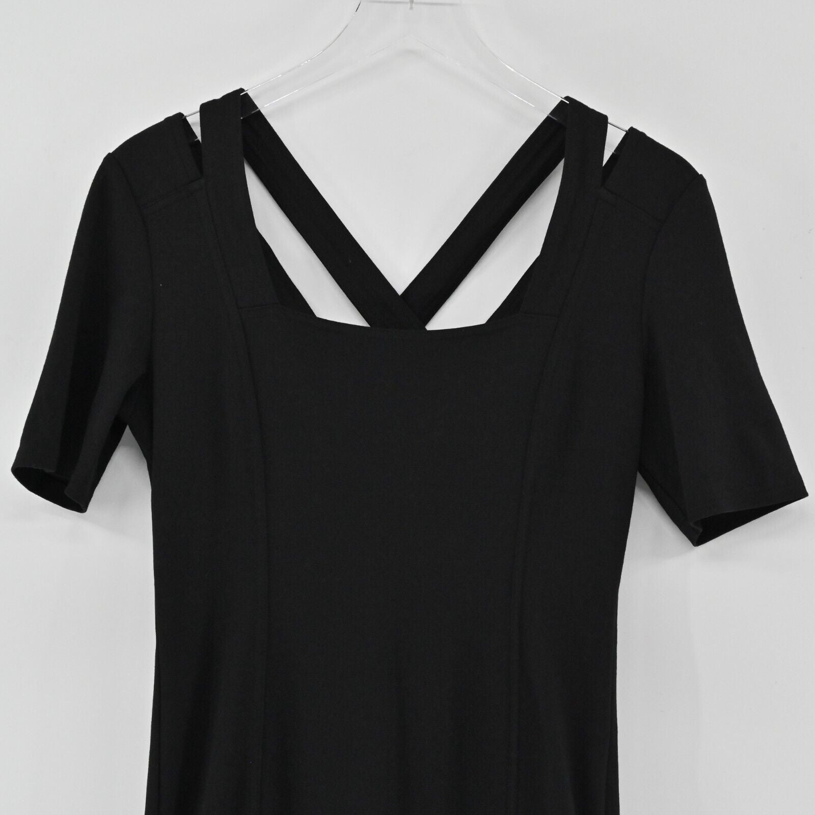 REISS Dress Women's Size Medium Black Starlet Strappy Cross Back Bodycon Short Sleeve Classic Casual Chic Solid Vacation Travel LBD Little Black Dress Stretch Event Vacation Travel