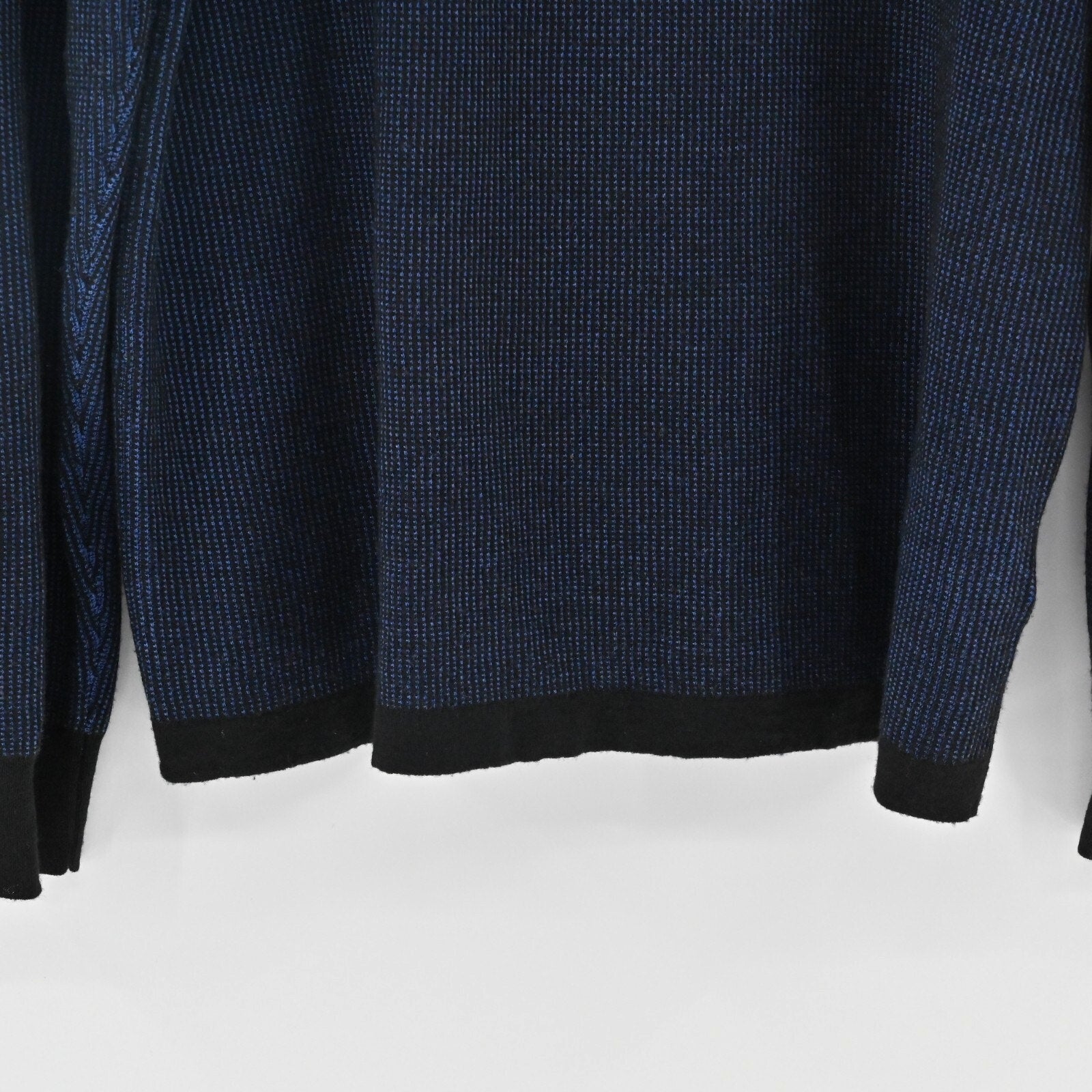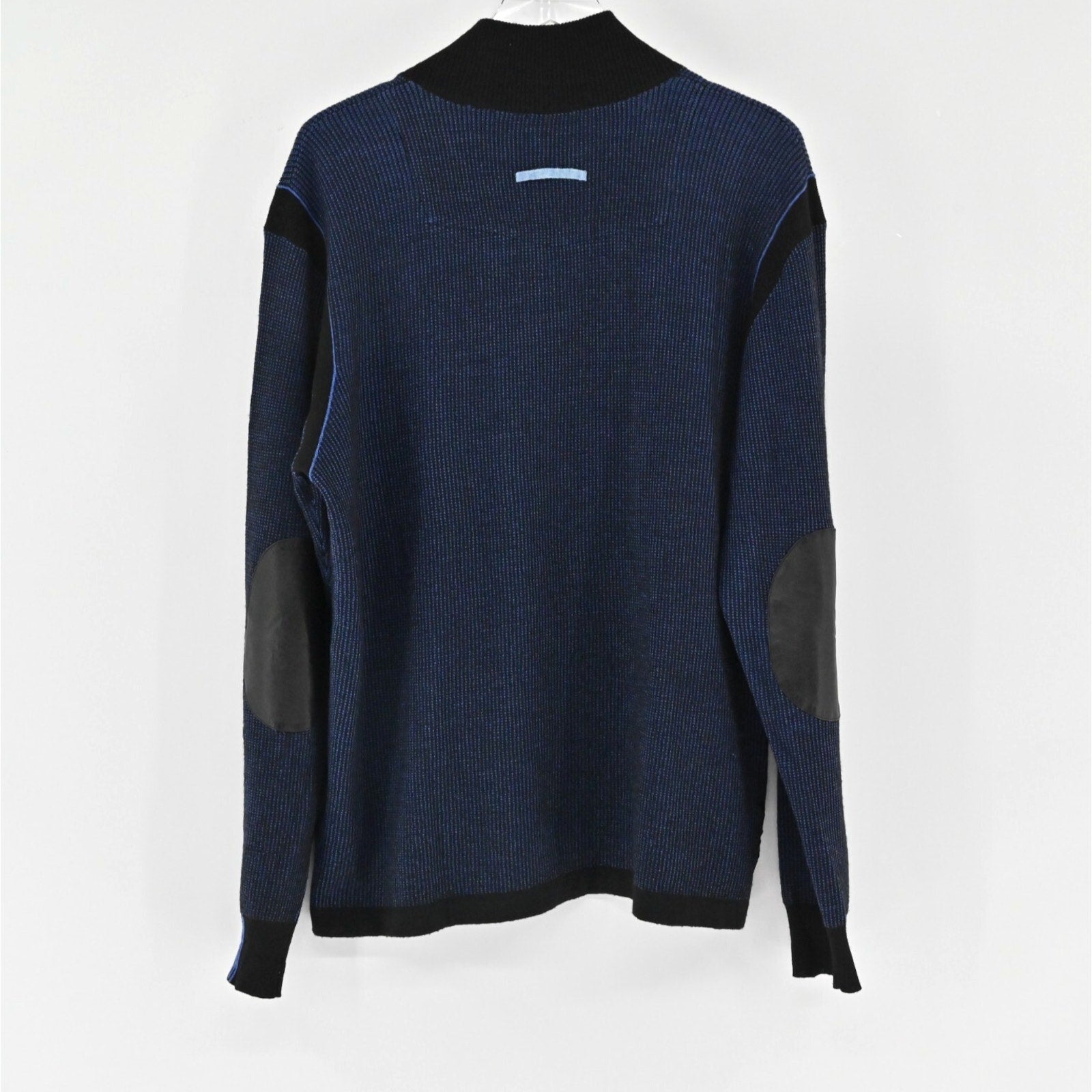 Style Profile: Menswear Streetwear Half Zip Sweater Pullover Casual Textured Knit Long Sleeve Lightweight Comfortable Relaxed Fit Designer Navy Blue Black Trim Modern Layer Fall Winter Versatile Minimalist