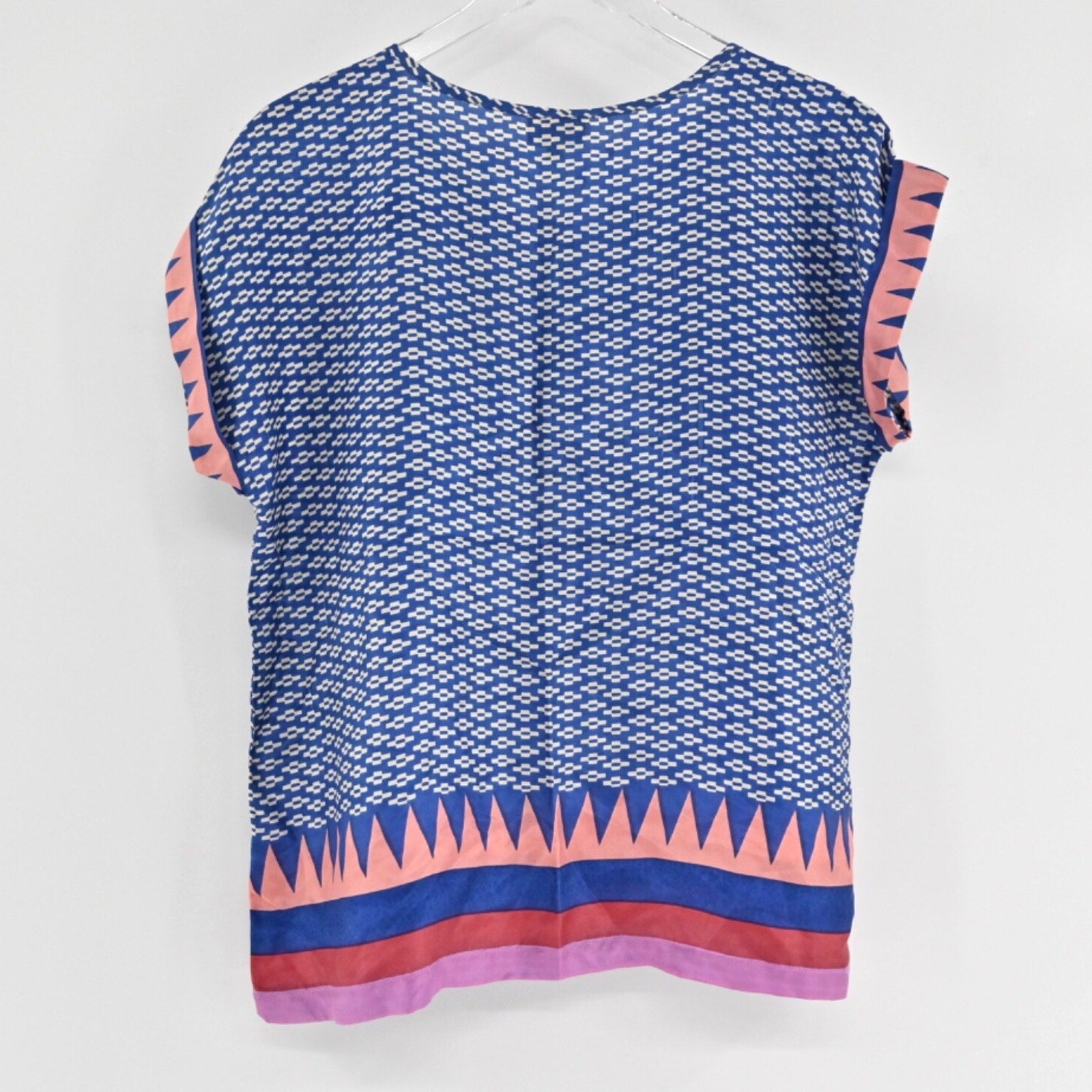 Roberta ROLLER RABBIT Womens Silk Top Size XS/S Blue Geometric Bohemian Boho