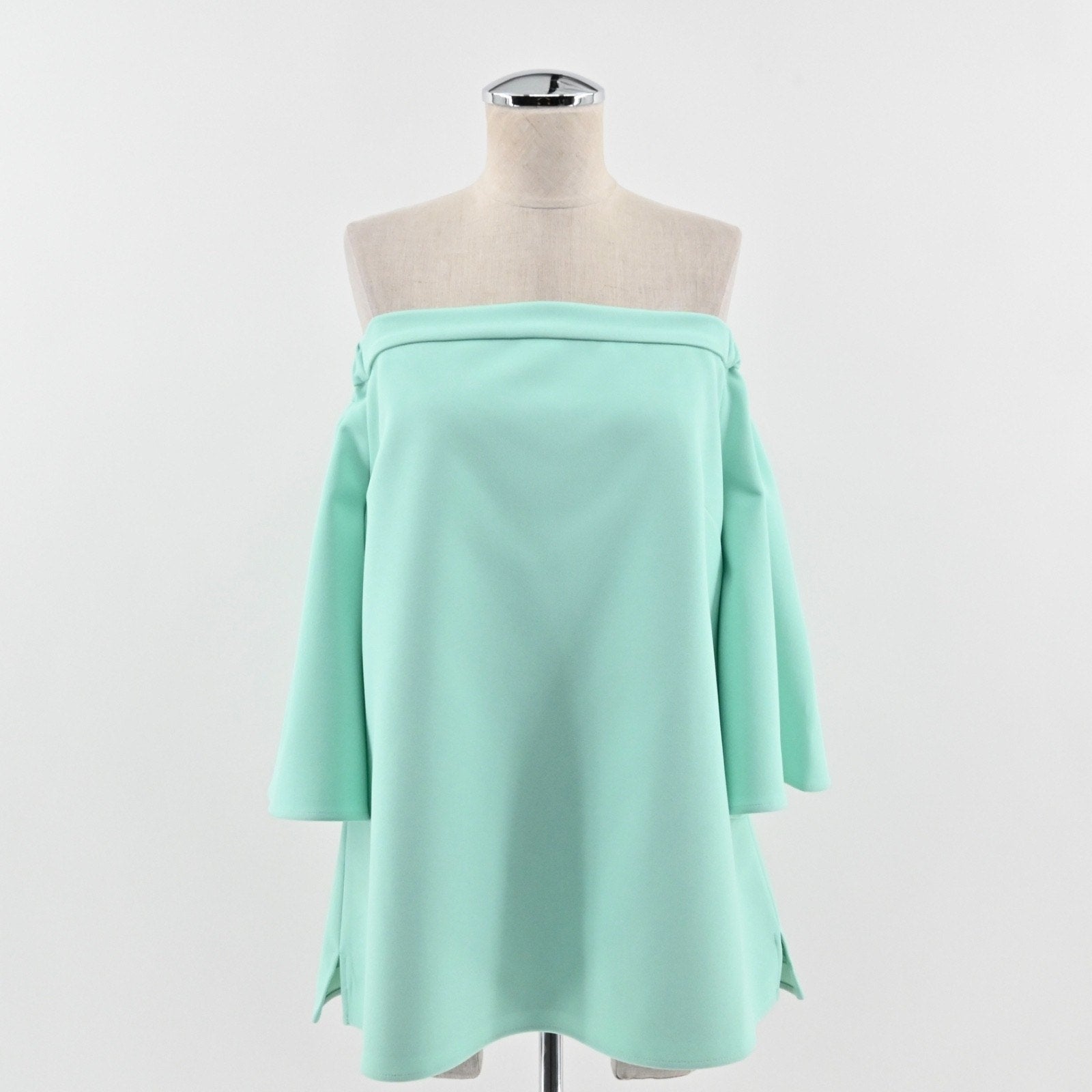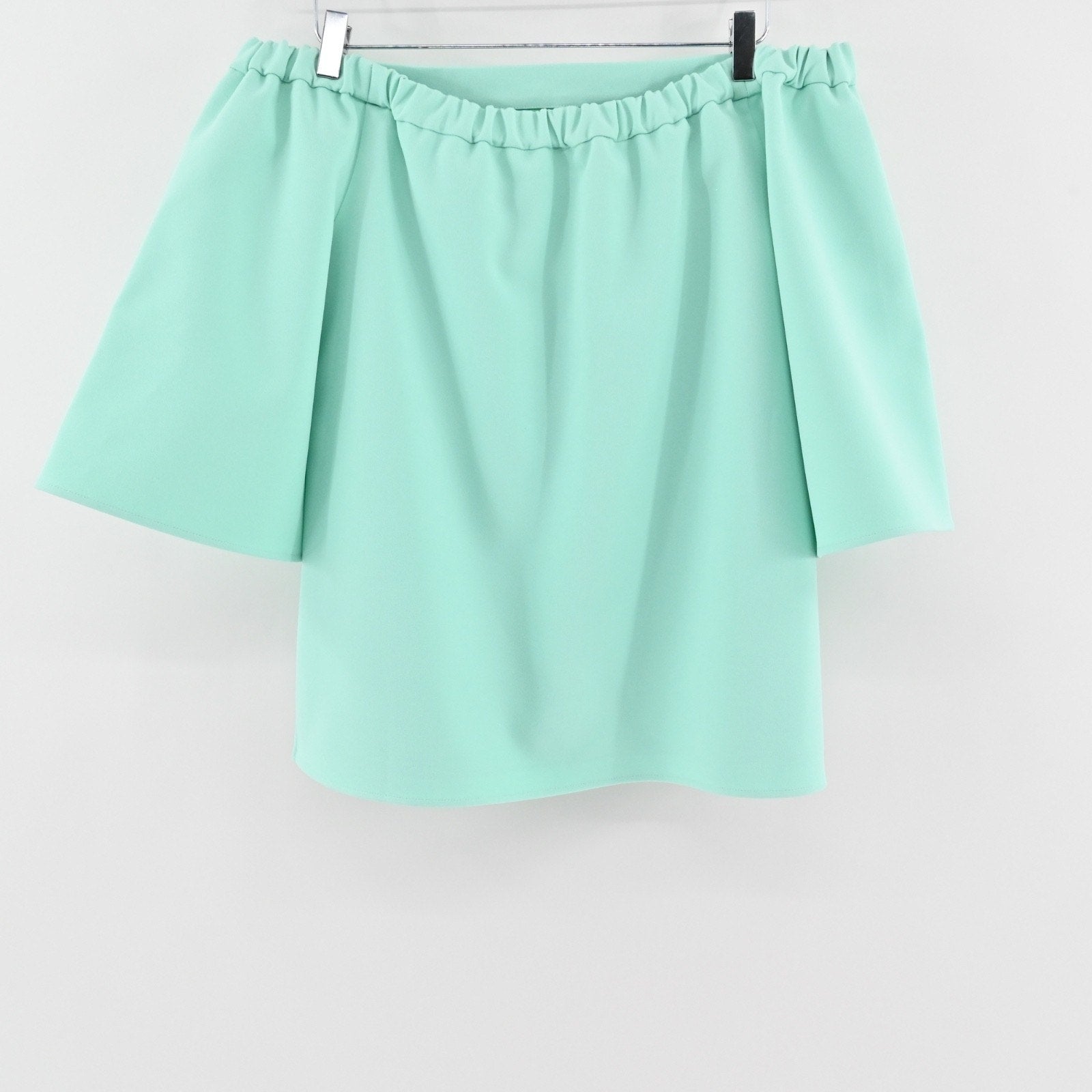 Sail To Sable Womens Off The Shoulder Bell Sleeve Top Sz L Mint Green Retro Boho