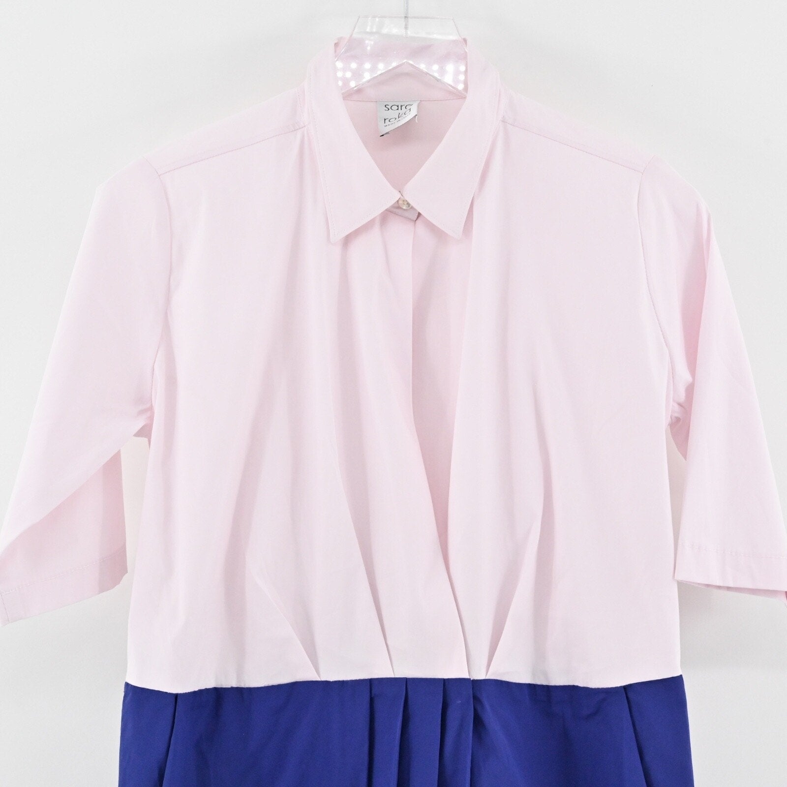 SARA ROKA Shirt Sheath Dress Size 44 Pink Colorblock Half Sleeve Retro 80s Italy