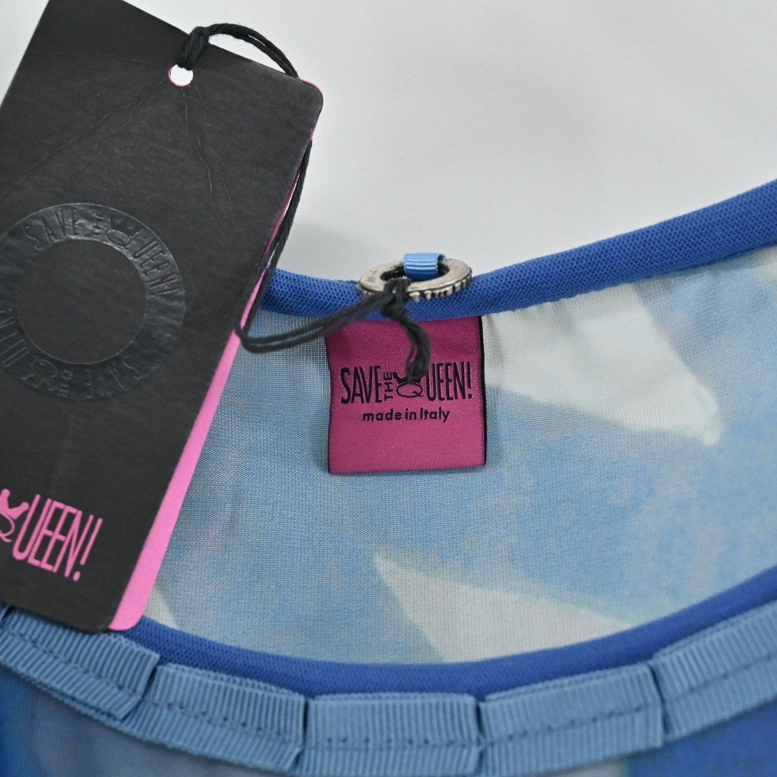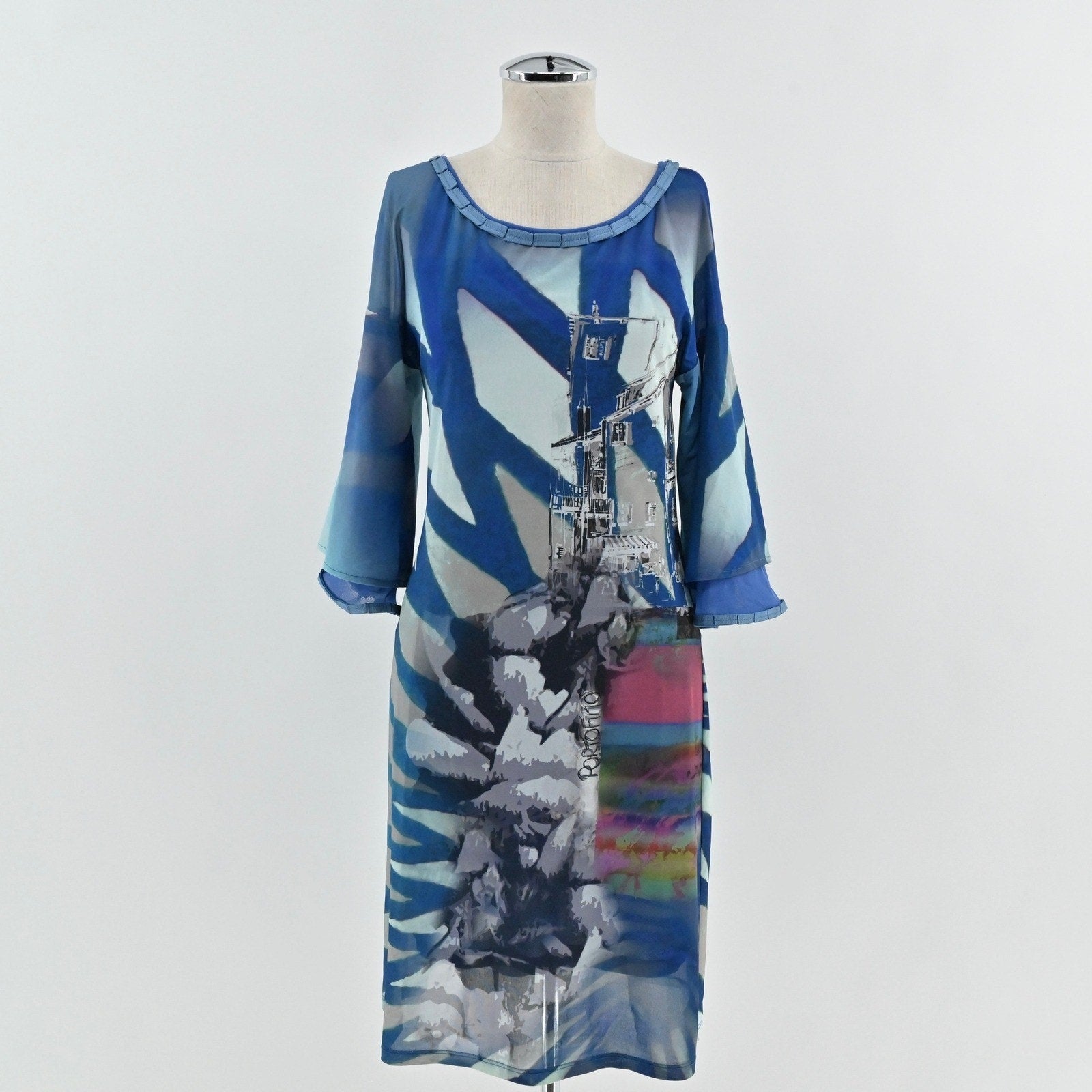 Save The Queen Dress Size M Italy Blue Artsy Eclectic Art To Wear Graphic Print