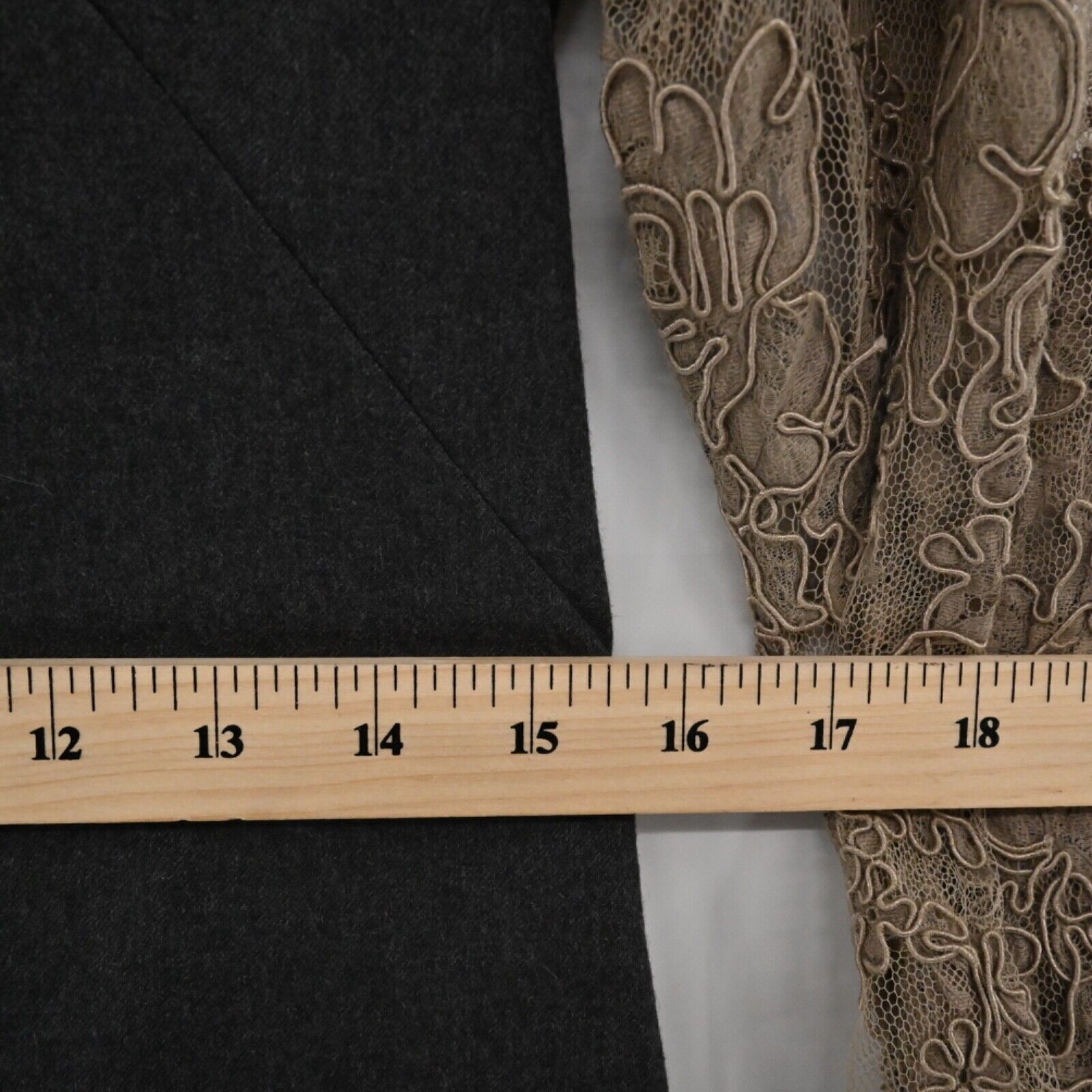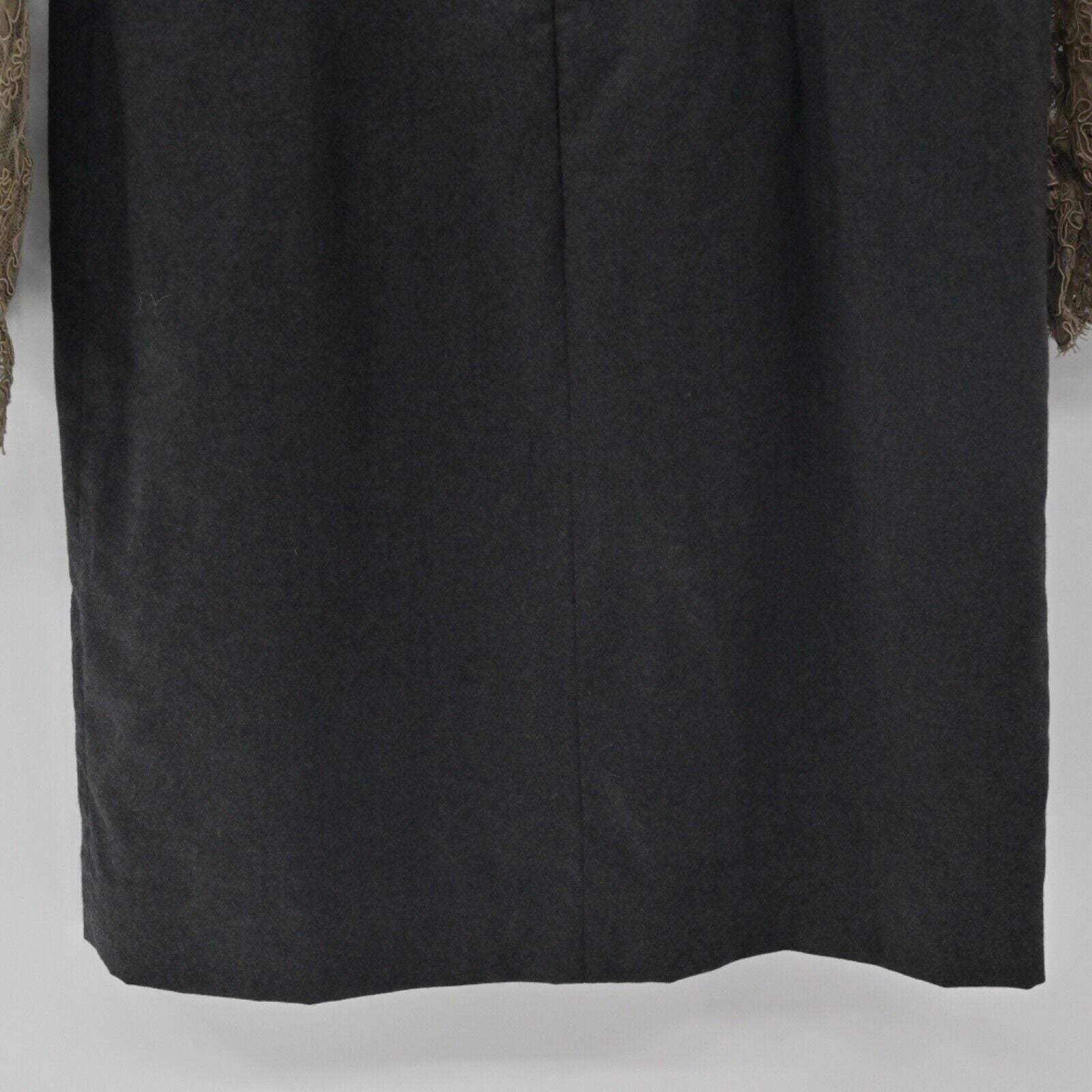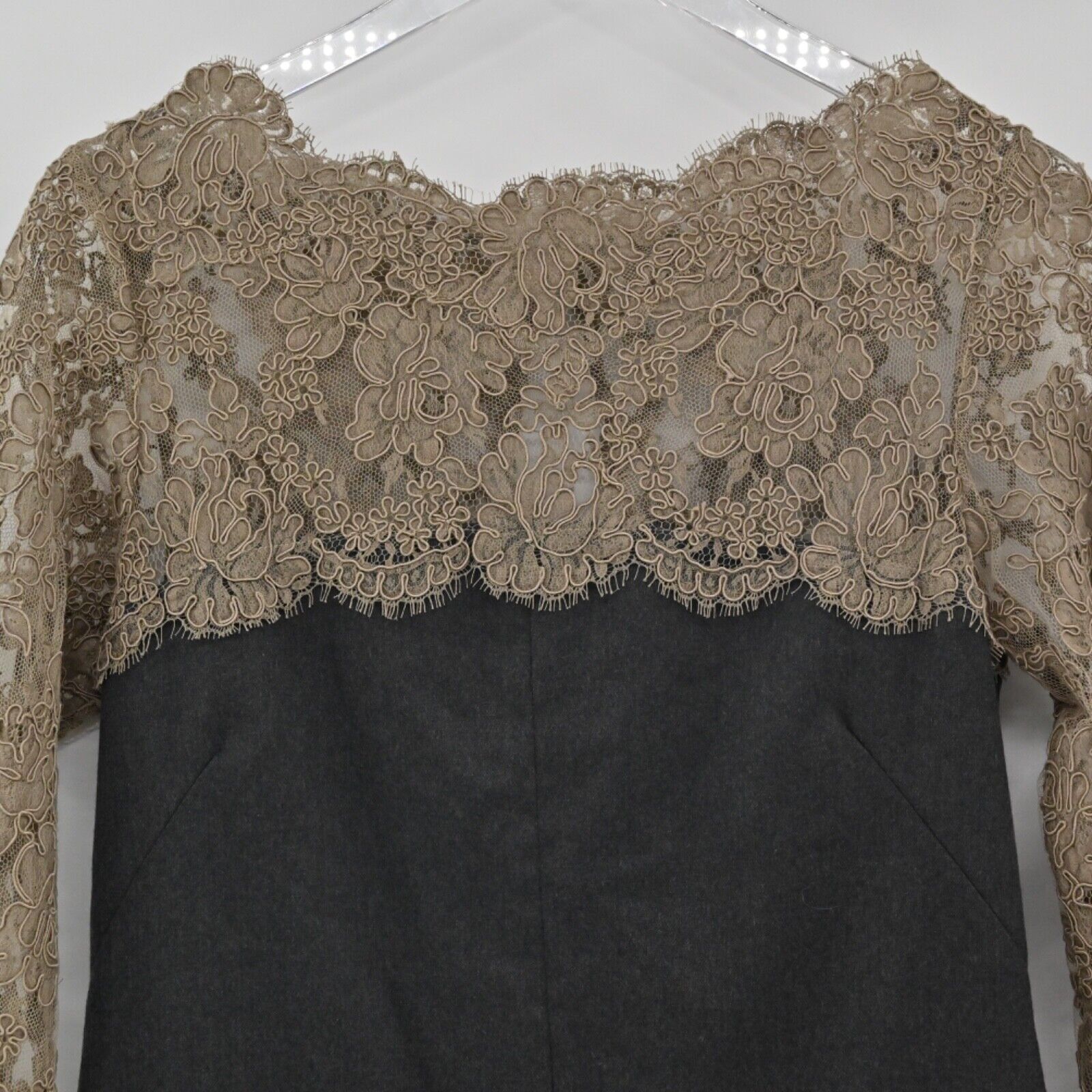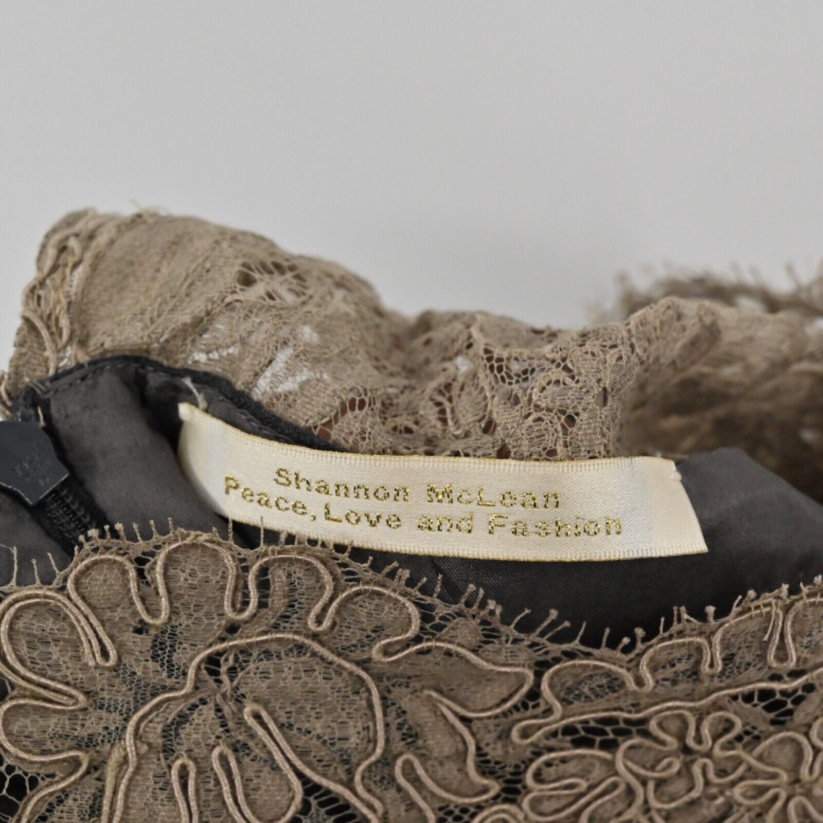 SHANNON MCLEAN Dress Women's Size Small Charcoal Black With Taupe Brown Embroidered Floral Sheer Lace Boat Neck Long Bell Sleeves Sheath Concealed Zipper Keyhole Hook & Eye Closure Lined Retro Victorian Cocktail Party Wedding