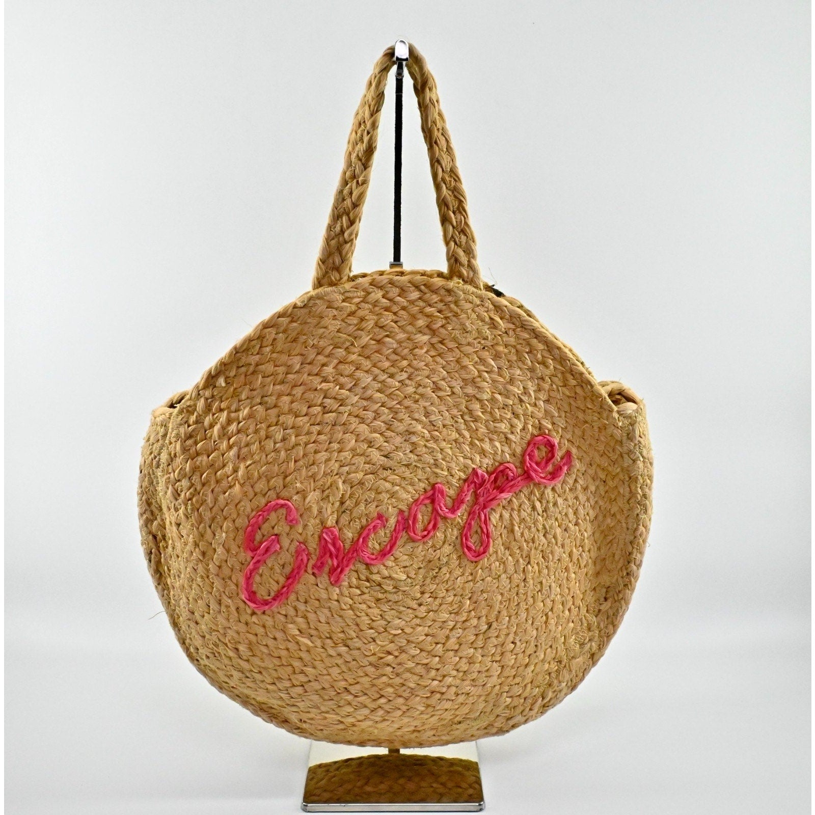 Shiraleah Natural Woven Jute Bag Pink Escape Vacation Beach Casual Circle Tote