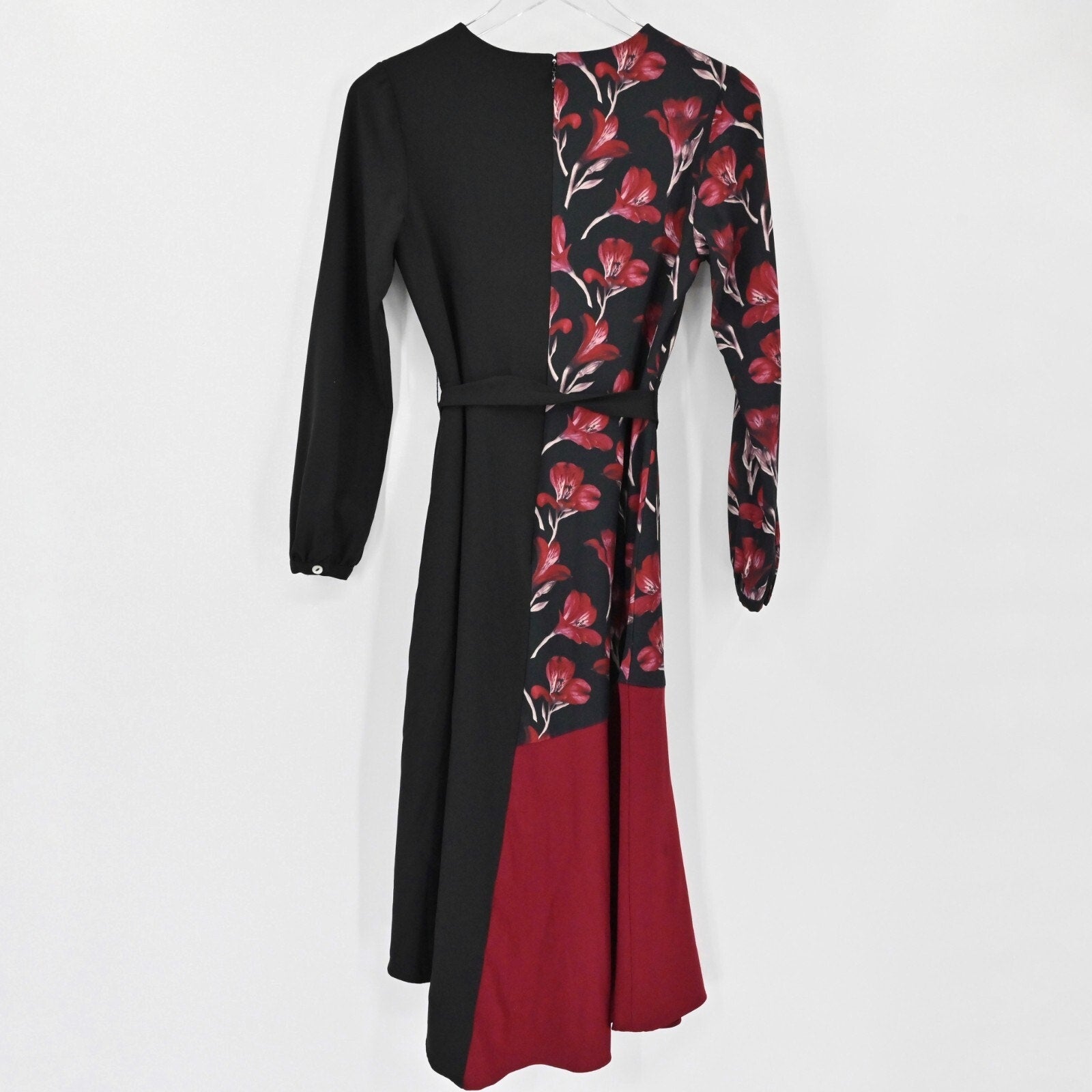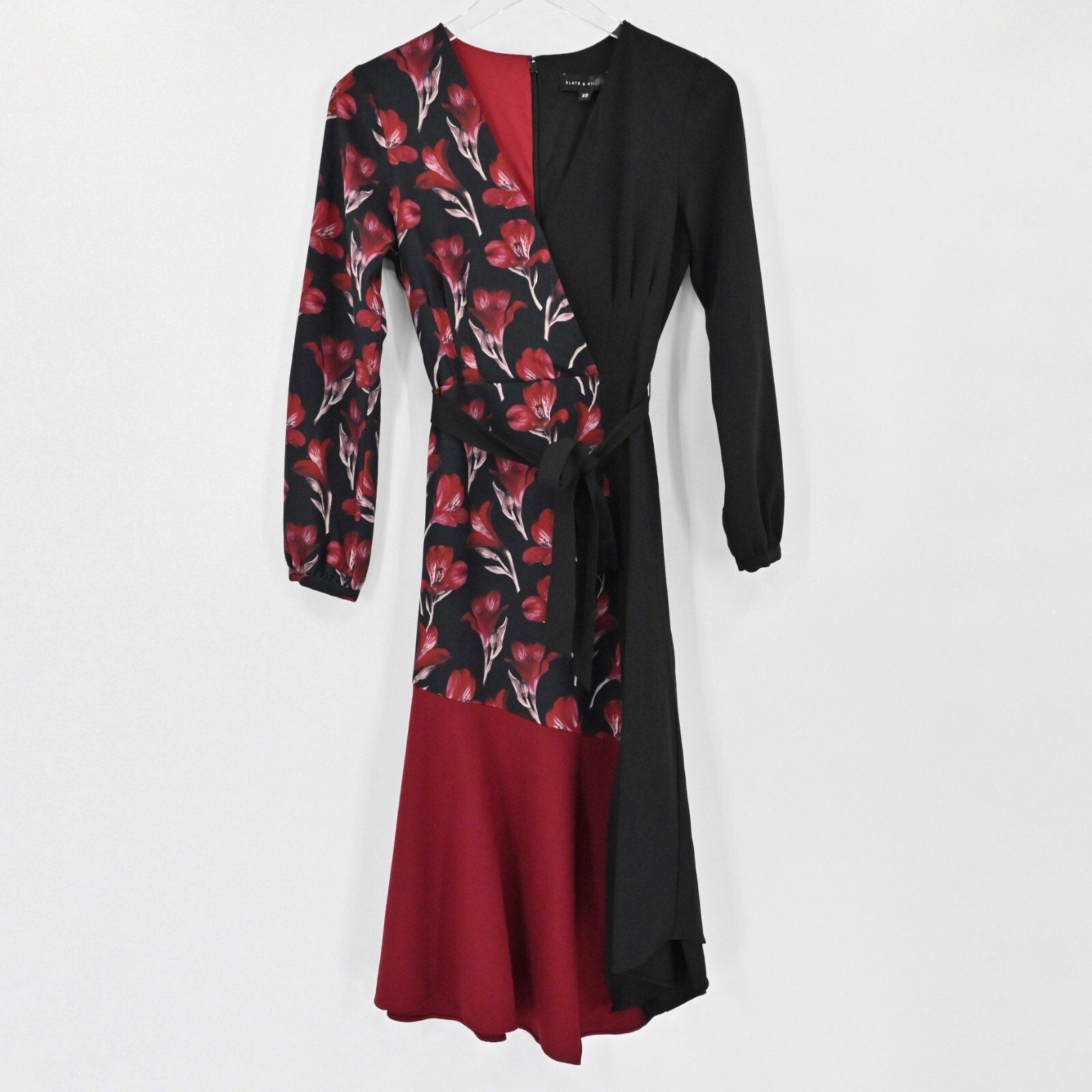 Style Profile: Romantic Floral Print Wrap Dress Elegant Feminine Date Night Wedding Guest Cocktail Fall Winter Long Sleeve Waist Tie Flowy Hem Midi Length Black Burgundy Red Special Occasion Sophisticated Statement Piece Classic Contemporary Chic Holiday Dinner Party Stylish Modest Figure Flattering Asymmetrical Hem Bold Timeless