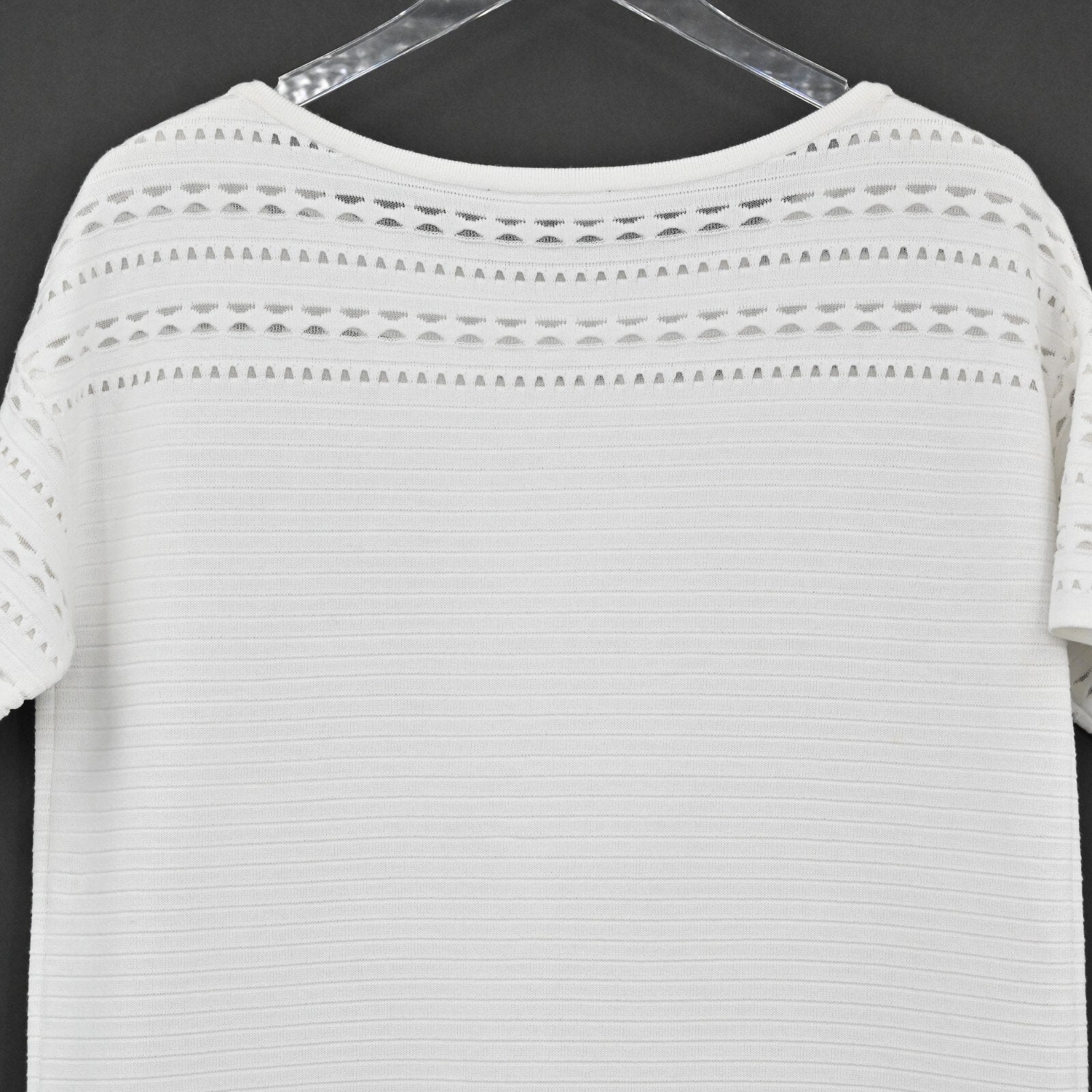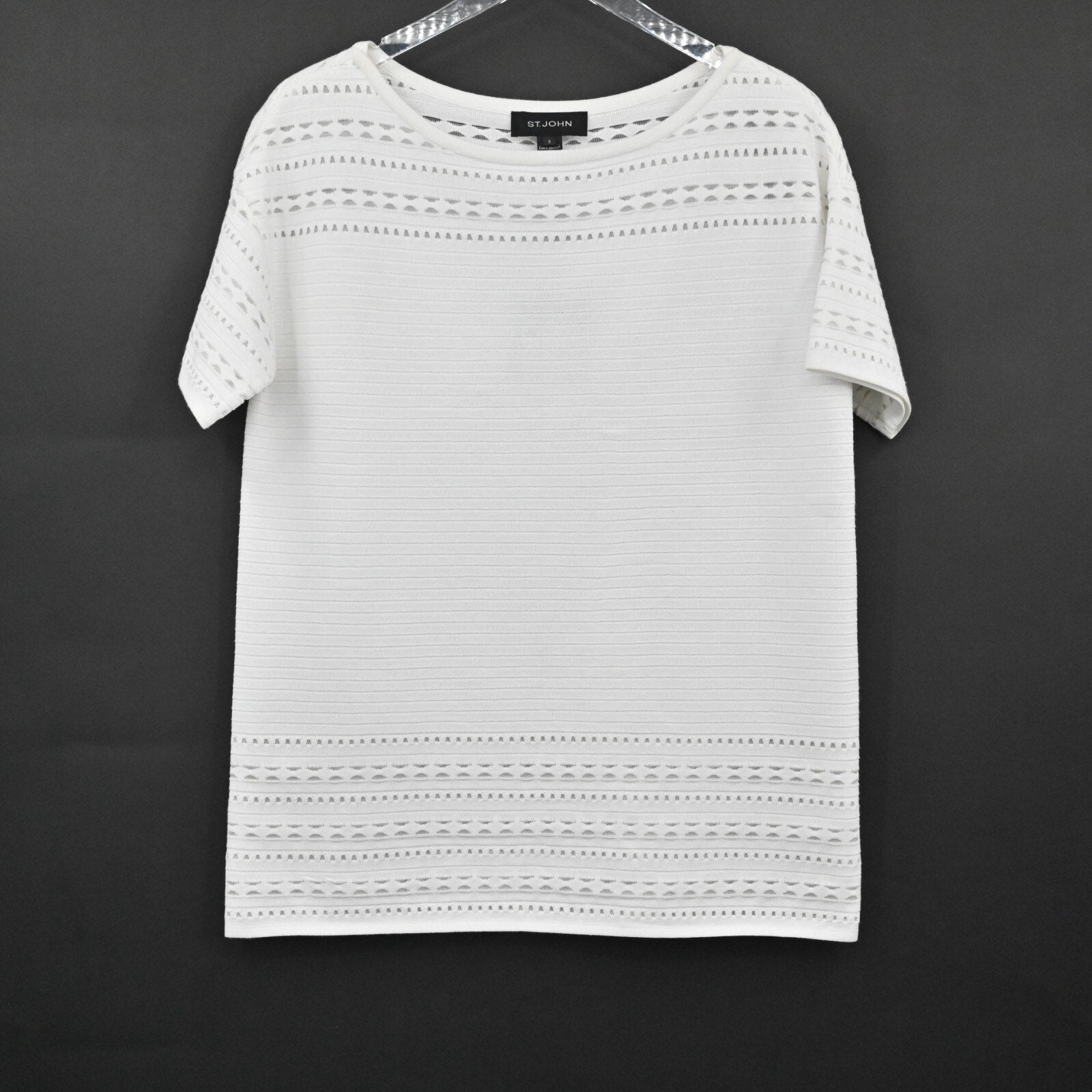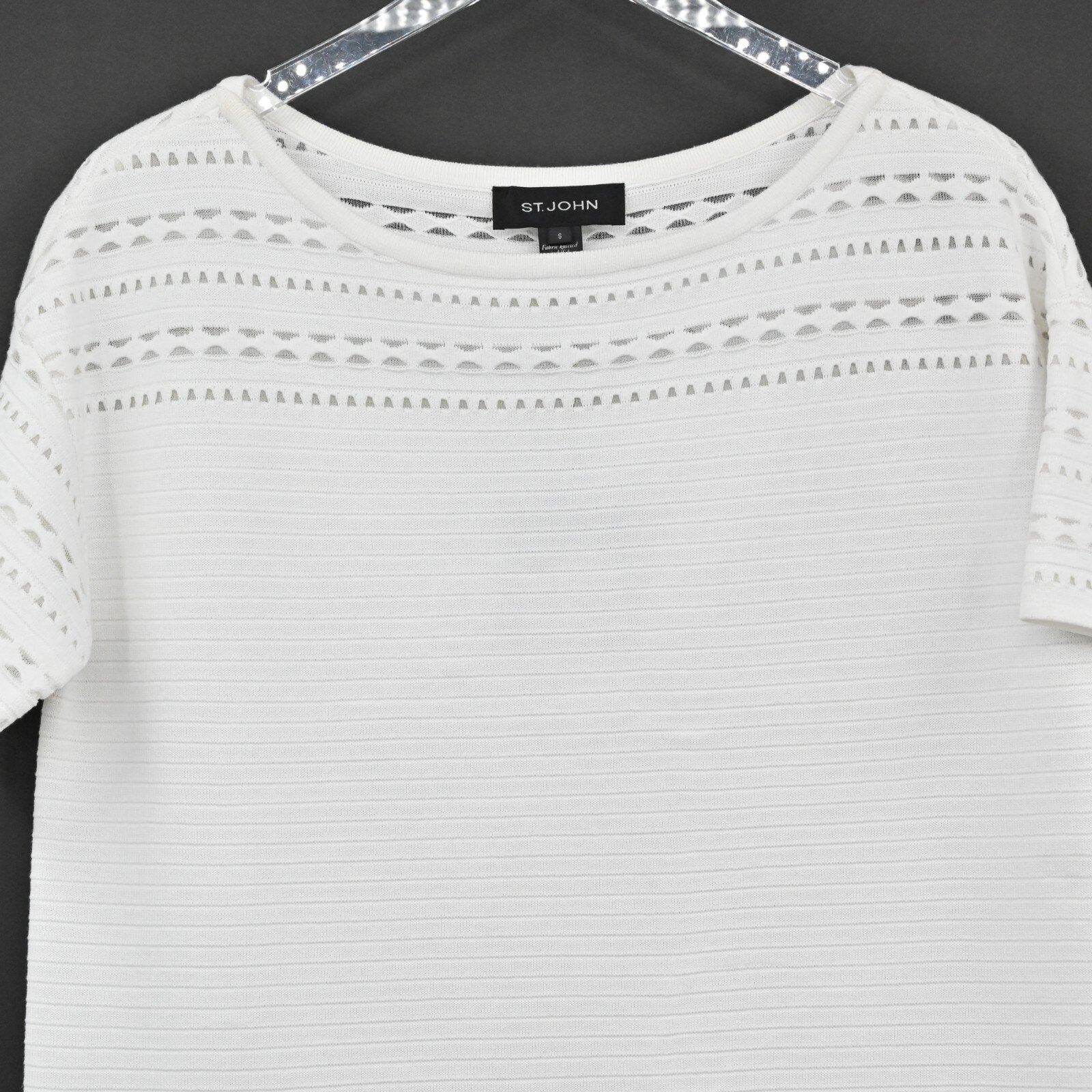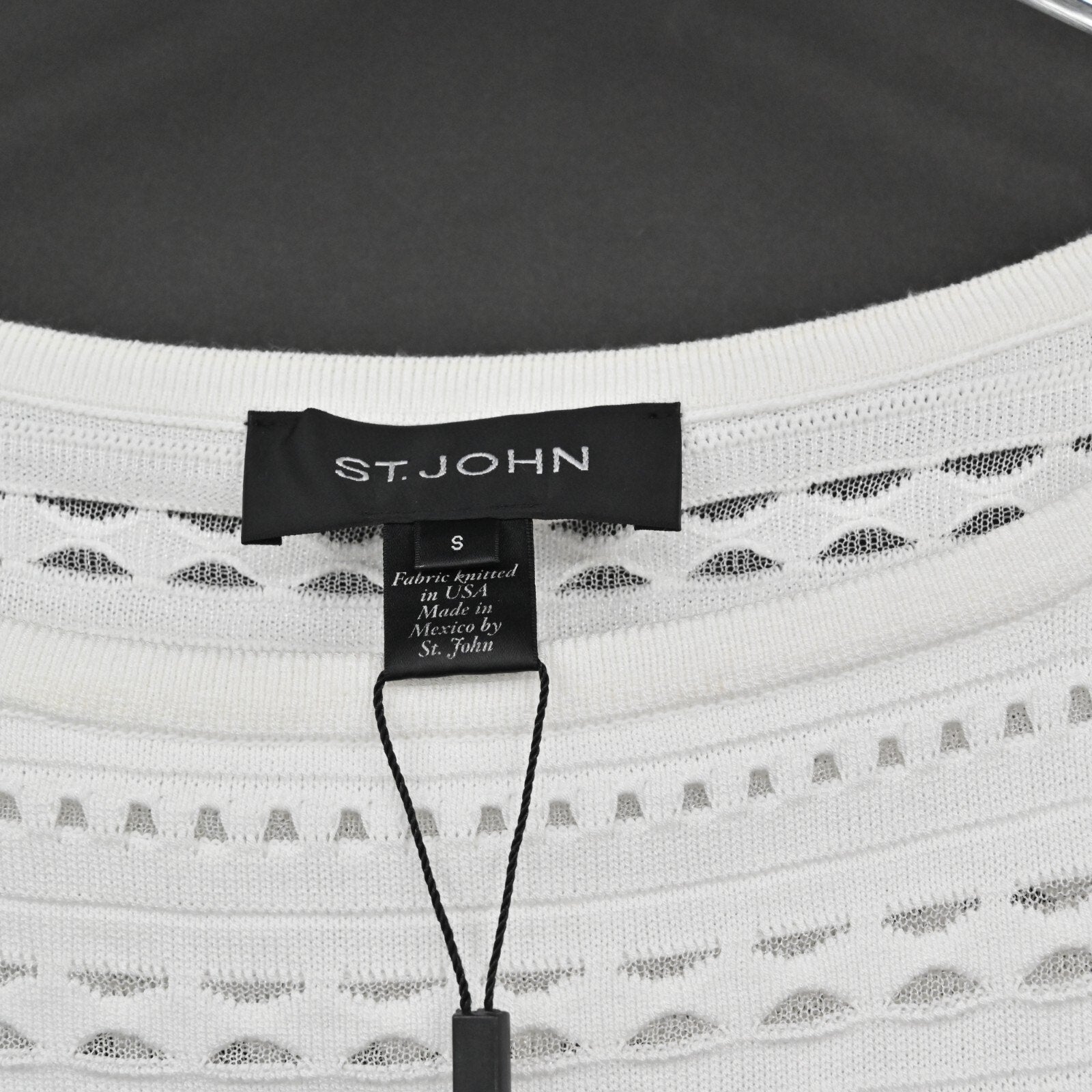ST JOHN Santana Knit Bianco Top Womens Size S White Cutout Quiet Luxury NEW