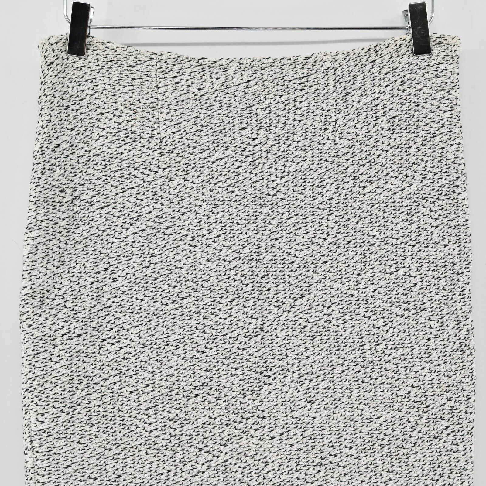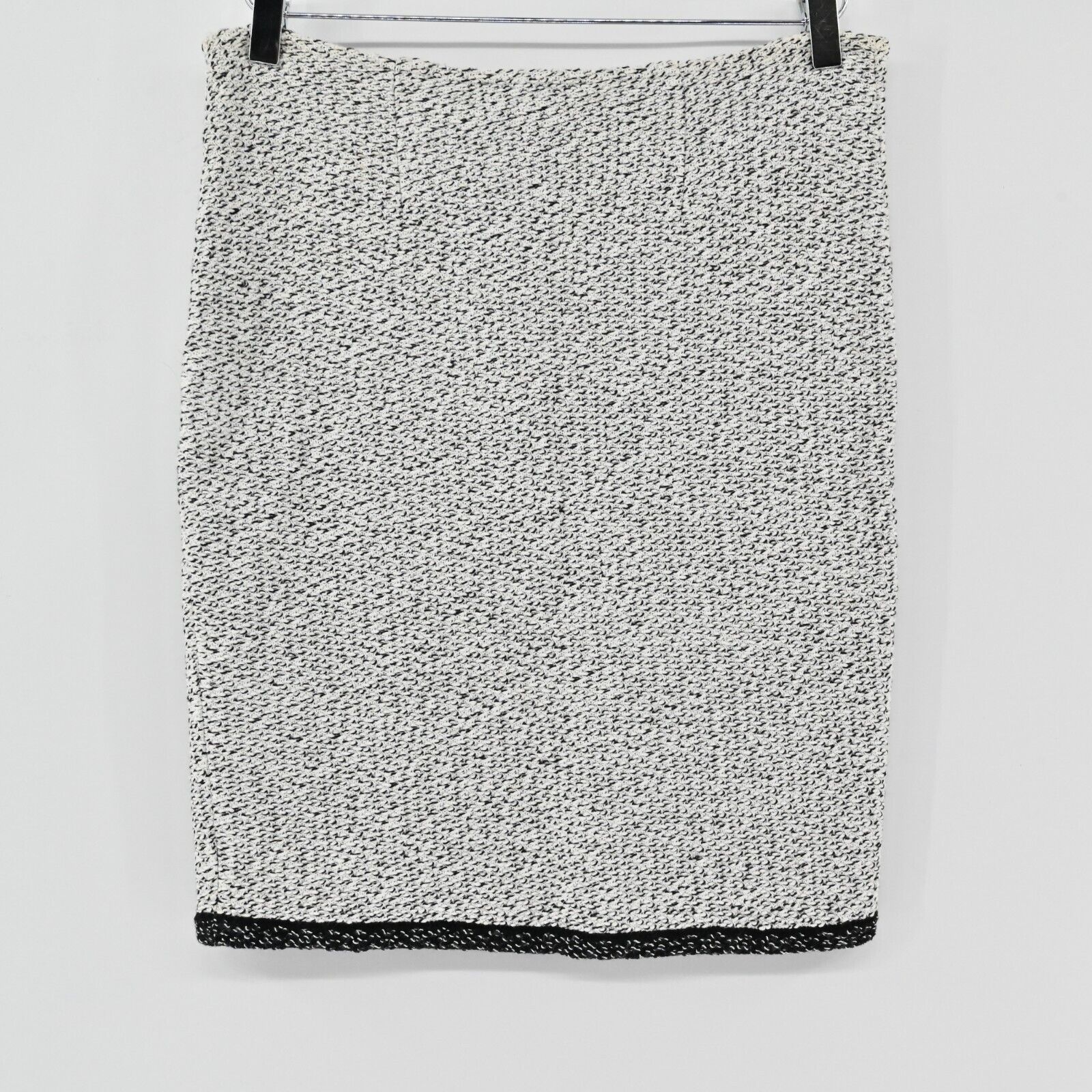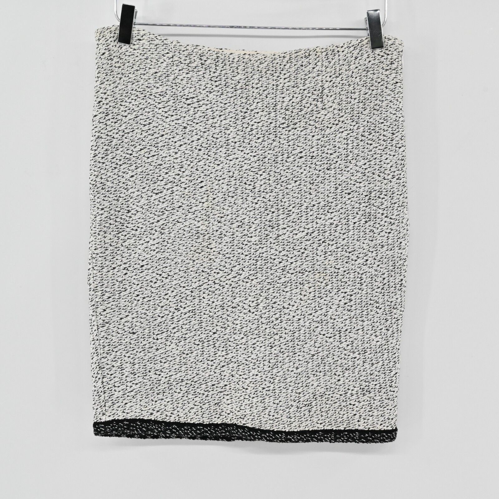 ST JOHN Skirt Sz 8 Wool White Black Contrast Trim Speckled Knit Pencil Capsule