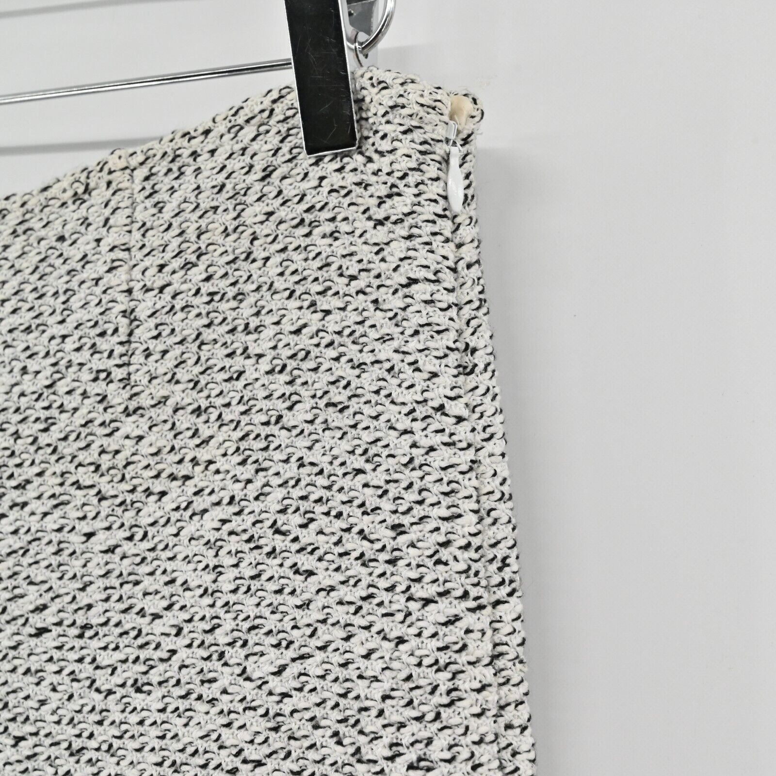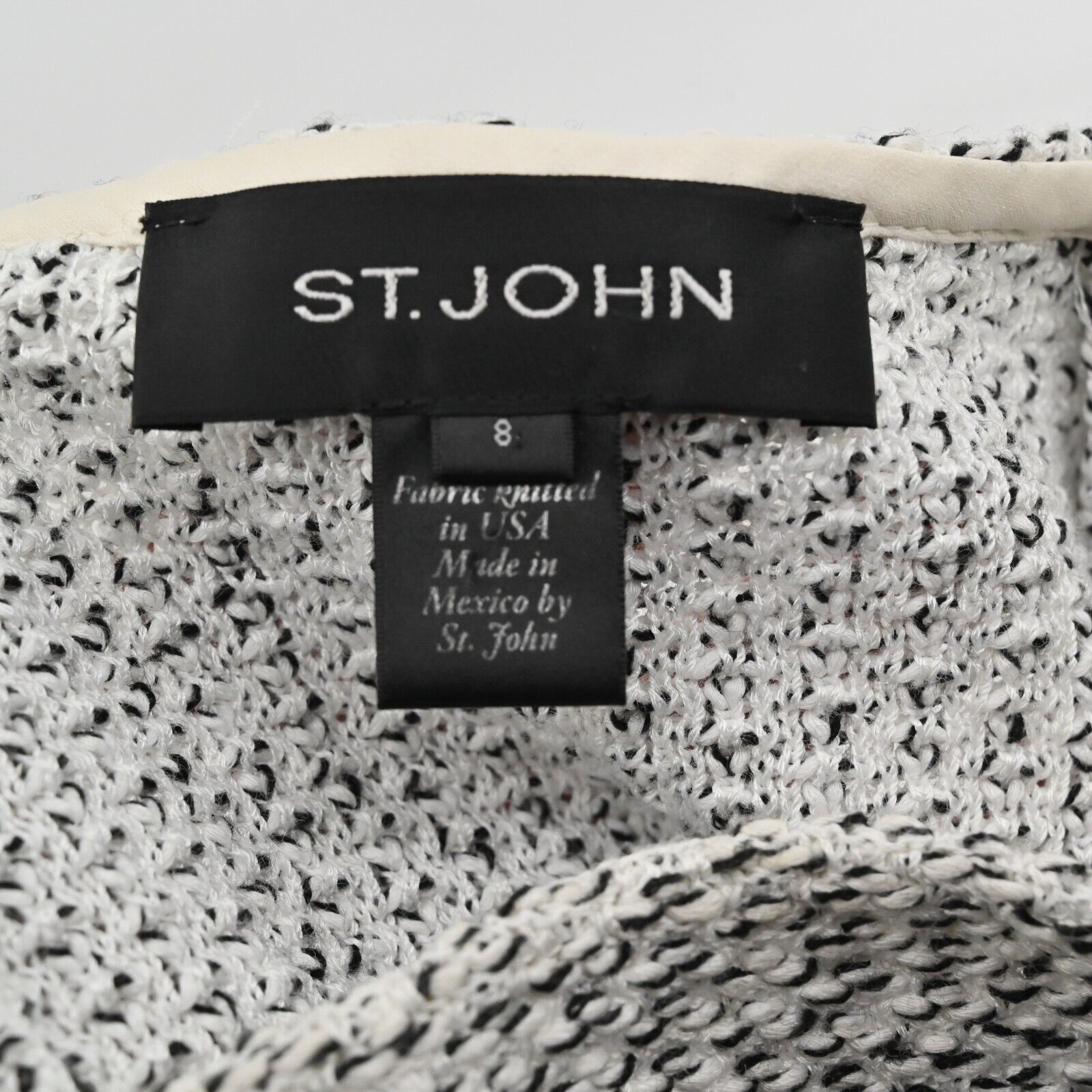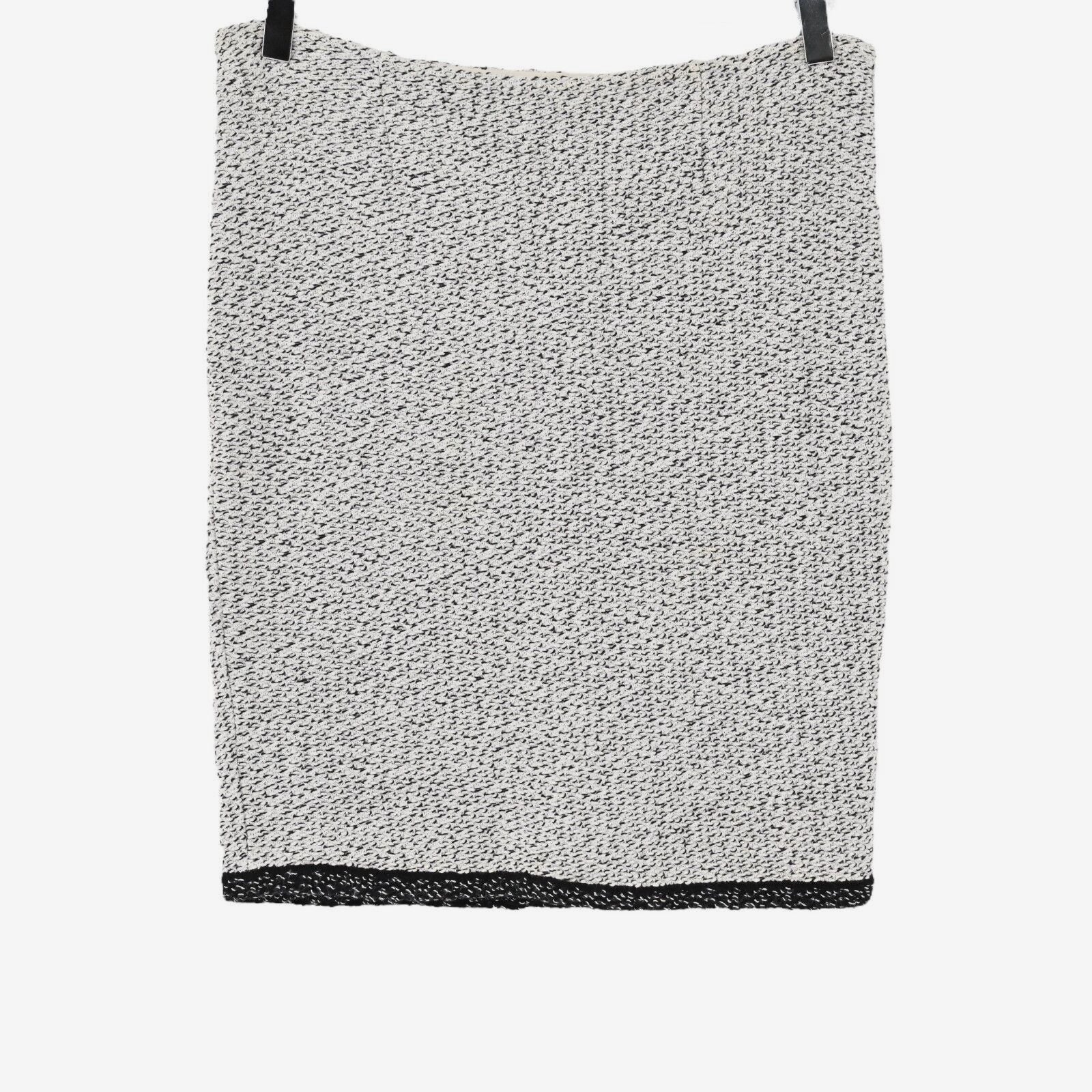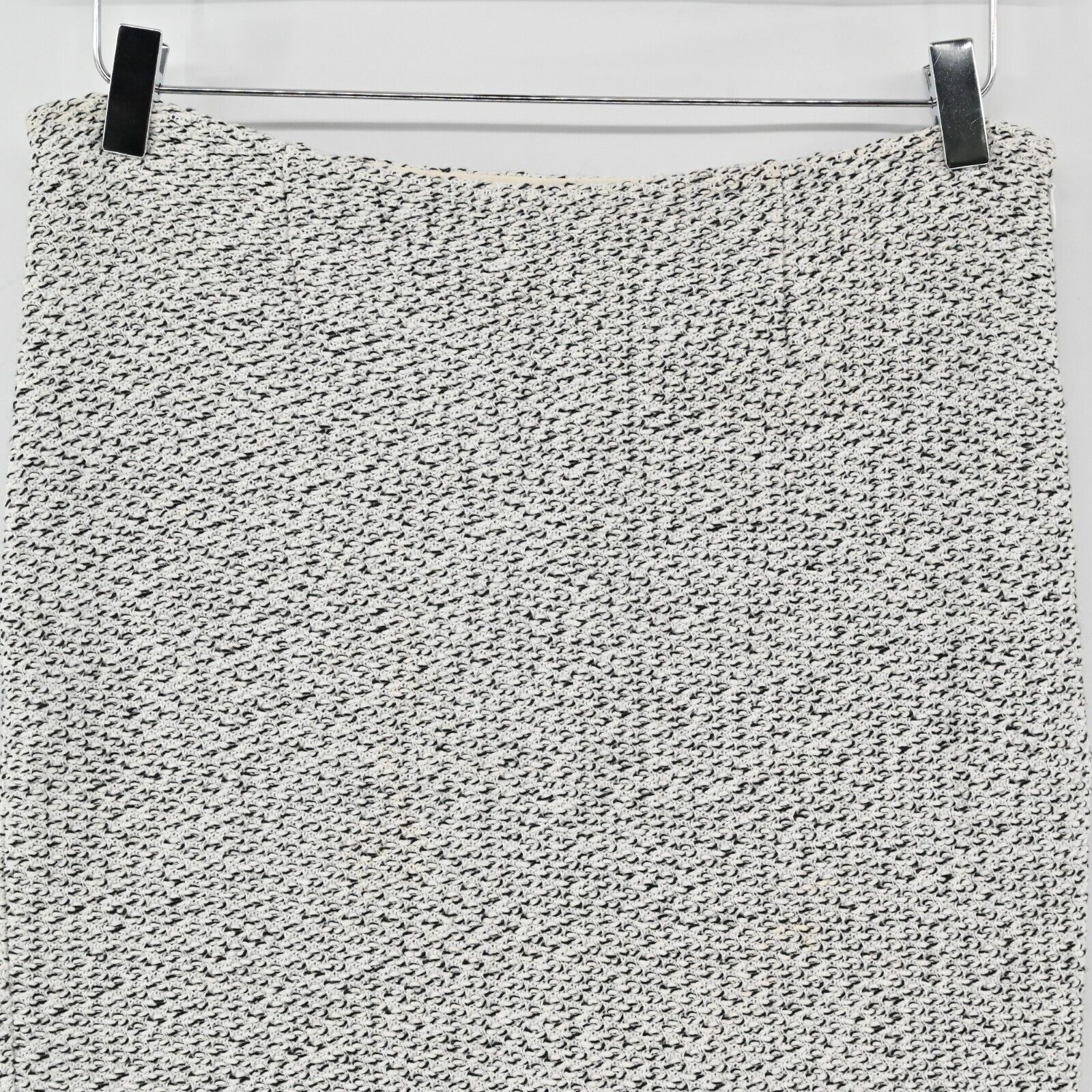 ST JOHN Skirt Sz 8 Wool White Black Contrast Trim Speckled Knit Pencil Capsule