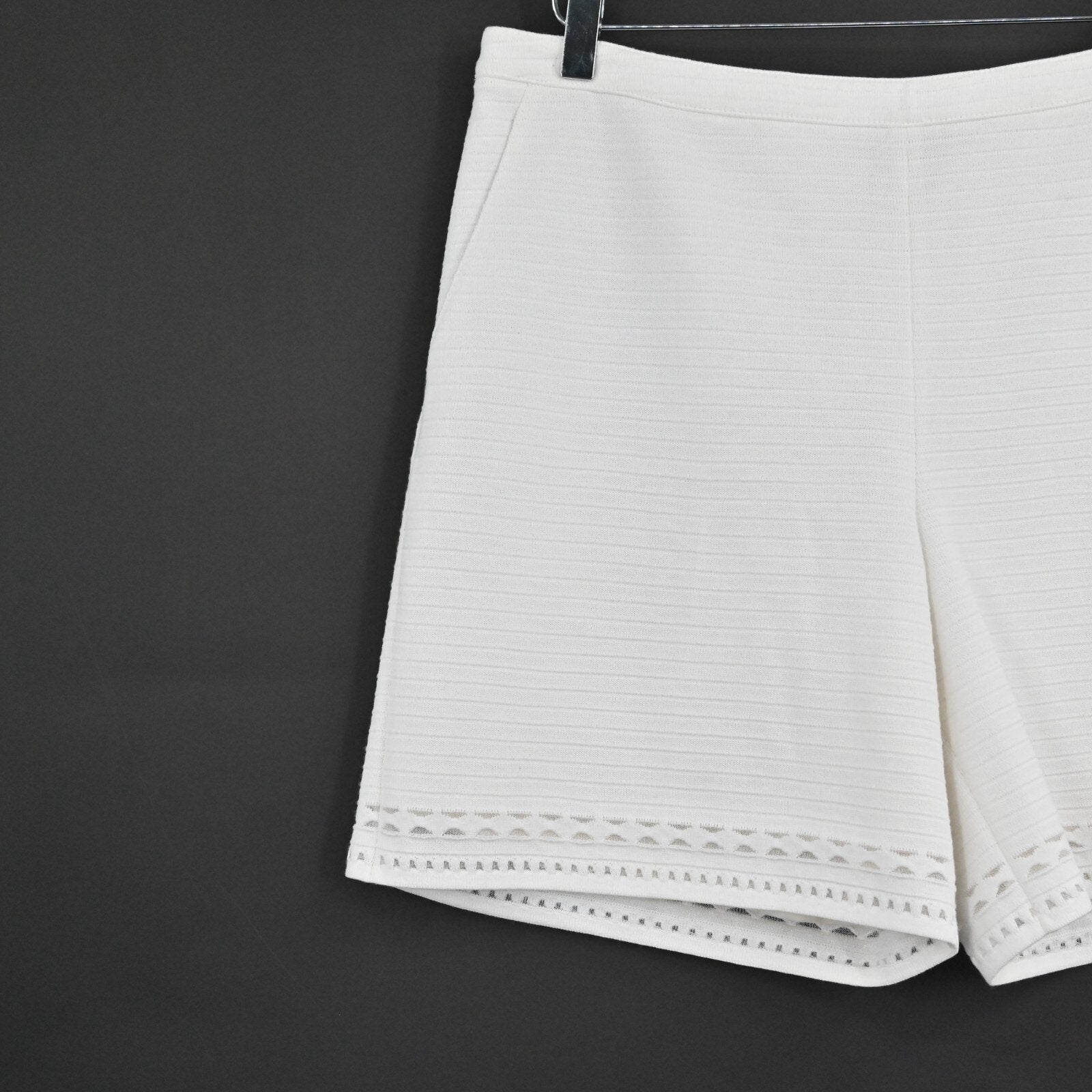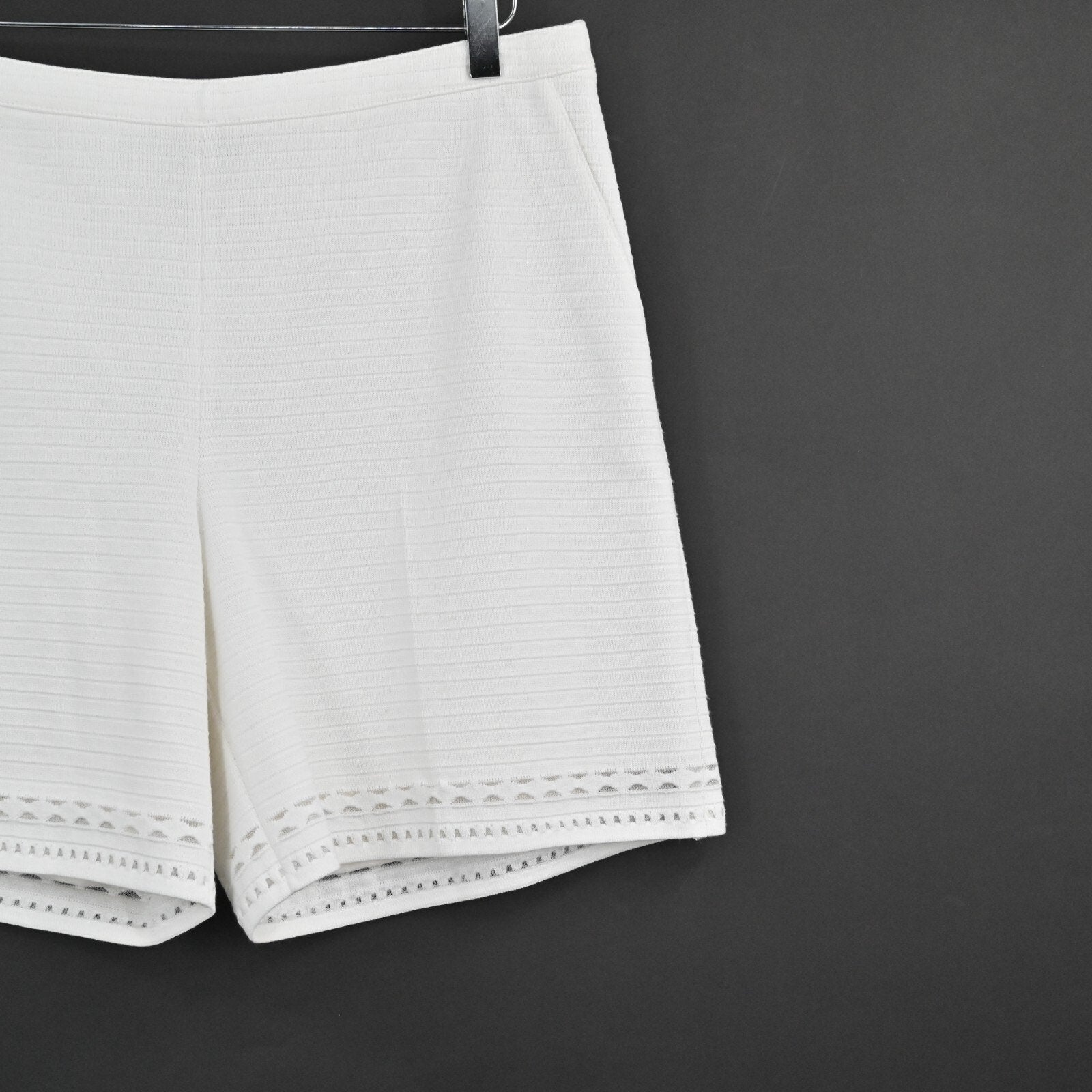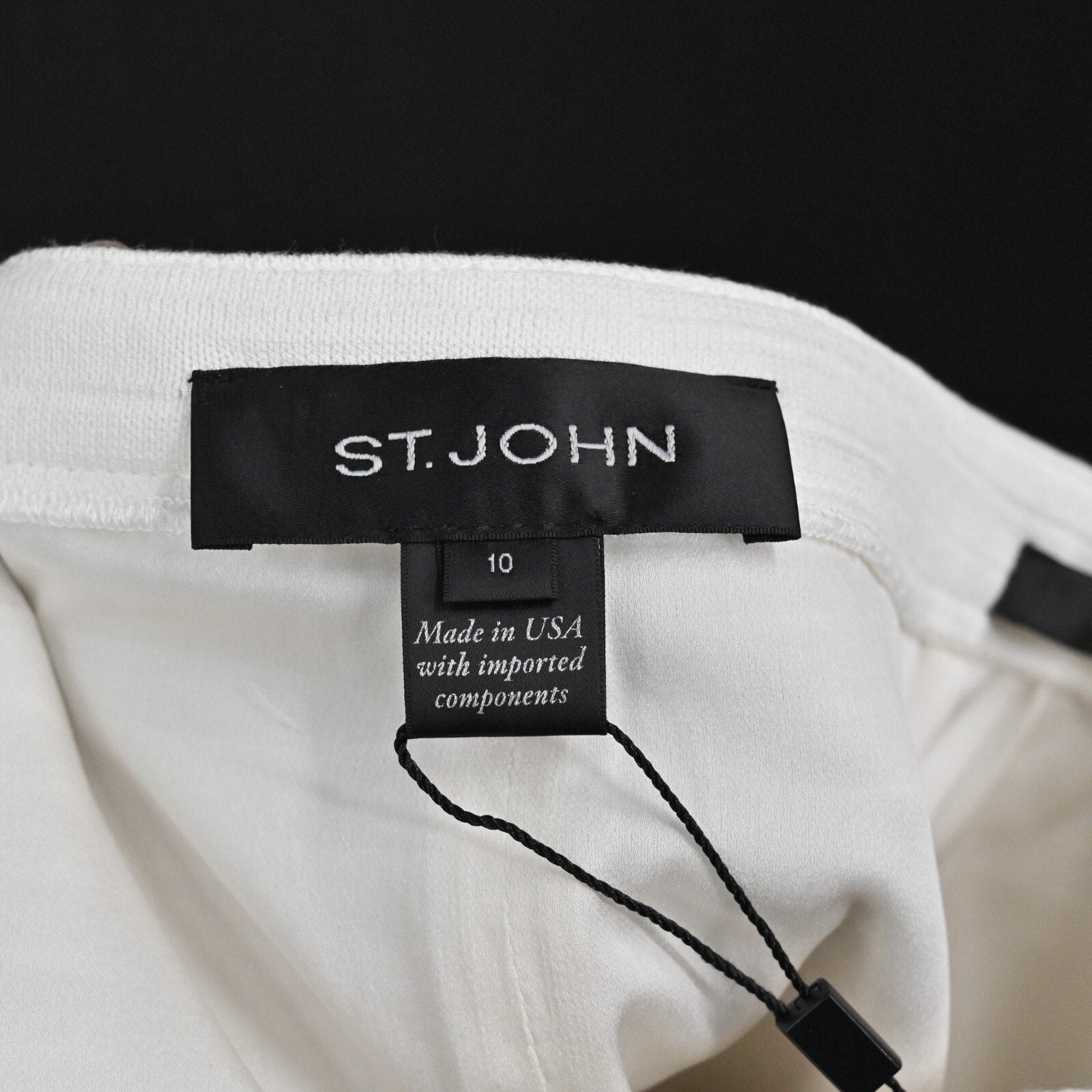 ST JOHN Womens Emma Fit Bianco Shorts Size 10 White Knit Lined Quiet Luxury Chic