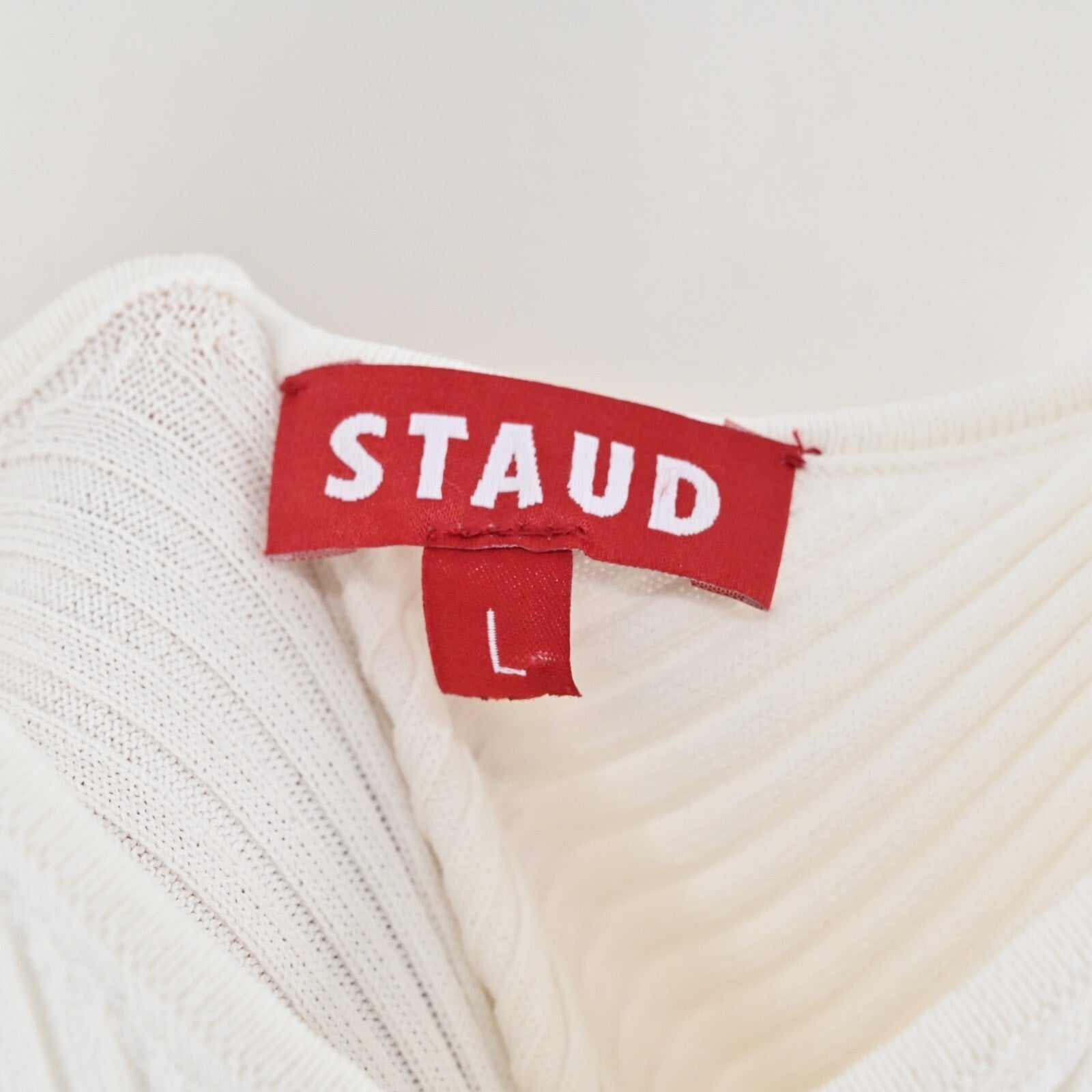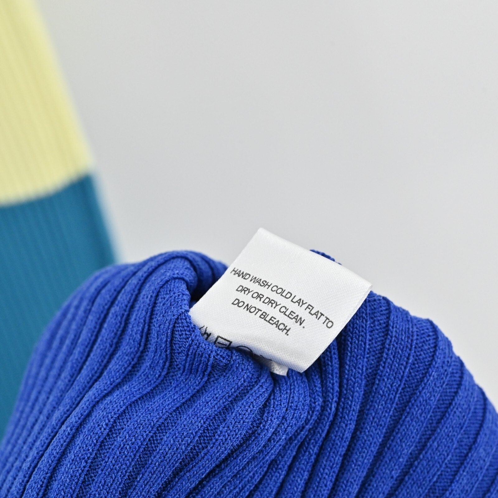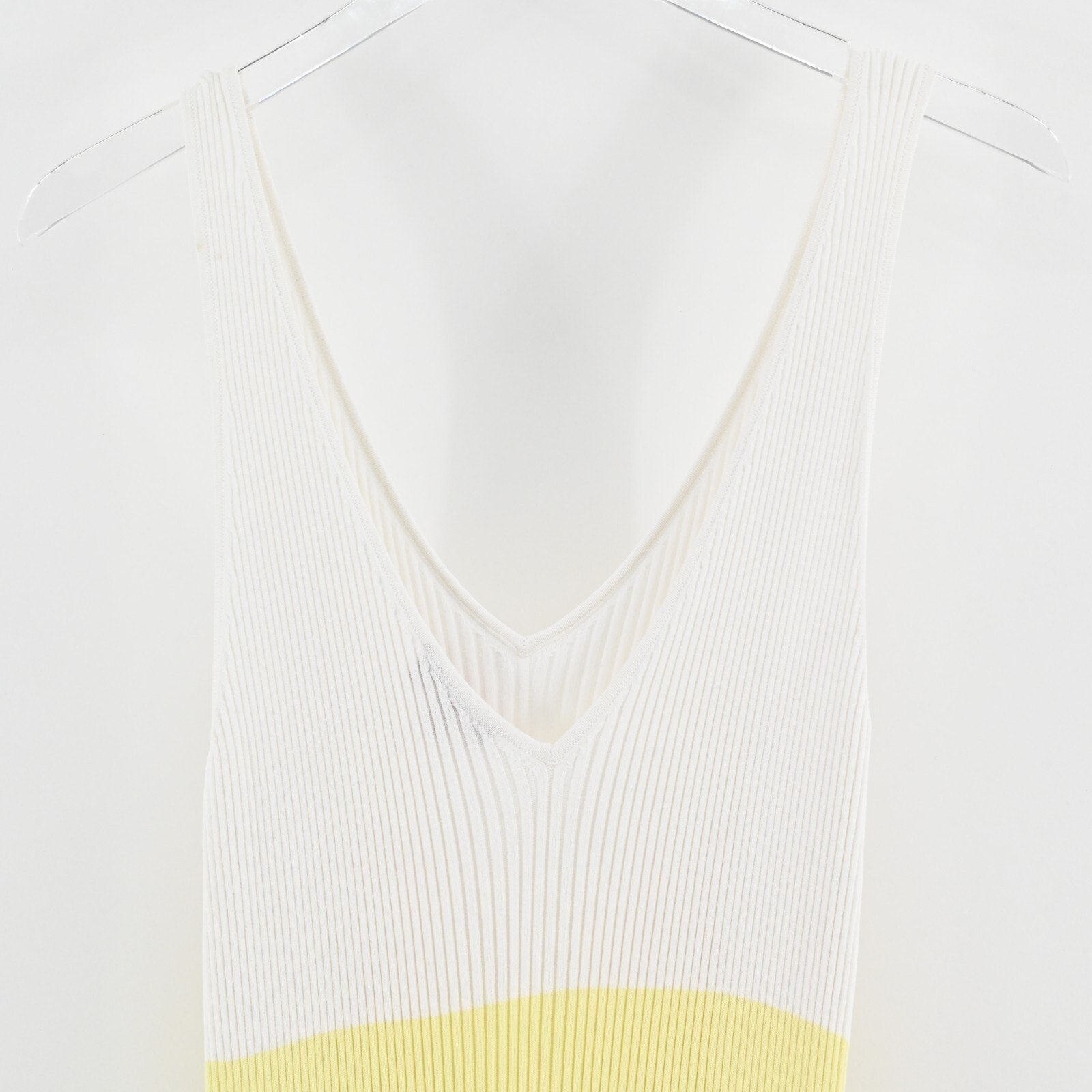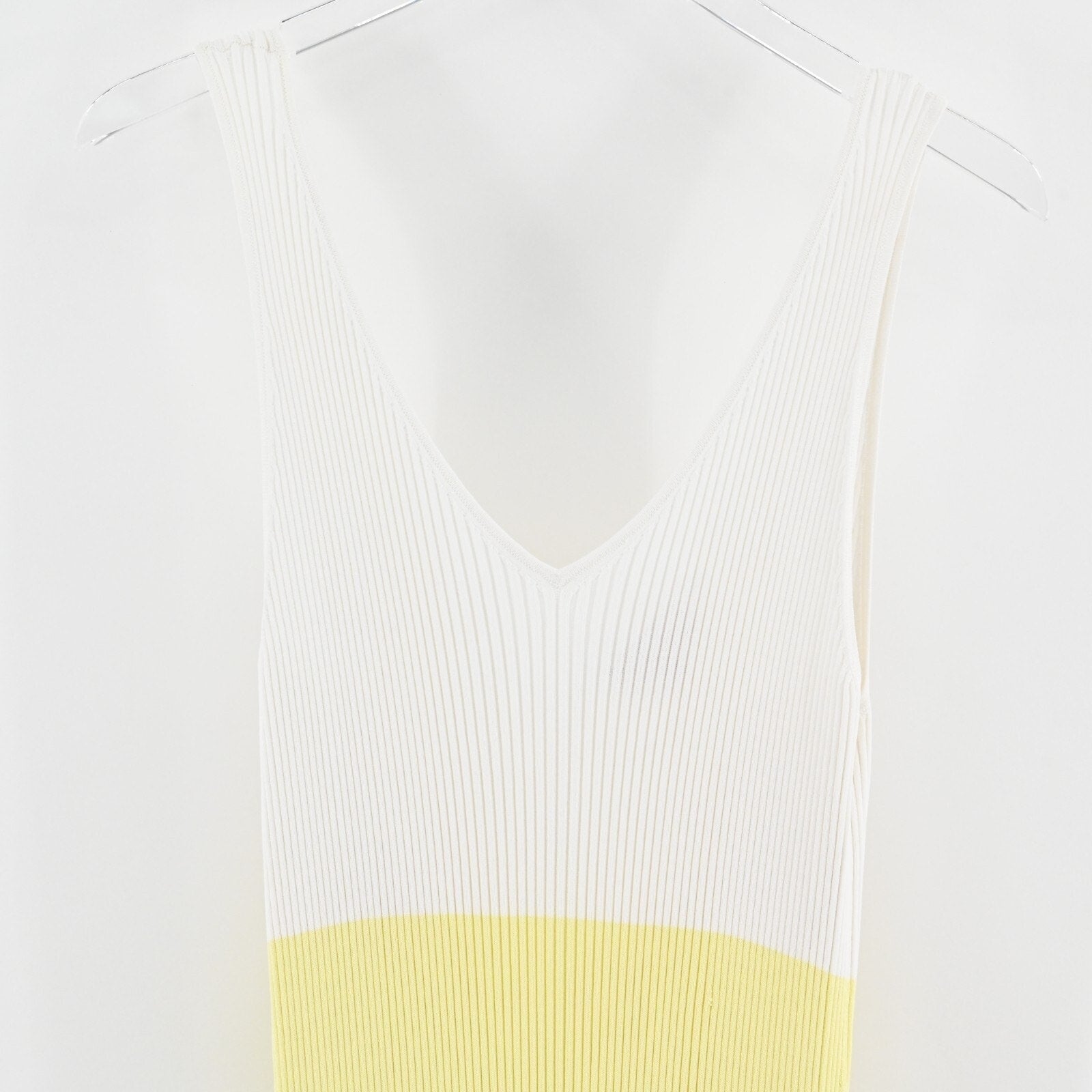 STAUD Dress Size L Dana Blue Colorblock Sleeveless VNeck Rib Knit Fitted Midi