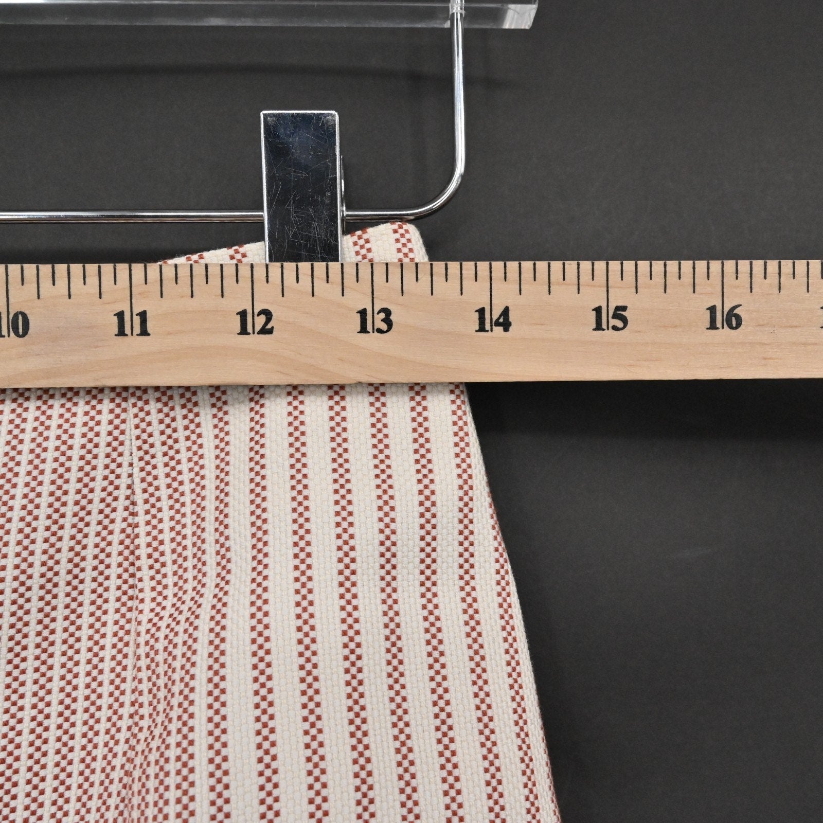 Style Profile: Preppy Professional Designer Business Casual Office Ready Vertical Stripe Knee Length Tailored Look Polished Fit Slim Silhouette Lightweight Fabric Everyday Neutral Back Vent Clean Design Red Accents Flattering Cut Timeless Wardrobe Staple