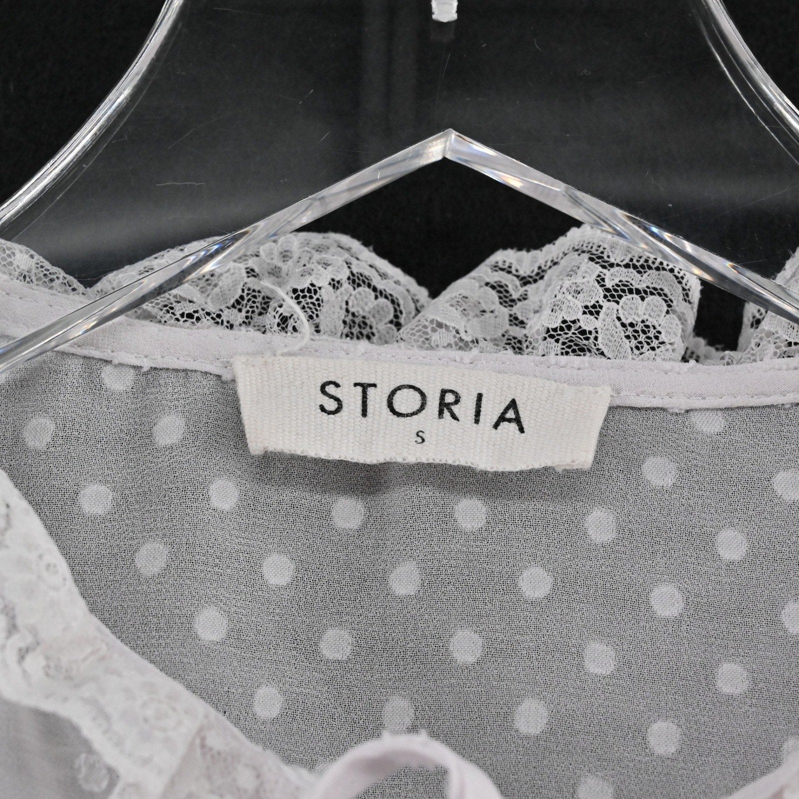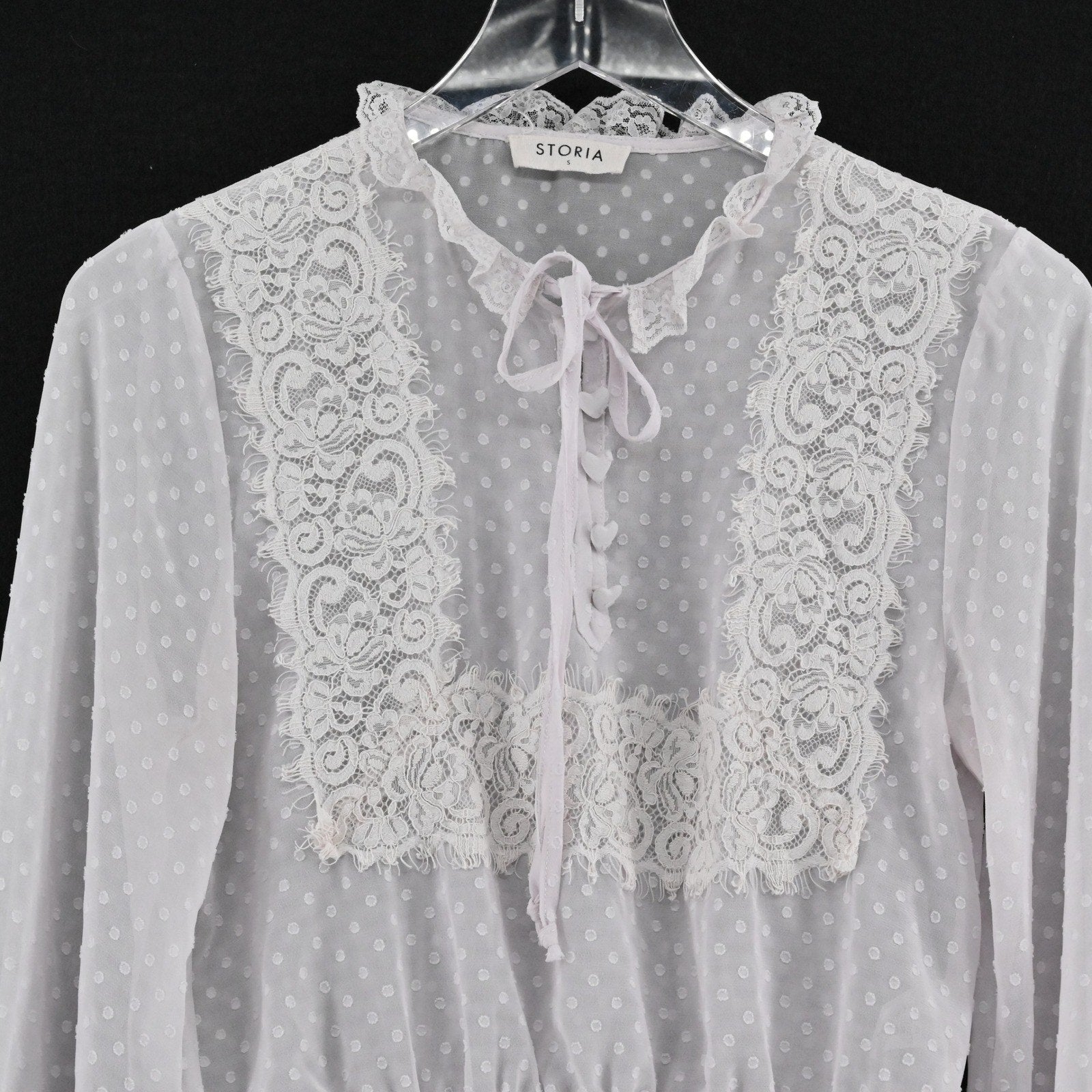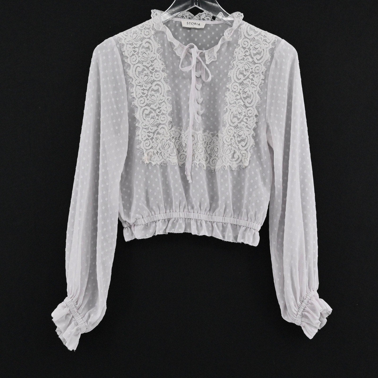 Storia Womens Lace Peasant Top Size S Romantic Ethereal Delicate Boho LAVENDER