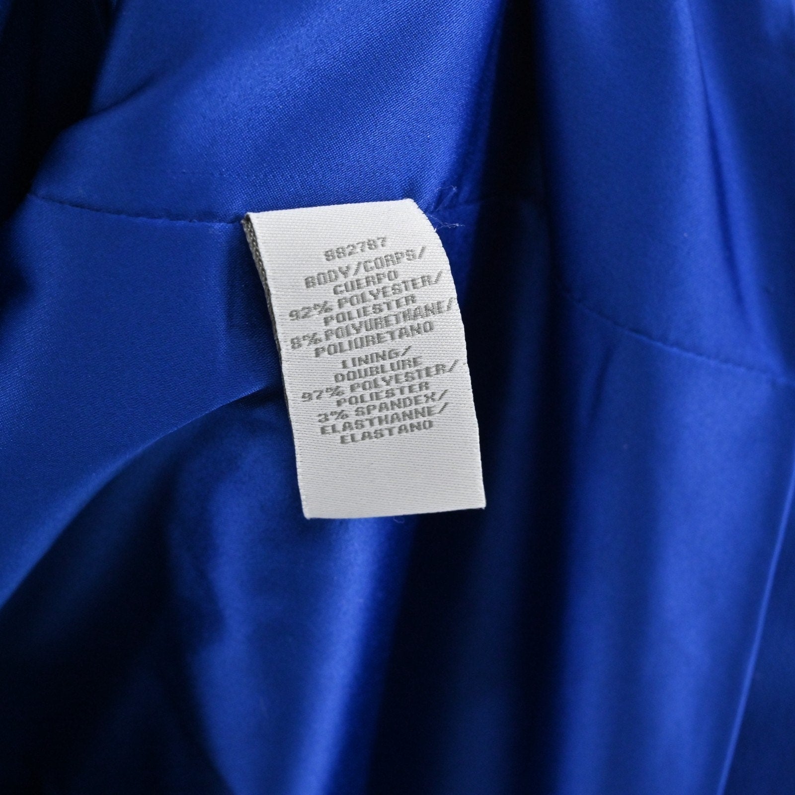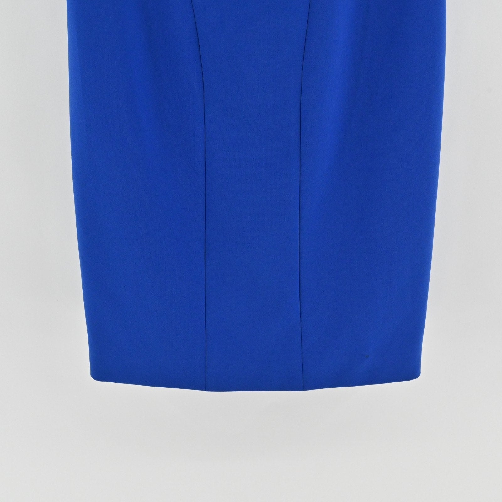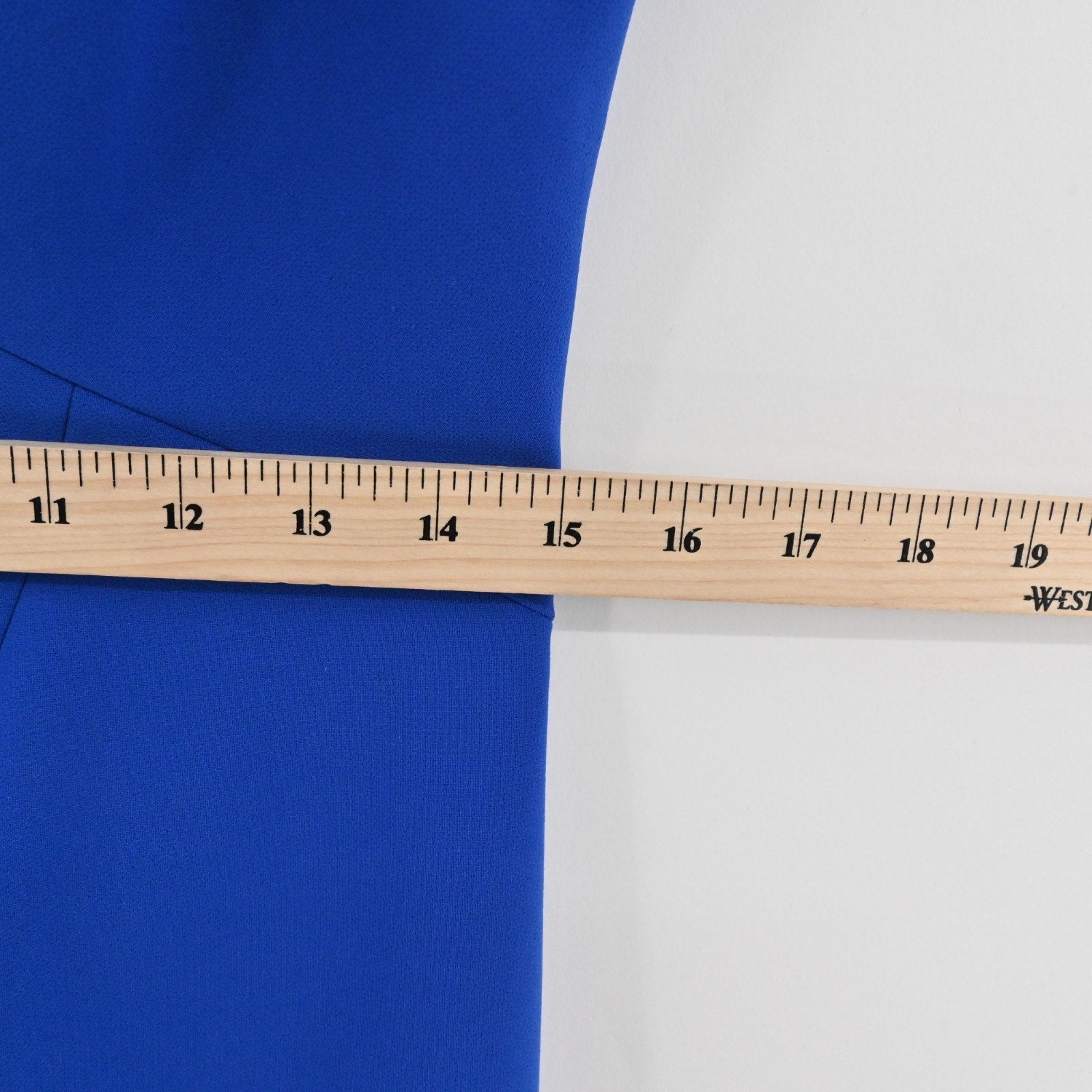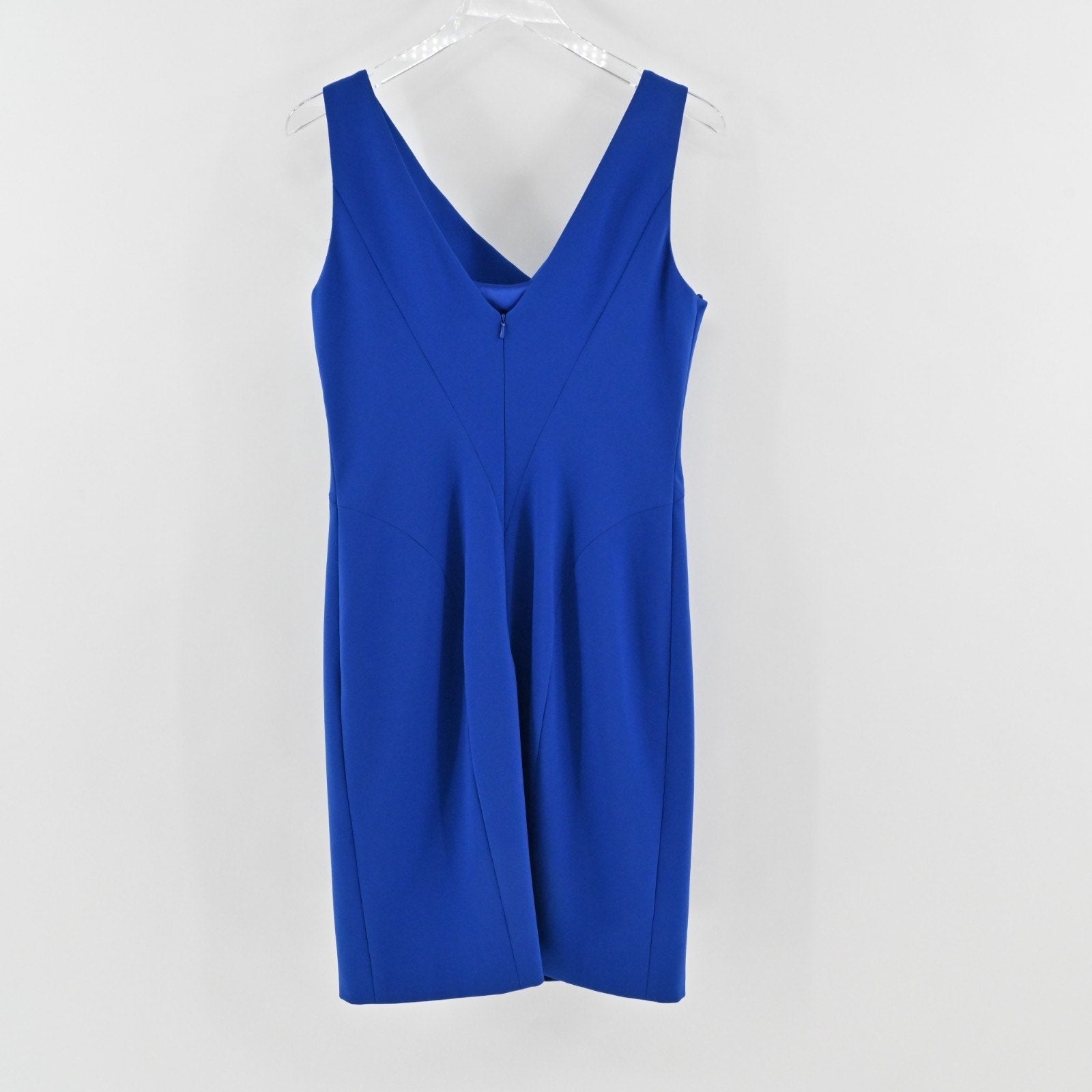 THEIA Blue Cowl Neck Sheath Dress Size 10 Sleeveless Stretch Classic Office