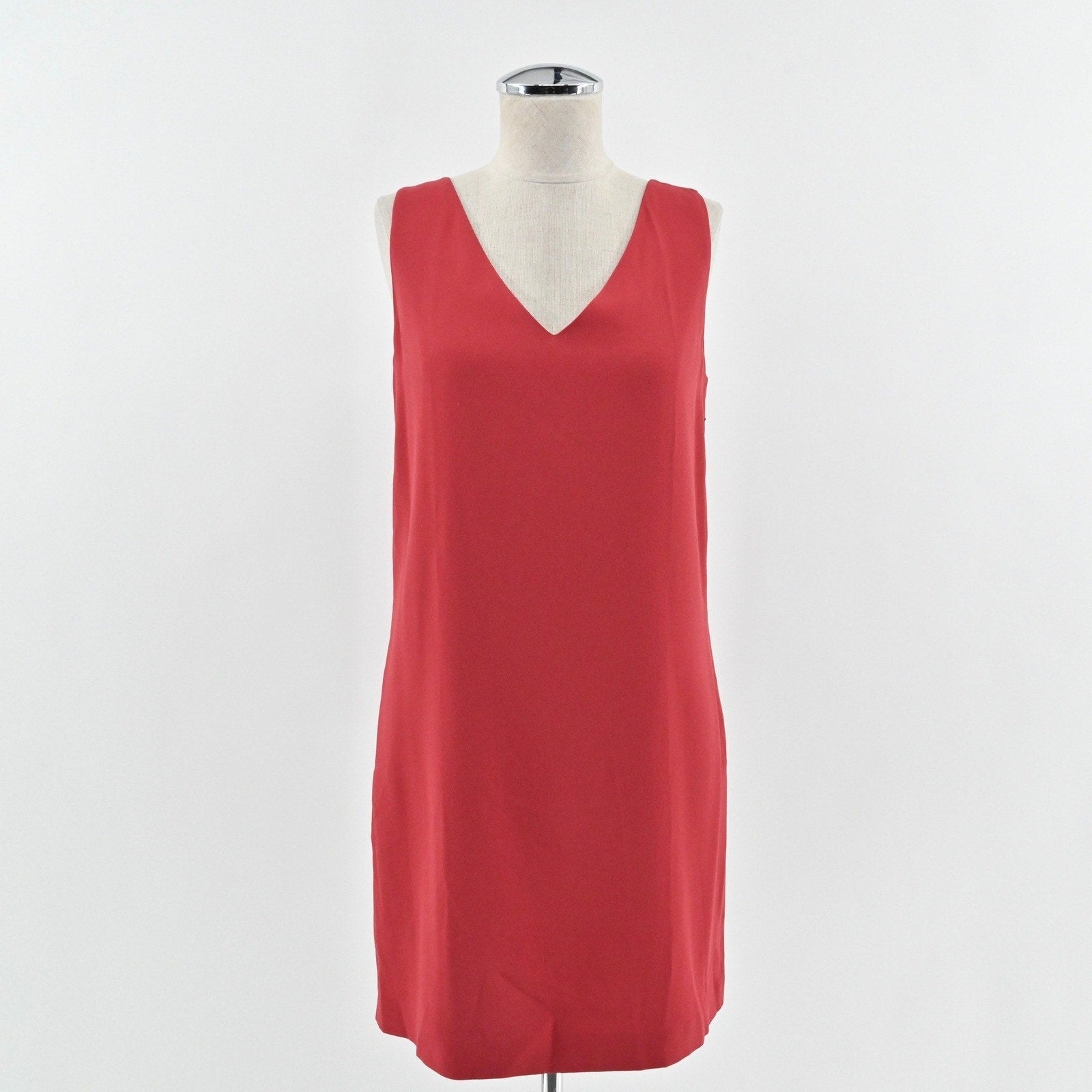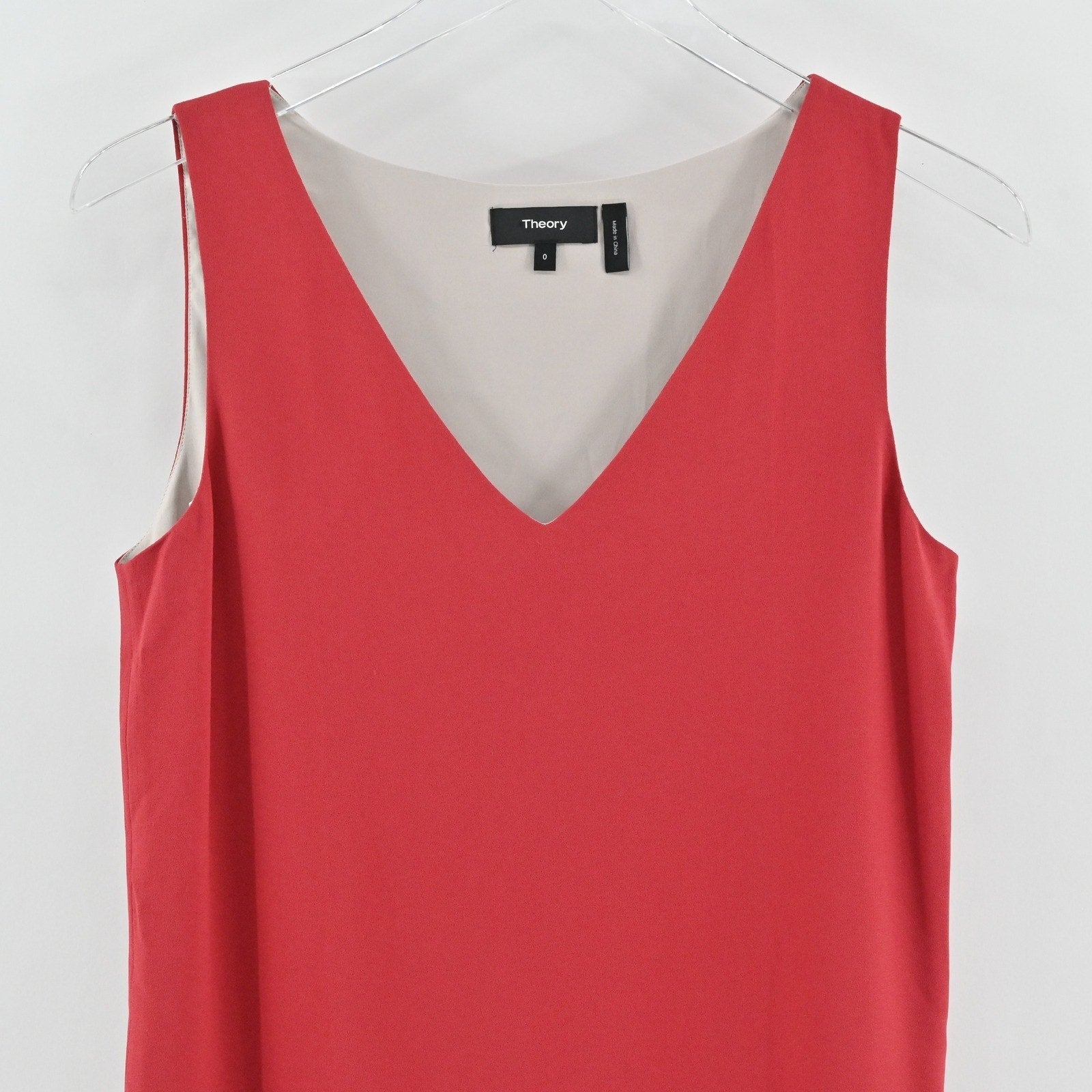 Theory Rosina Crepe Shift Dress Sleeveless Size 0 Red V Neck Career Date Night