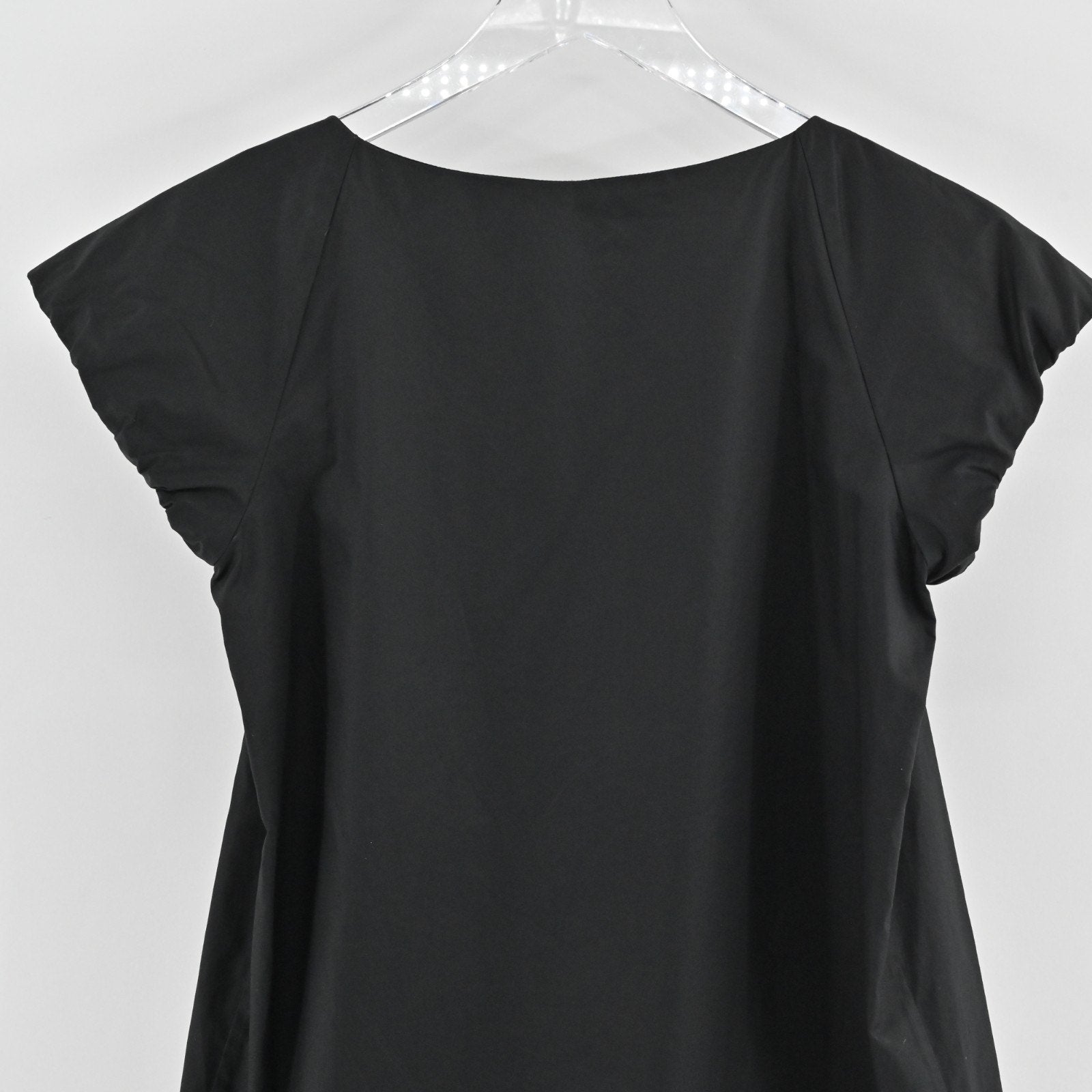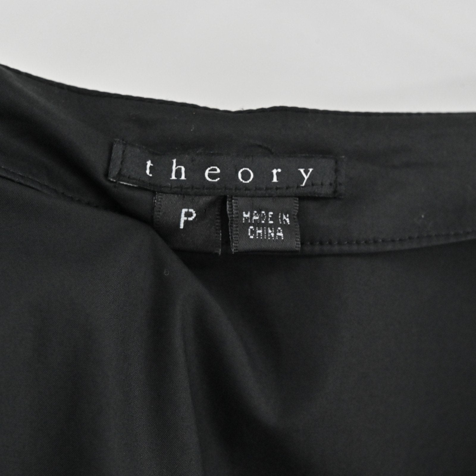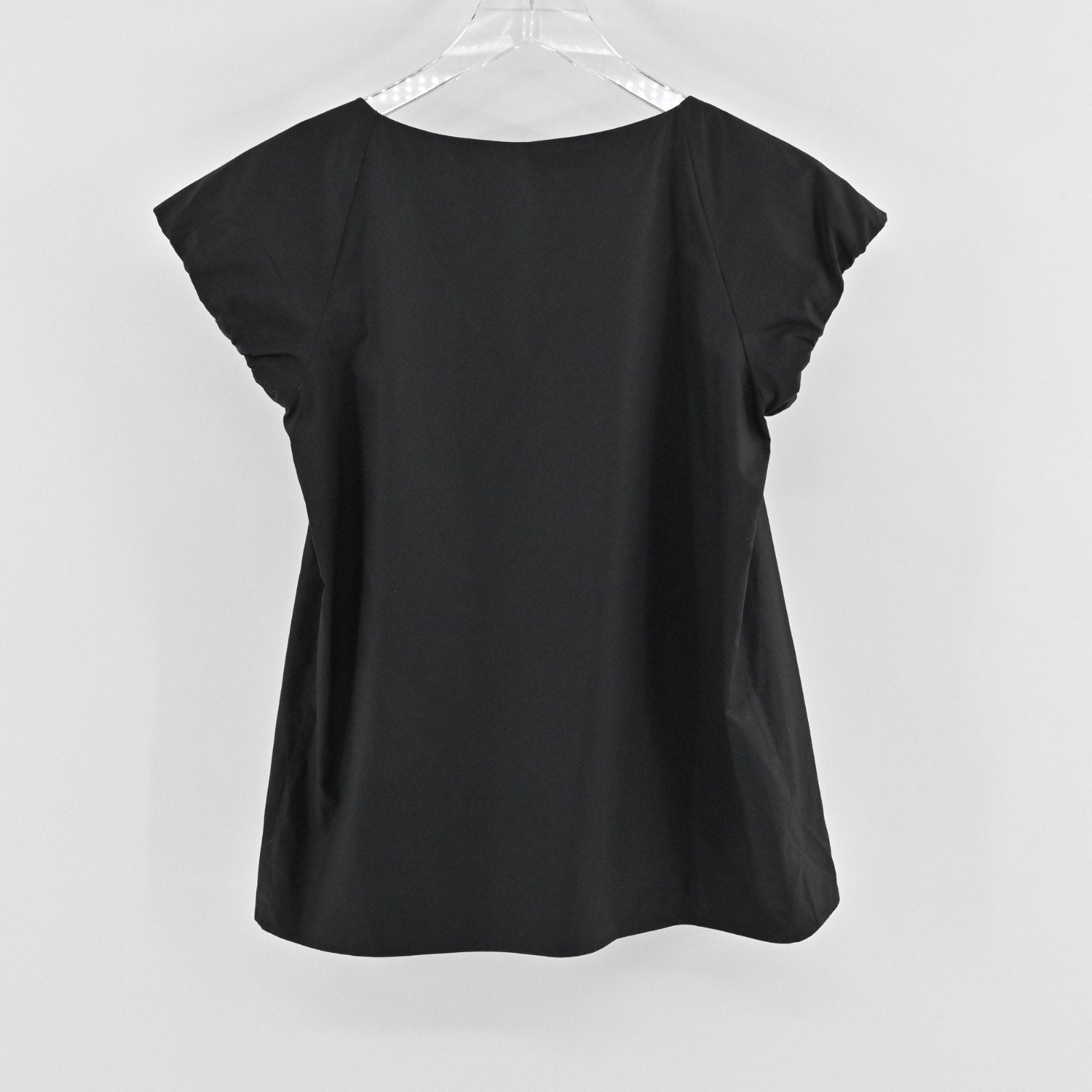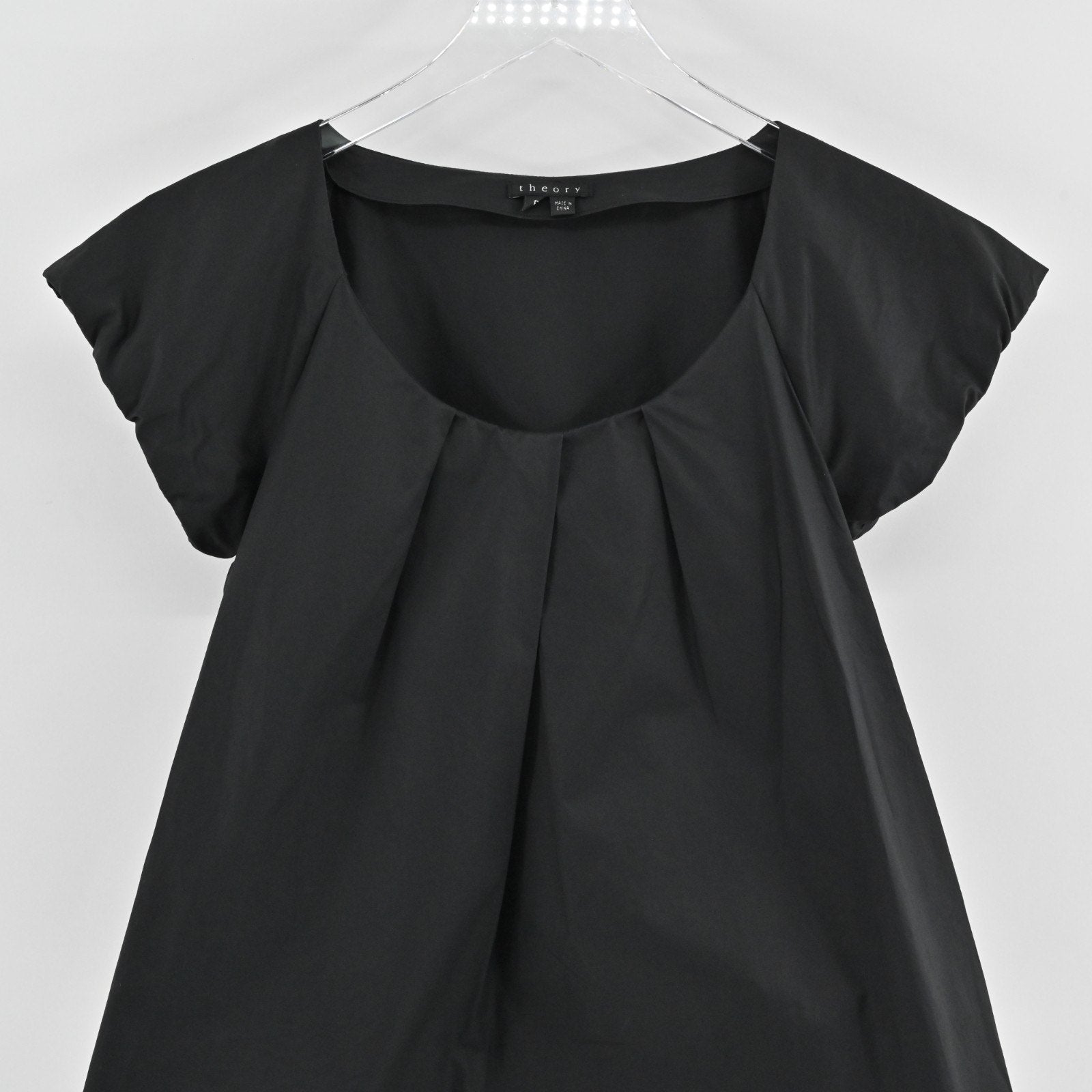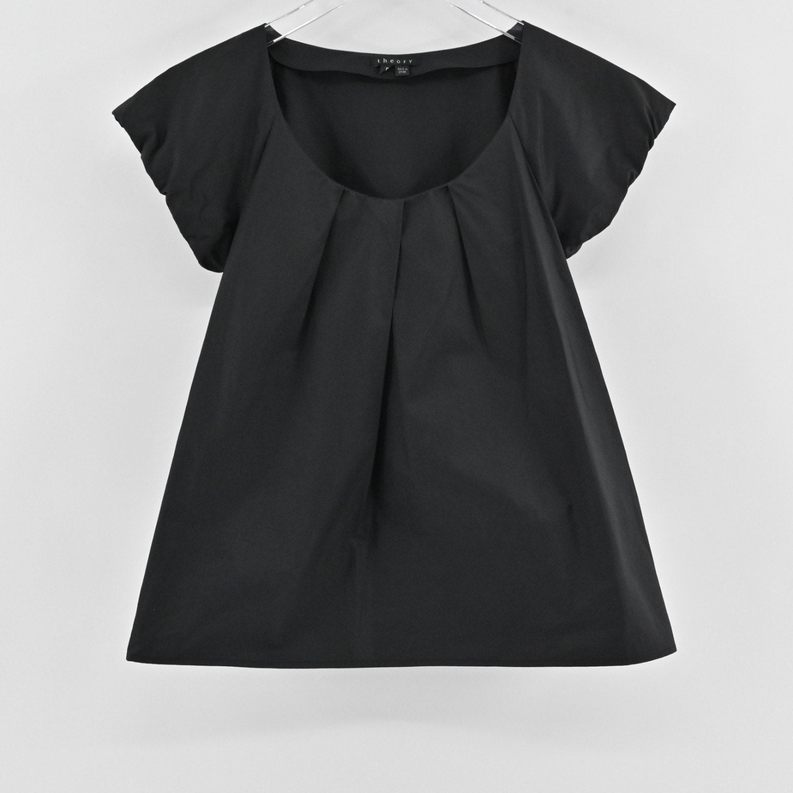 Theory Womens Besette Black Top Size XS Pleated Scoop Neck Short Sleeve Blouse