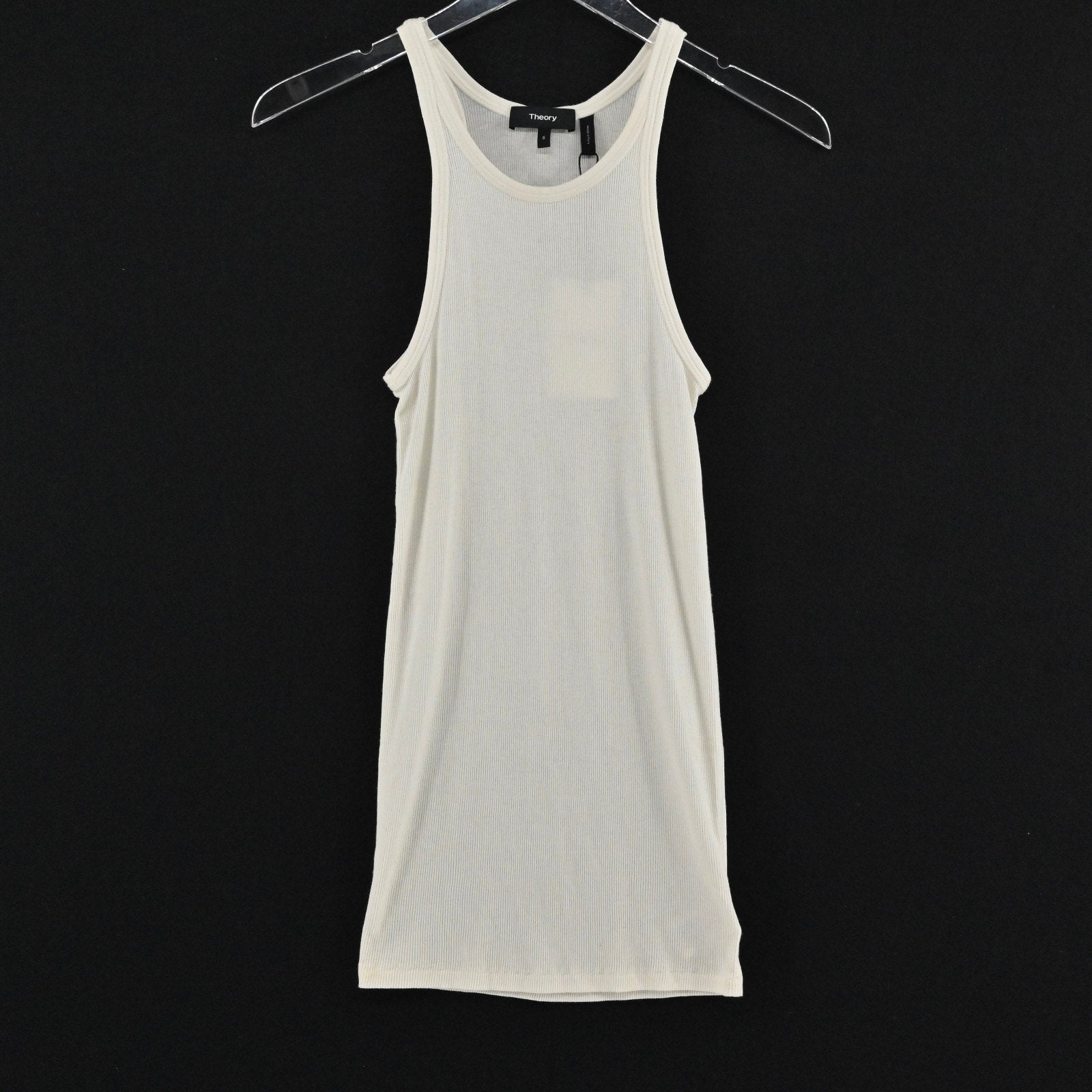 Theory Womens Ribbed Racerback Tank Top Size S Ivory Cotton Minimalist Neutral