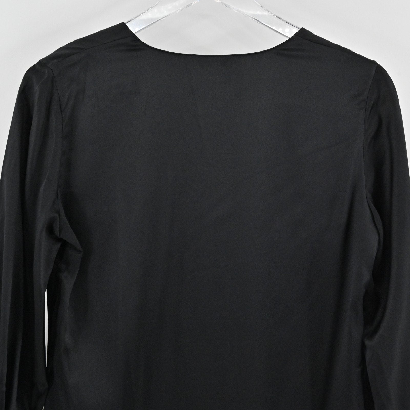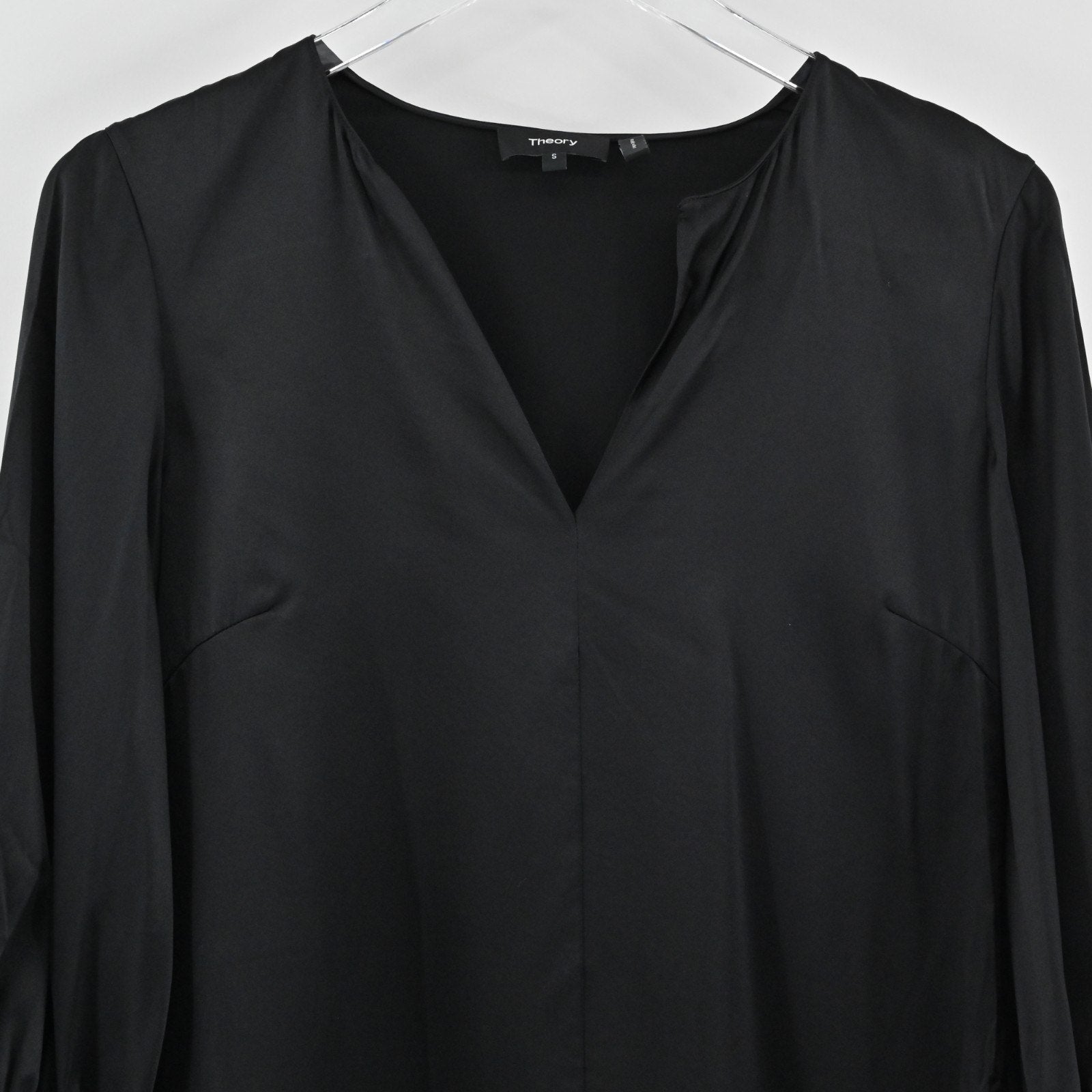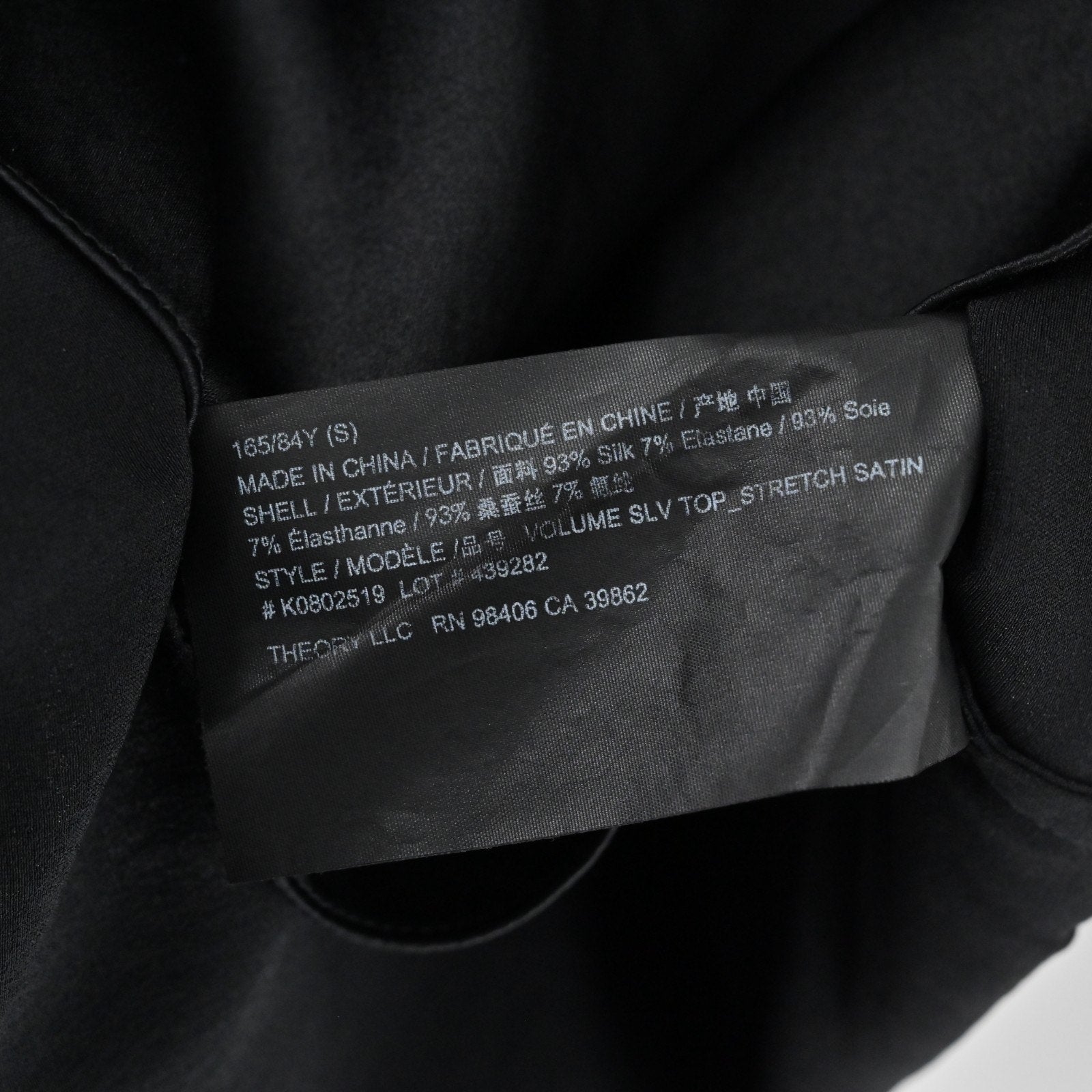 Theory Womens Stretch Satin Volume Sleeve Top Size S Black Silk Minimalist Glam