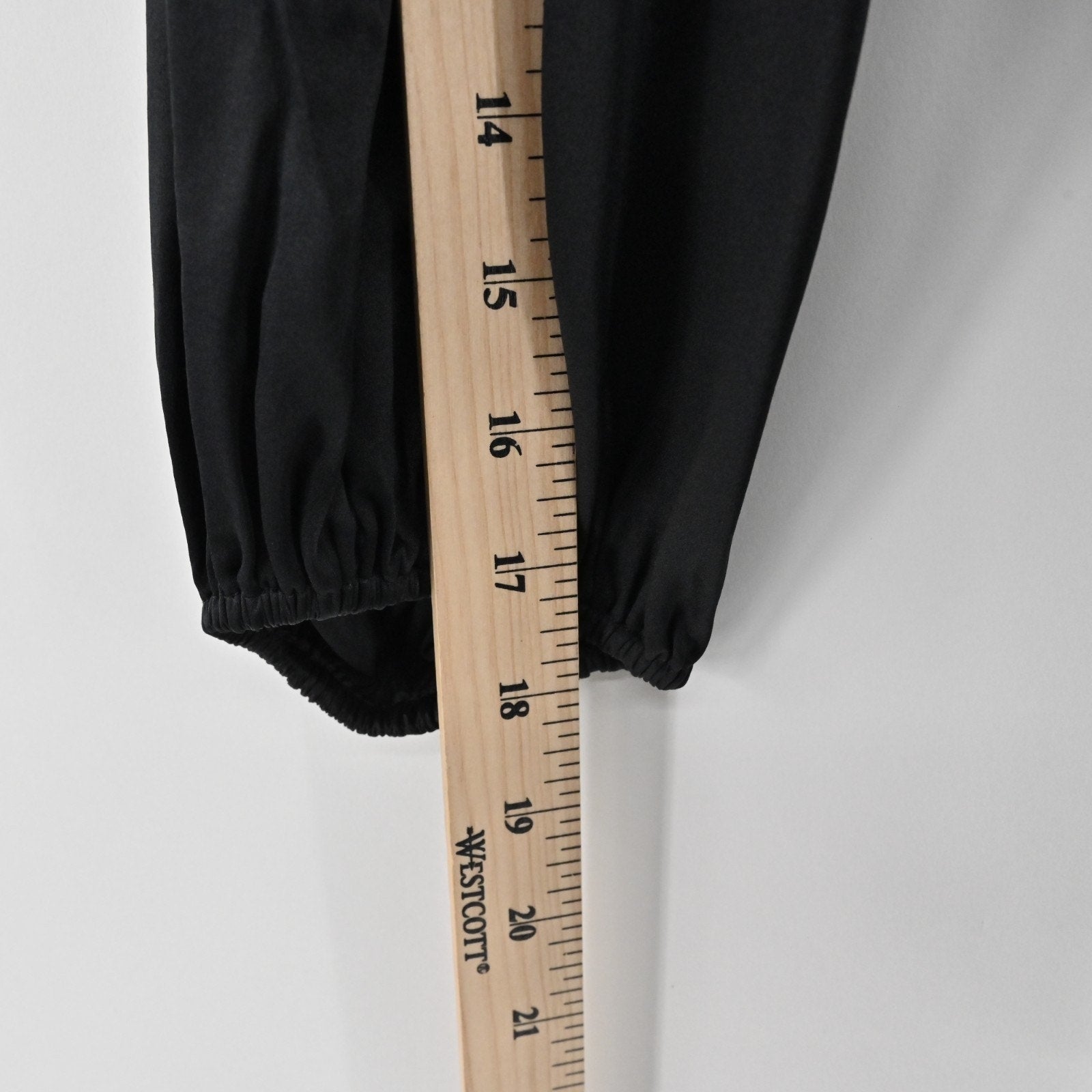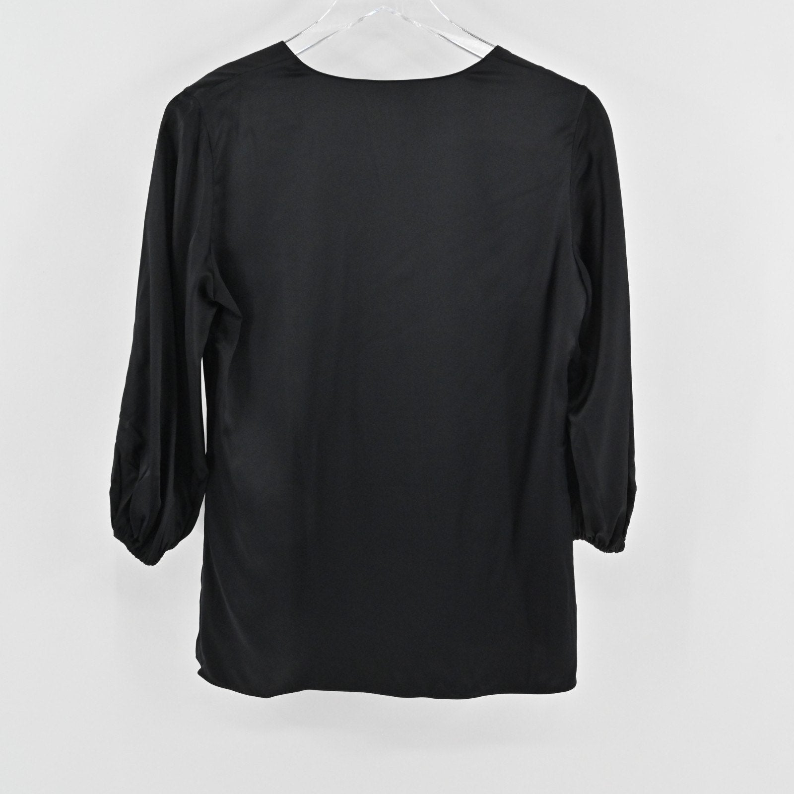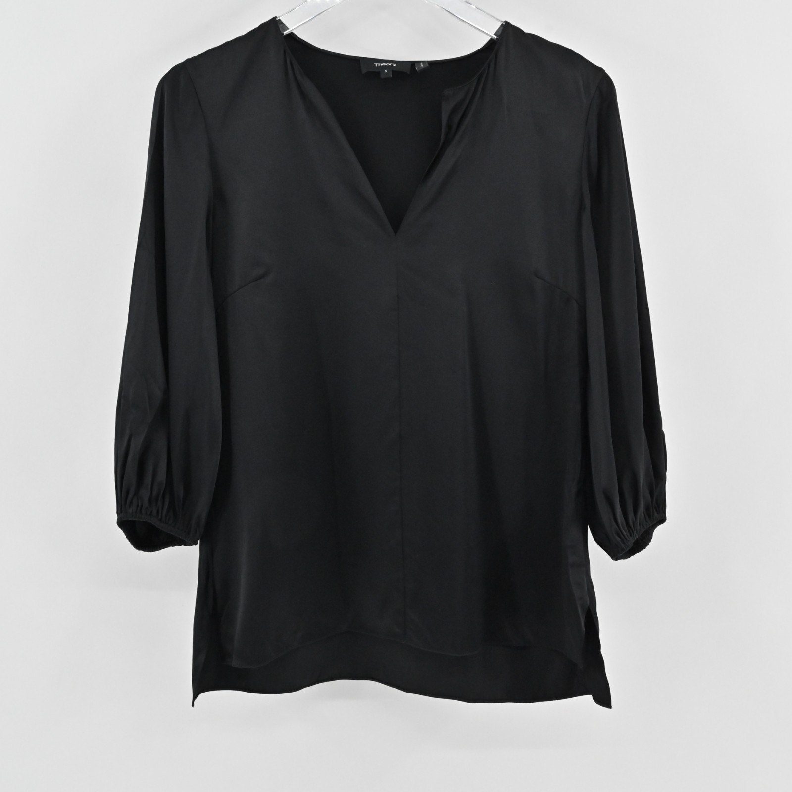 Theory Womens Stretch Satin Volume Sleeve Top Size S Black Silk Minimalist Glam