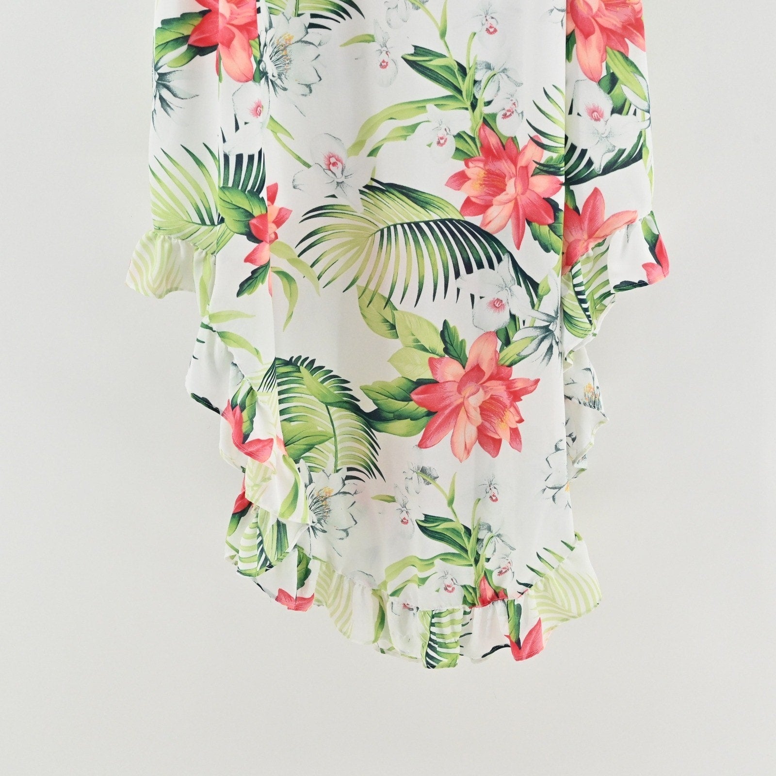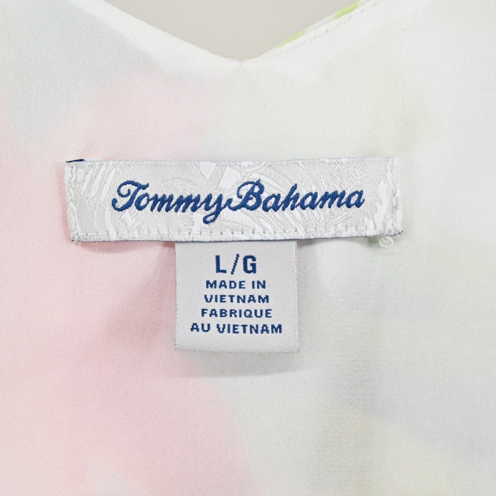Tommy Bahama Maxi Dress L White Floral Tropical Ruffle High Low Vibrant Vacation
