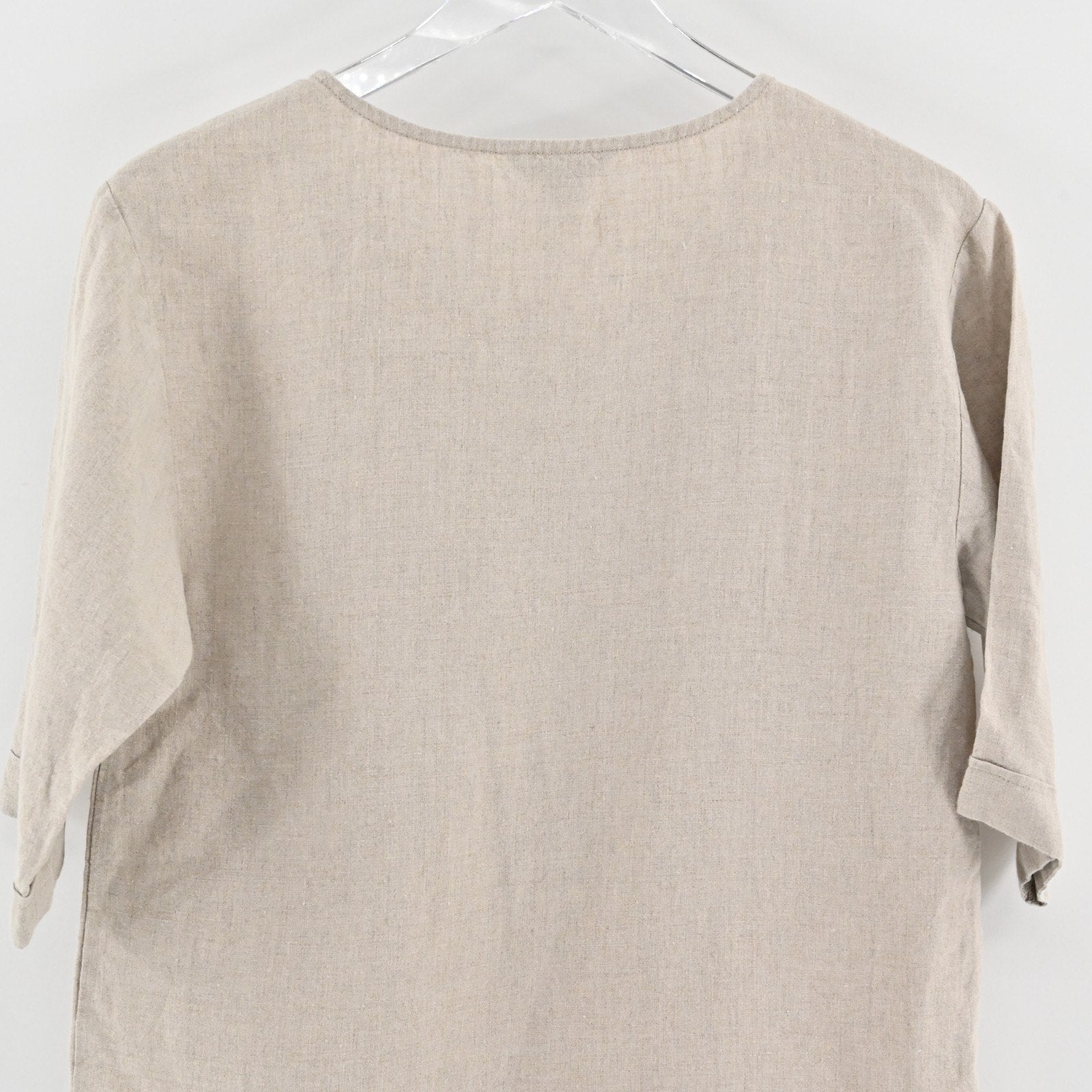 Tommy Bahama Womens Linen Top Size XXS Beige Lagenlook Neutral Short Sleeve Boho