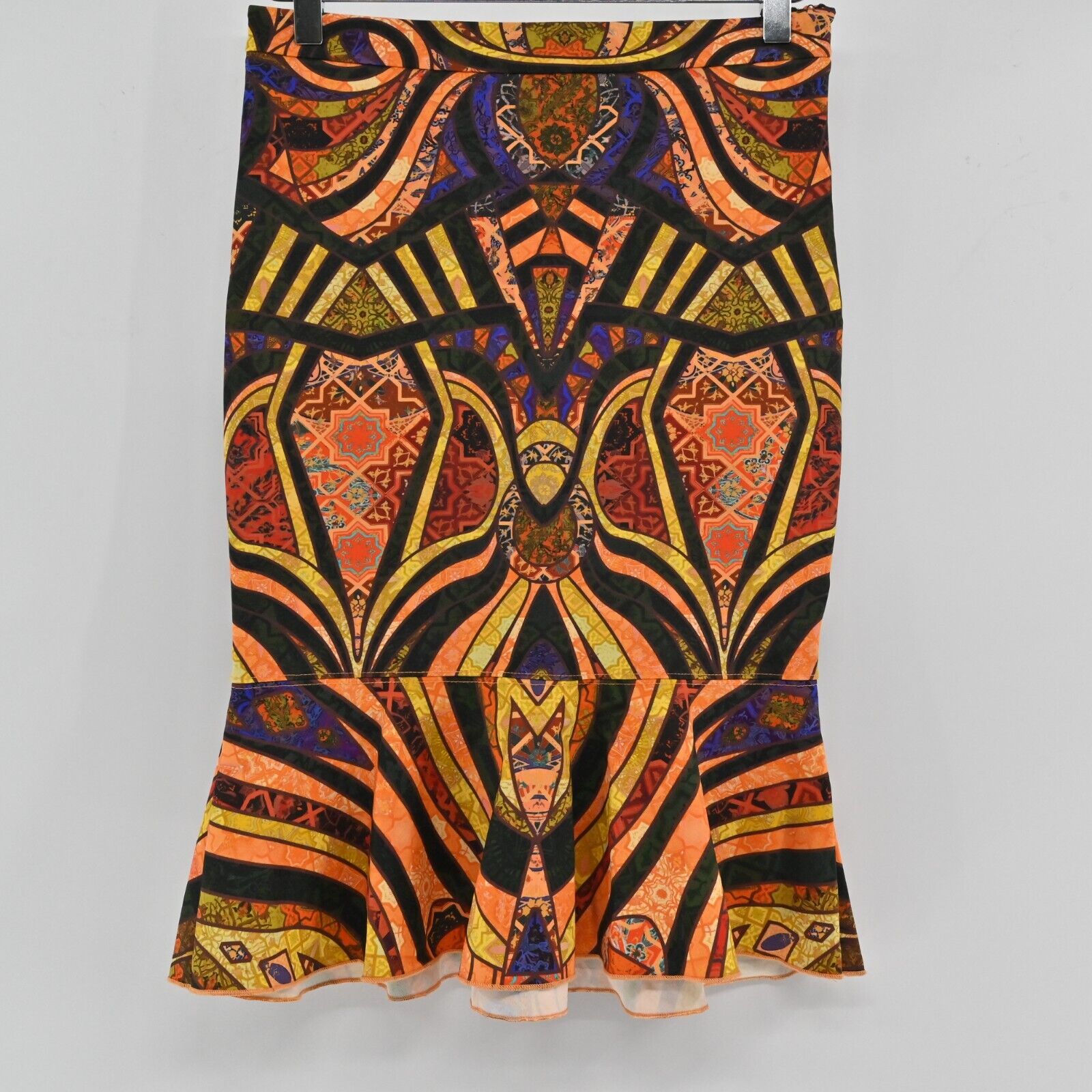 TORN by RONNY KOBO Skirt Womens Sz S Orange Boho Geometric Paris Trumpet Pencil