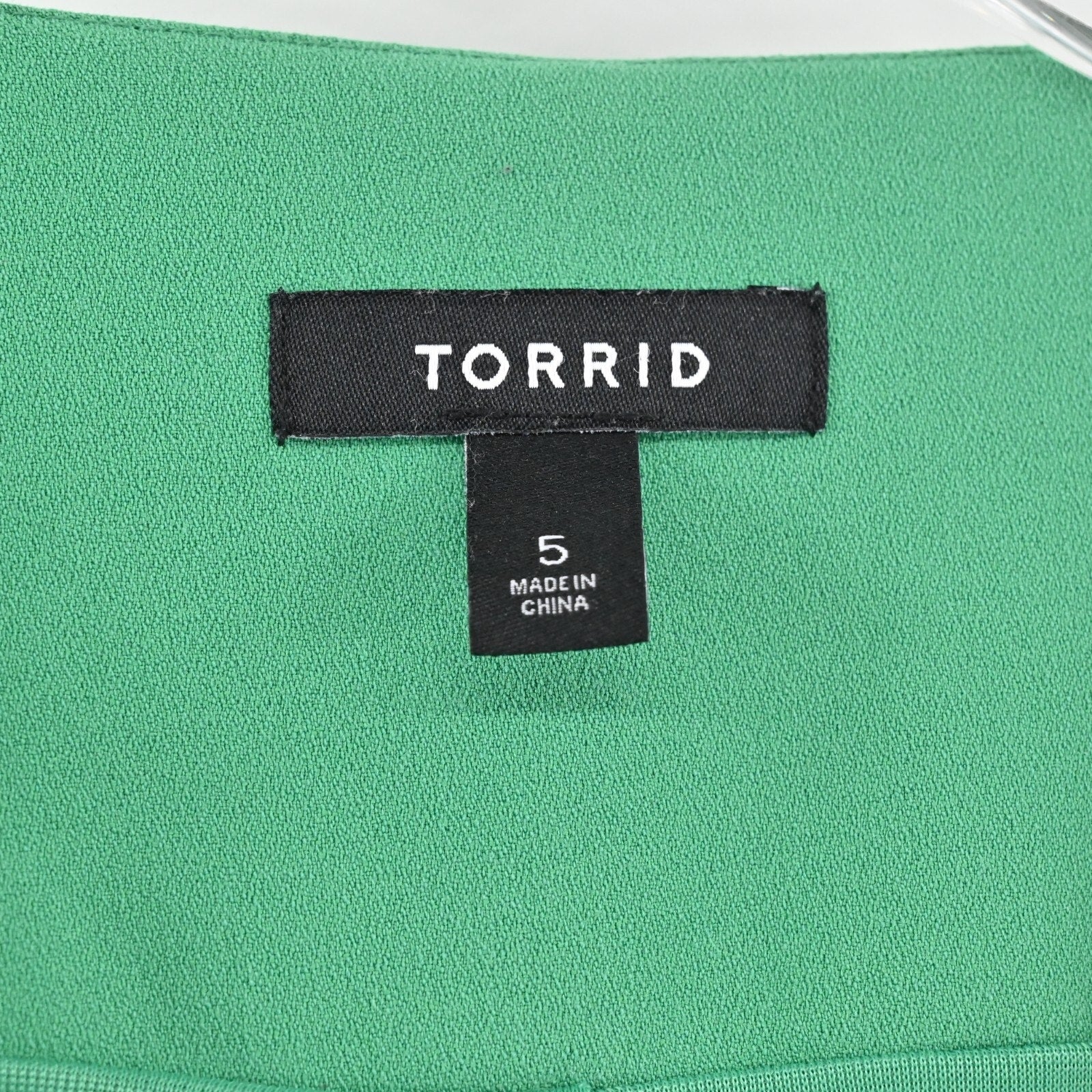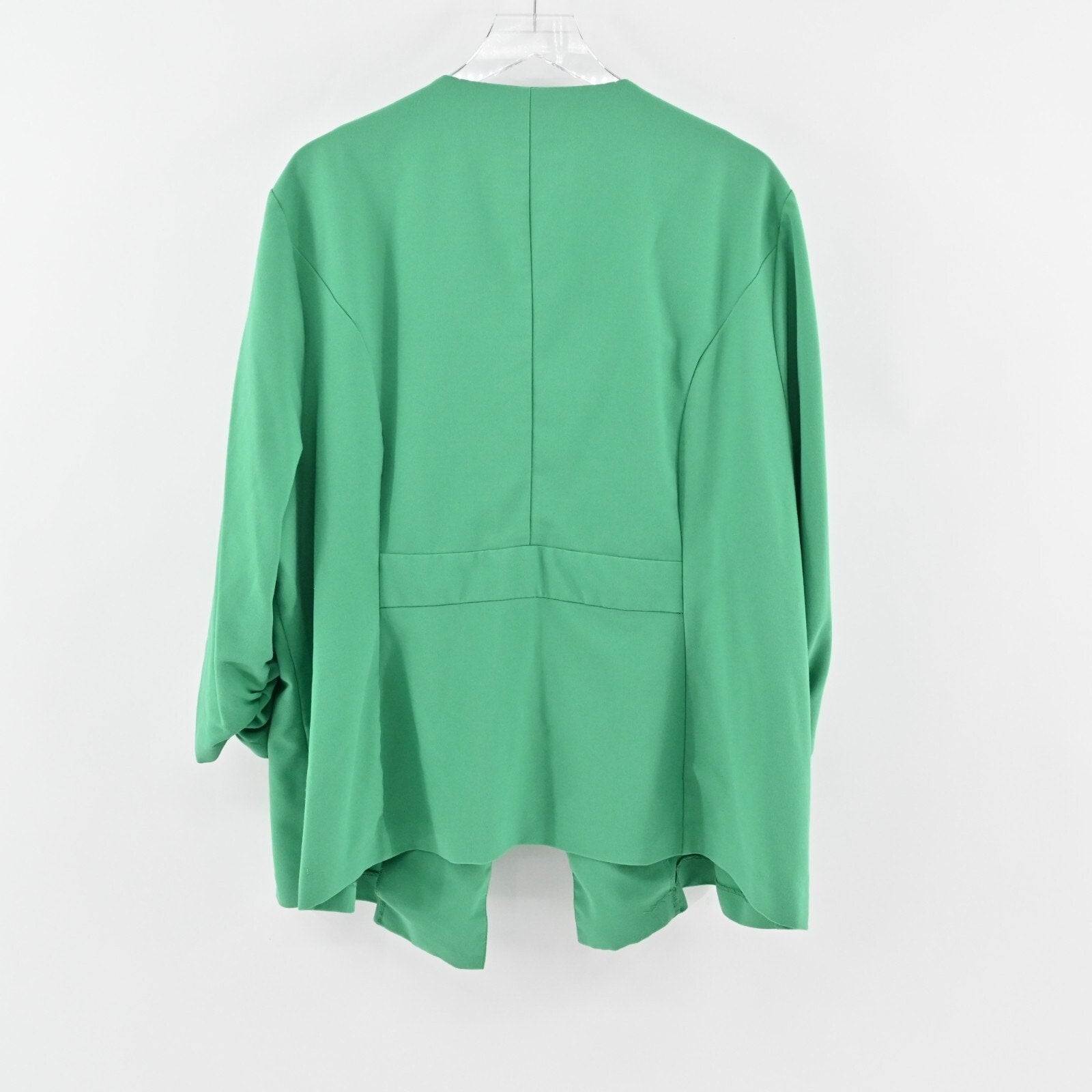 TORRID Blazer Womens Size 5 Green Ruched 3/4 Sleeve Open Front Jacket Career
